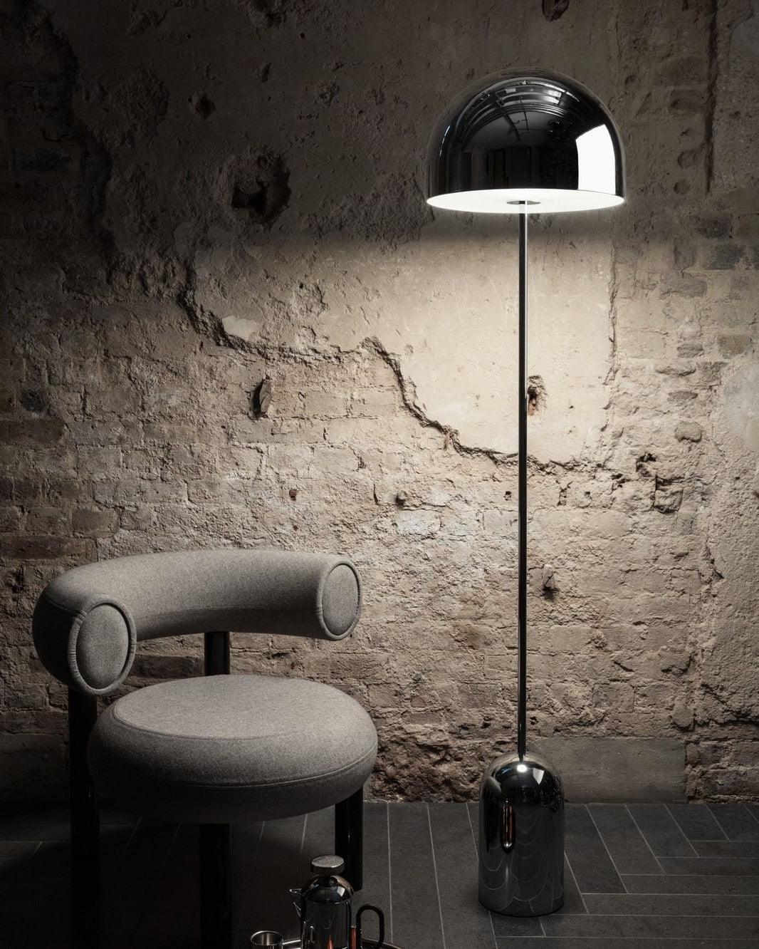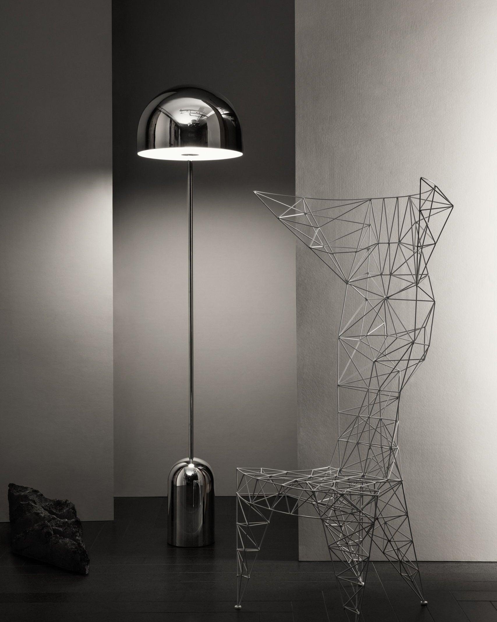 The design of the Bell Floor Lamp provides an exercise in reduction while tracing the characteristics of its namesake. In the beautiful domed shade, light is carved and sculpted until it becomes a diffused glow ideal for reading nooks, bedrooms or lounges.