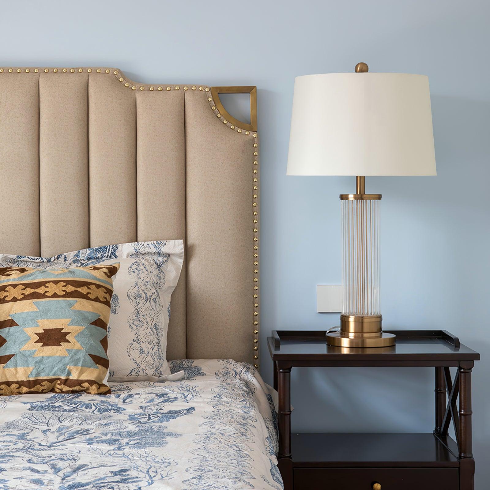 This table lamp adopts a classic shape of gloss golden plating metal base and a linen lampshade which creates a luxurious look for your home decor. The table lamp features a comforting feeling, perfect to be used as a bedside lamp, living room lamp, desk lamp, or nightstand lamp.