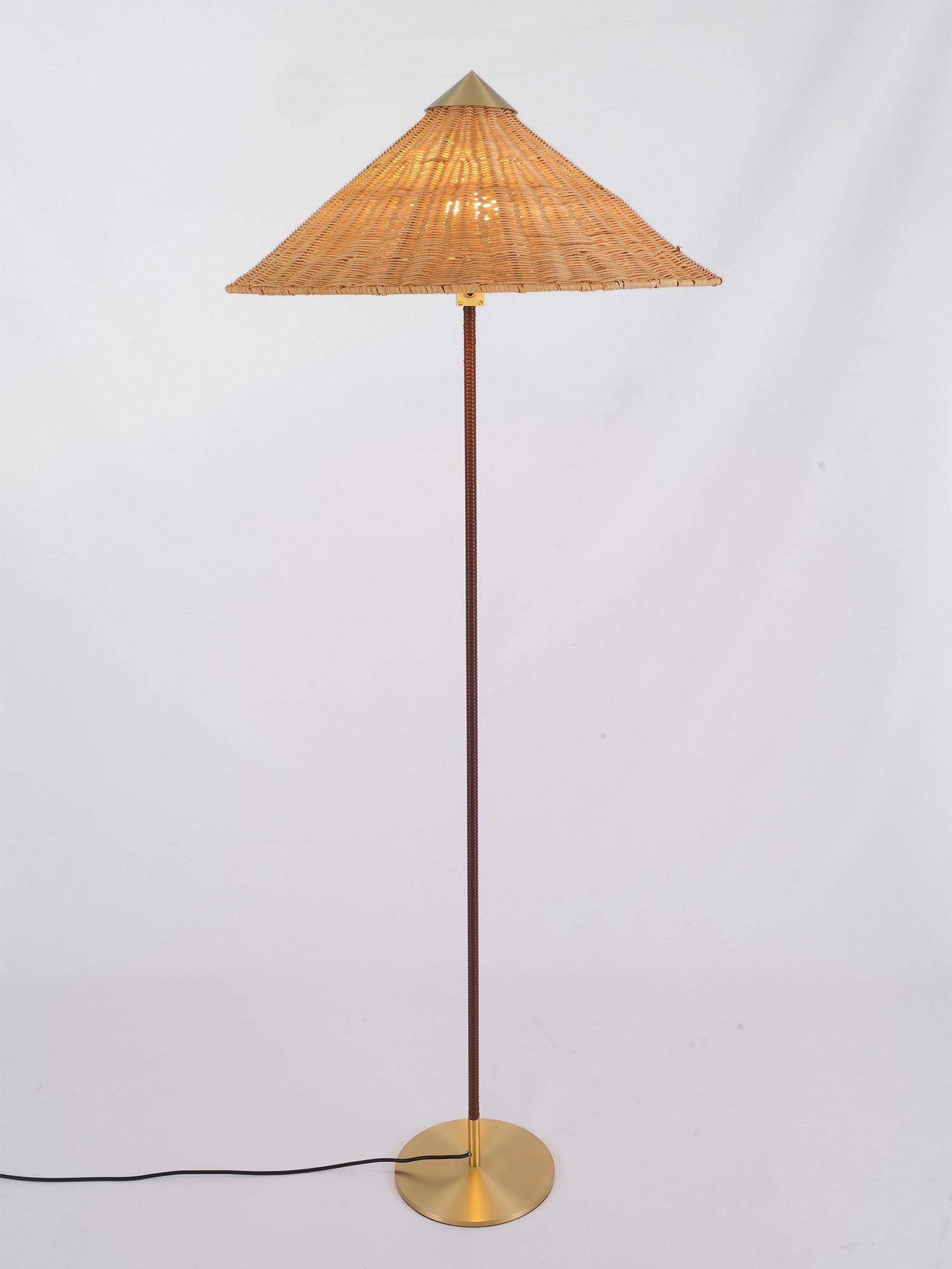 9602 落地燈以其優雅通風的燈罩和藤條覆蓋的燈桿為特色,展示了設計師無限的想像力和無與倫比的能力,創造出經久不衰的美麗設計。 9602 落地燈為頂部增添了一種俏皮、旺盛的品質,並與更靜態的底座相平衡,非常適合在家庭起居室營造柔和的環境光。