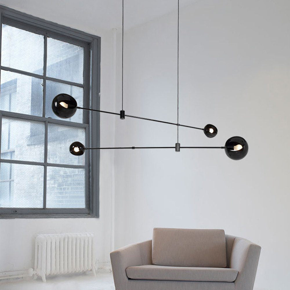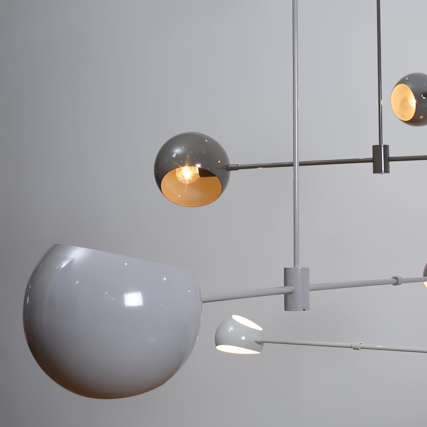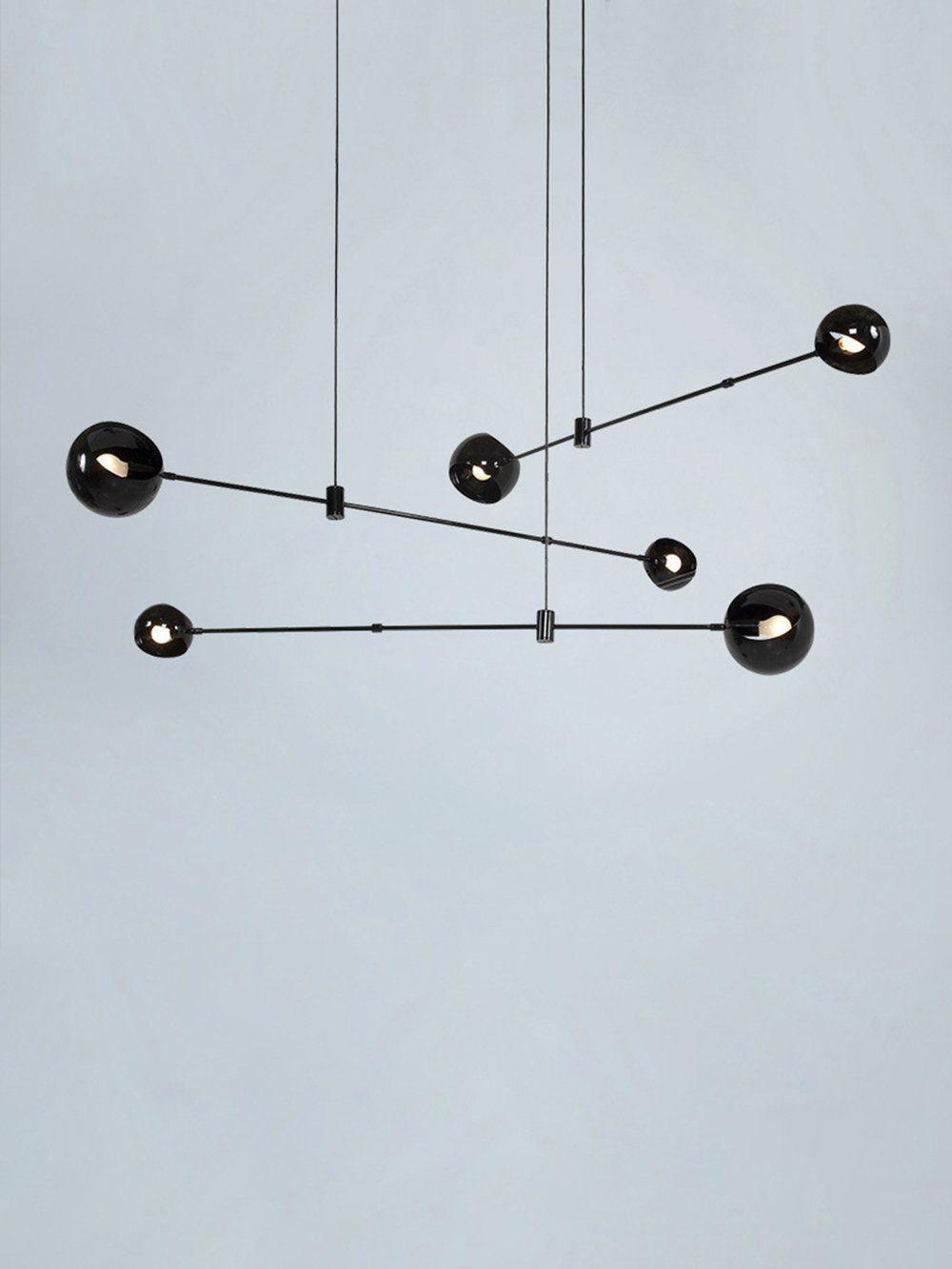 Acaba 由兩個不同尺寸的 Boi 燈罩組成,安裝在一根鋼桿的兩端。每個遮陽簾都由偏心配重懸掛,可旋轉 320 度,頂部和底部都有開口,以獲得最大的光線。這種懸掛夾具在安裝多個時也能很好地工作。