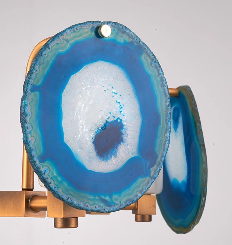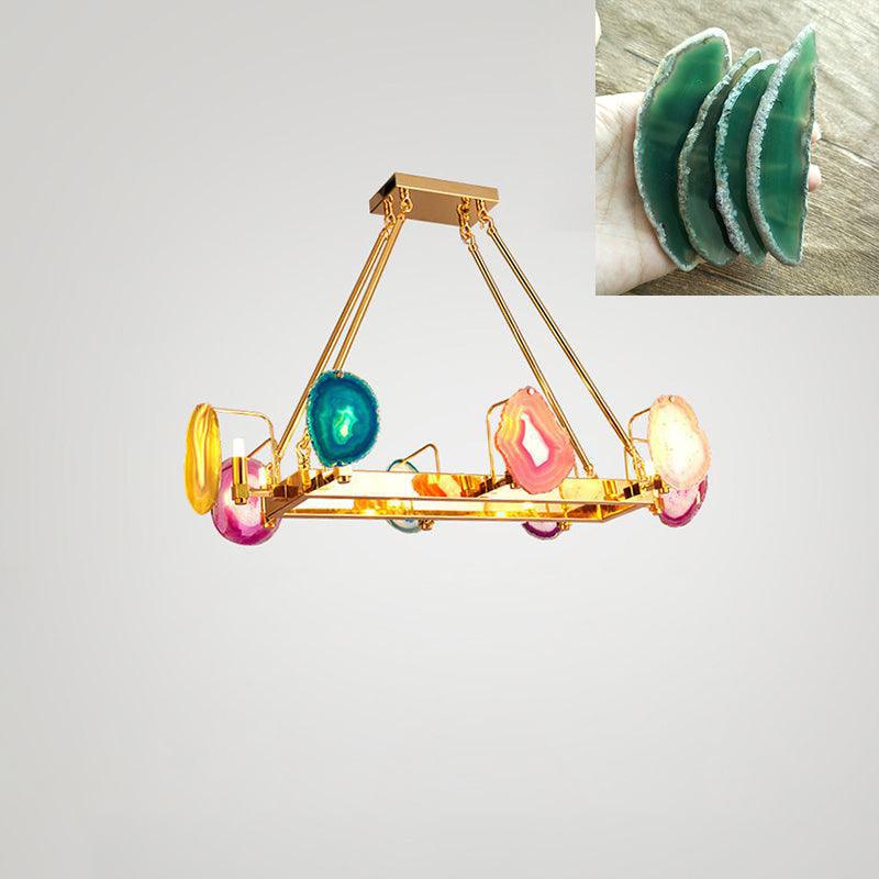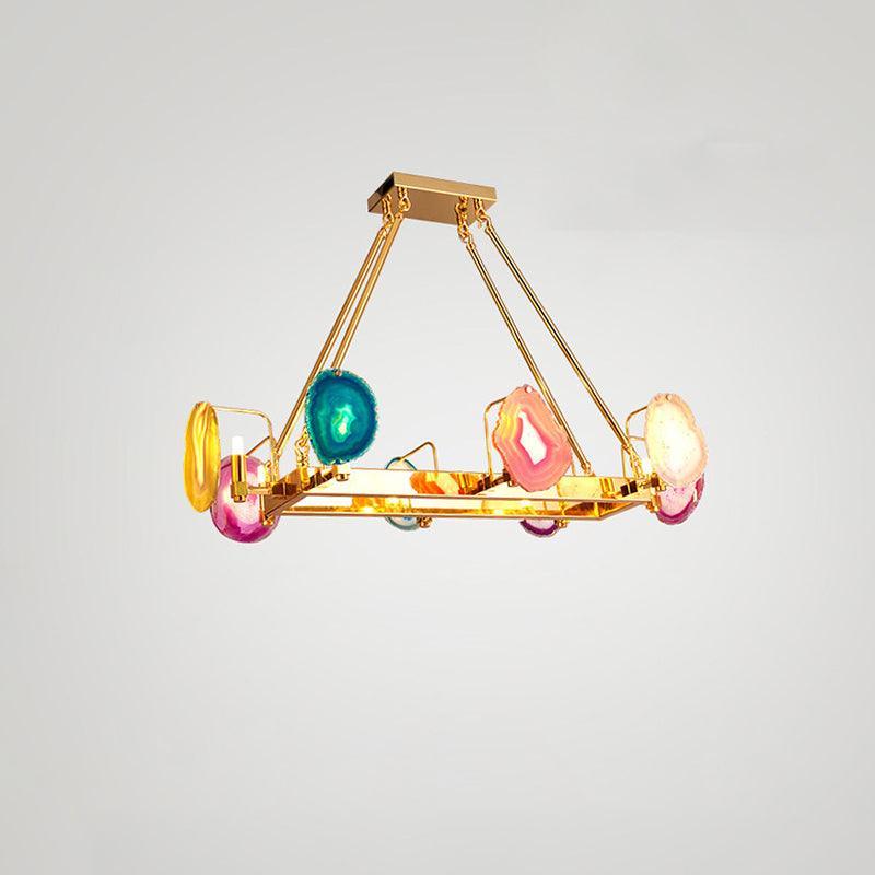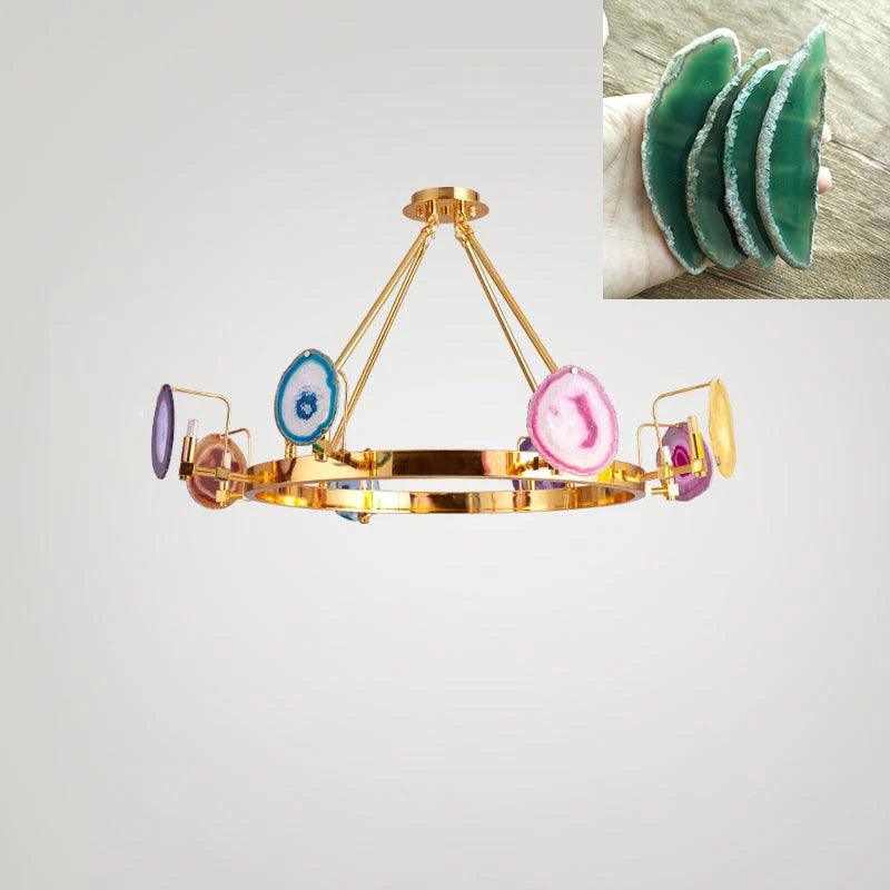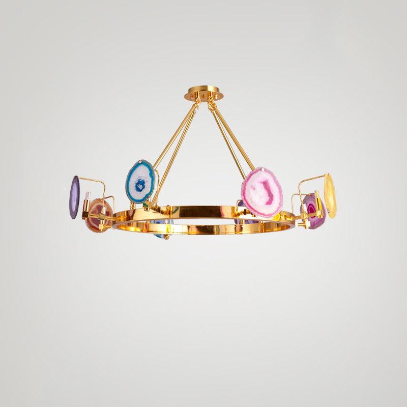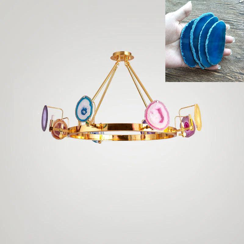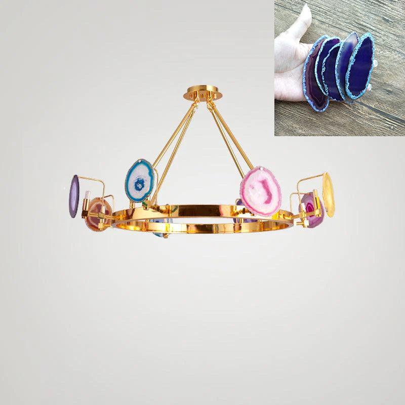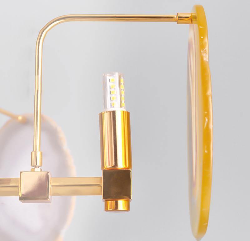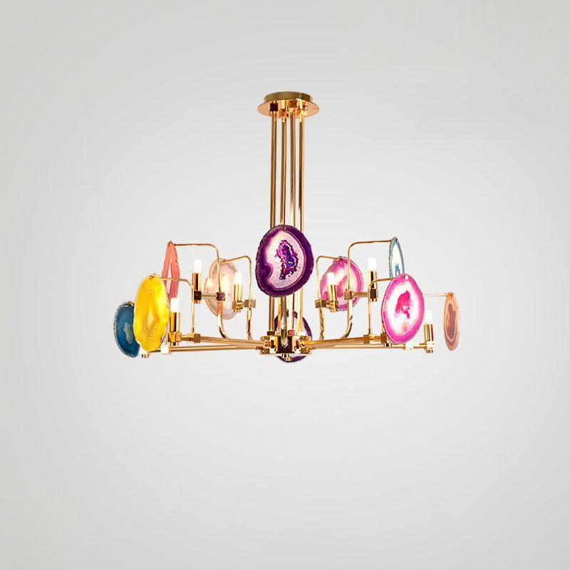 這是一盞豪華的瑪瑙吊燈。天然瑪瑙原石經過切片、打磨、打孔、製作而成。瑪瑙顏色鮮豔,表面光滑。透光性強,無眩光。