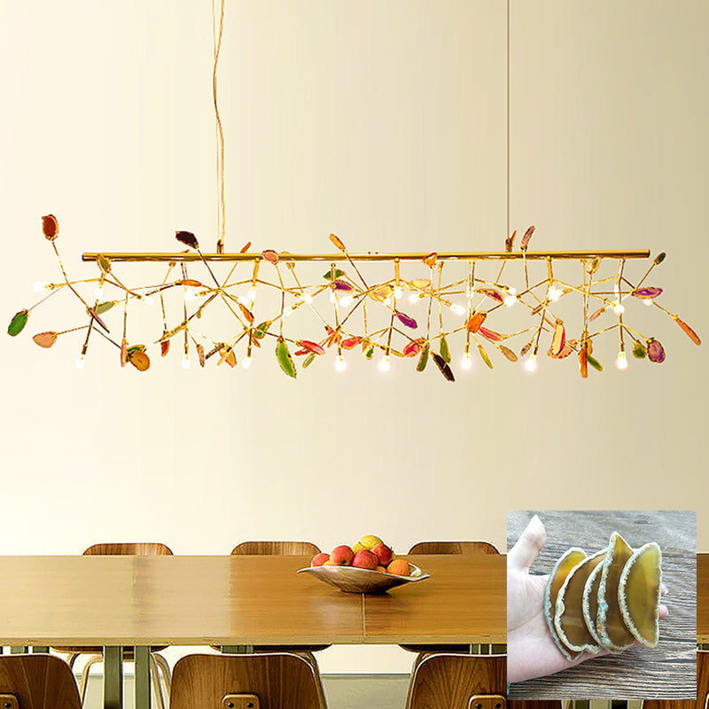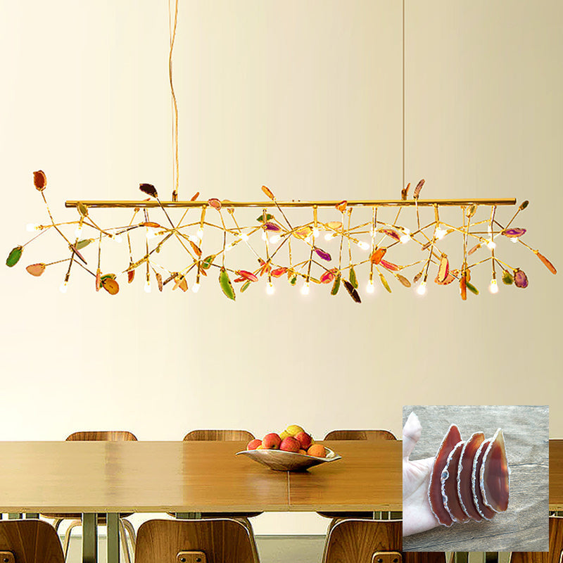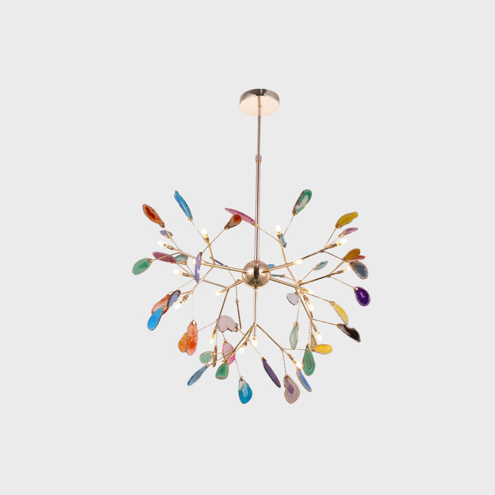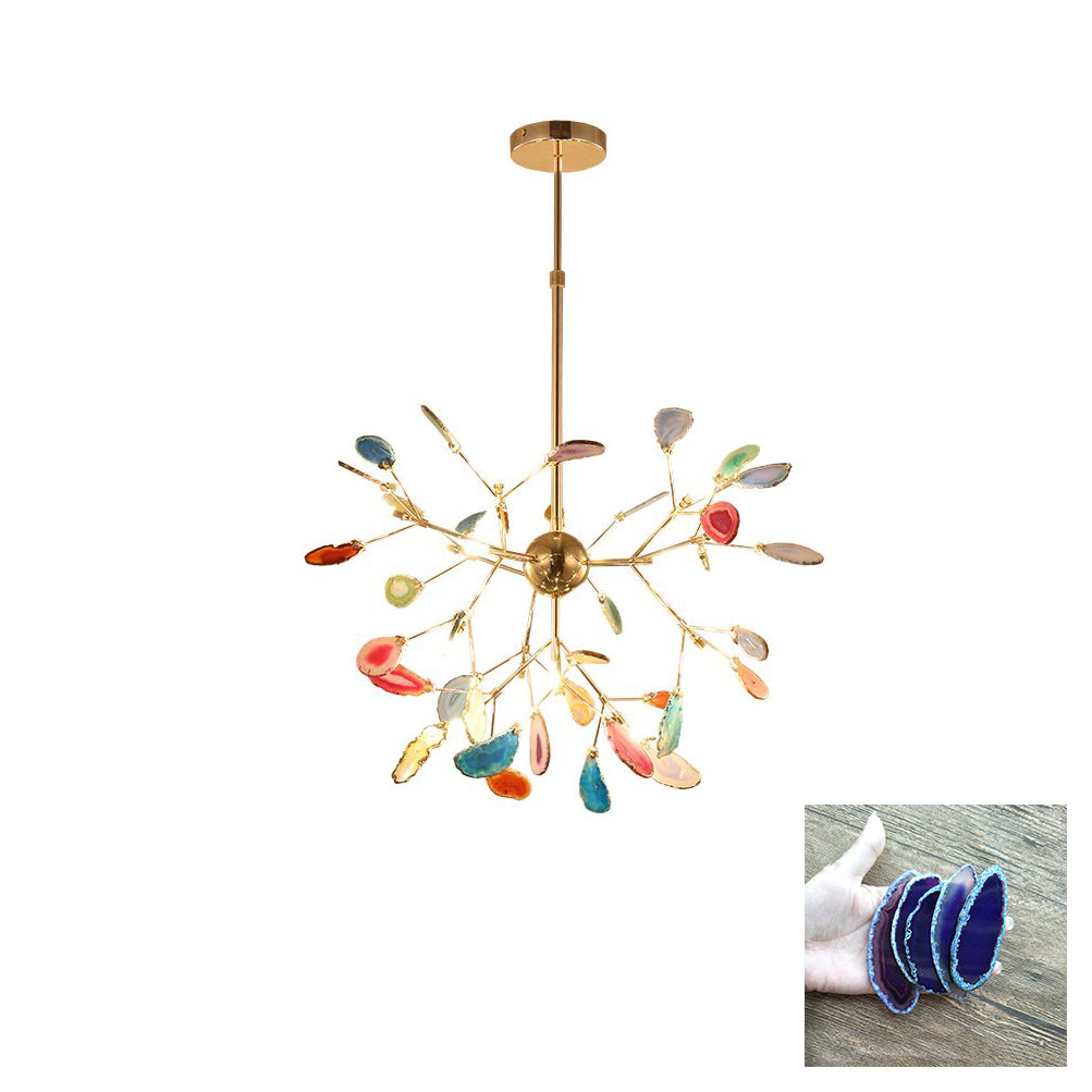 這款 Agate Flake 枝形吊燈大膽而多彩,將成為您家中或辦公室中引人注目的中心裝飾品。一種顏色或色調的美麗瑪瑙懸掛在精美的鍍金手臂上,營造出獨特而優雅的外觀。