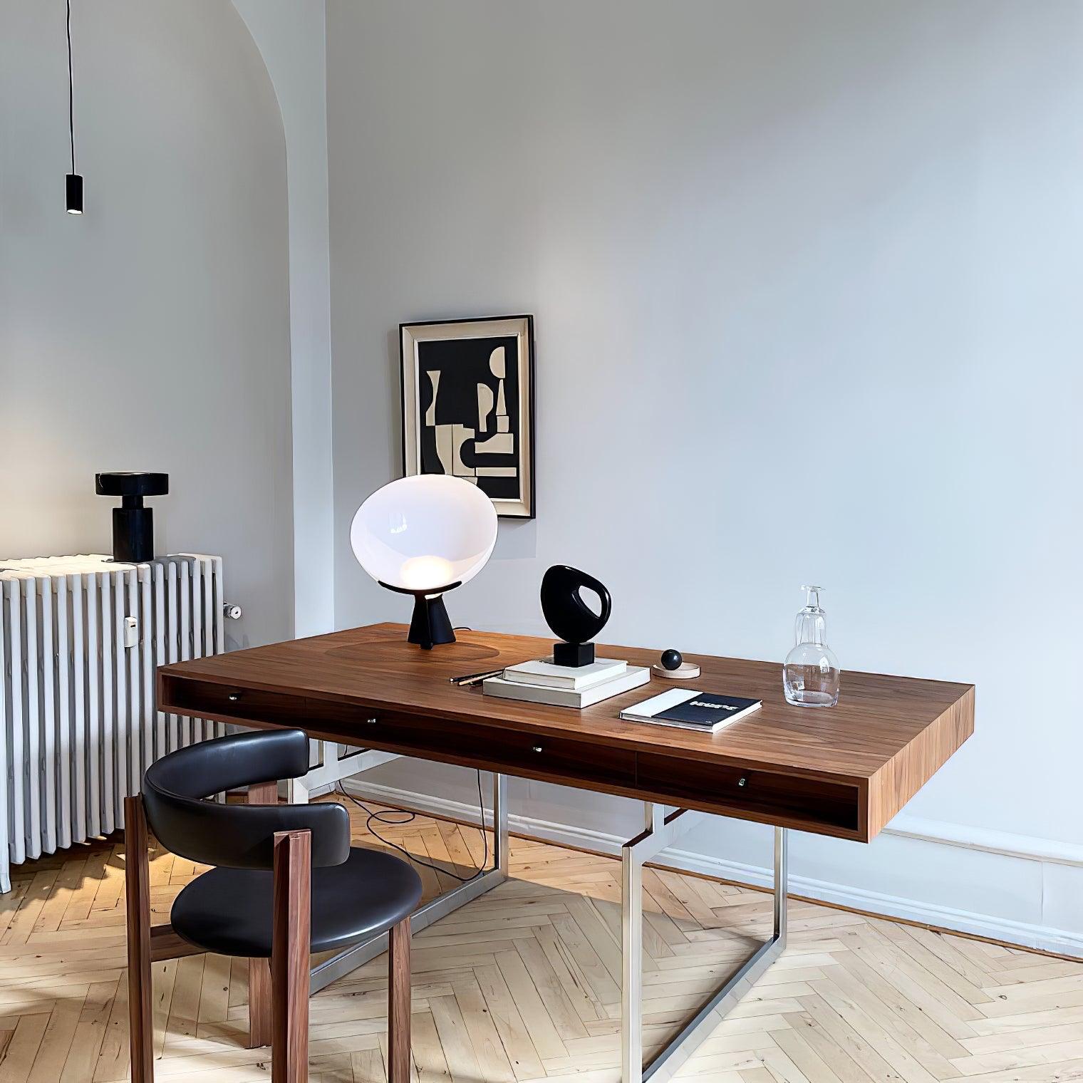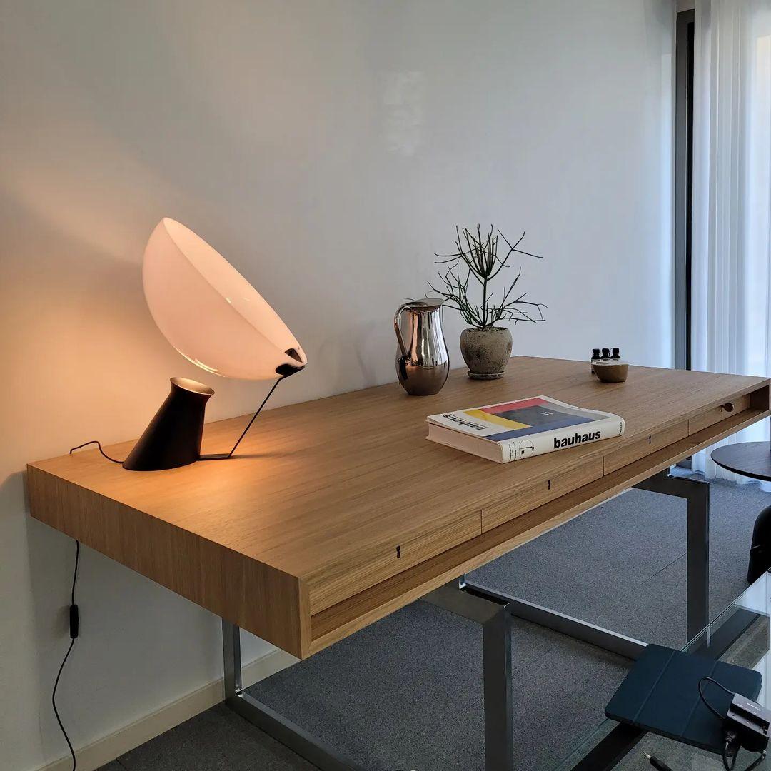 Aida 燈在底座和燈罩之間具有視覺上的斷開和令人愉悅的環境光。參考他所稱讚的建築原則,纖細、優雅的柱子以幾乎不可能的升降機支撐著又大又重的天花板,構思出 Aida 優美沉穩的輪廓。