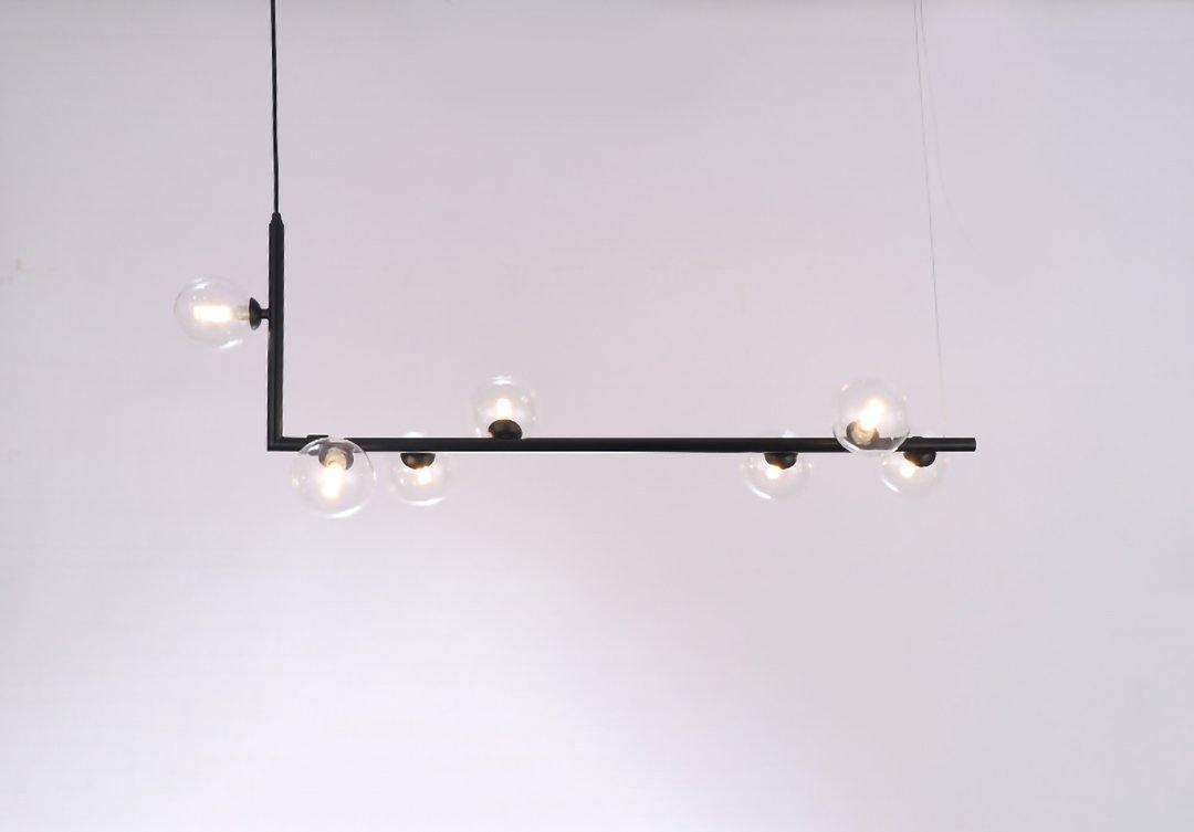 將黑色金屬結構與這些透明球形燈泡相結合,空氣懸浮燈讓人想起好萊塢梳妝台,散發出奢華而精緻的飾面,同時照亮您的空間令人印象深刻。將極其現代的 Air 73 吊墜懸掛在高檔酒店門廳的歡迎辭中,或者當您在大餐桌上方觀看吊墜時同樣讓您的客人驚嘆不已。