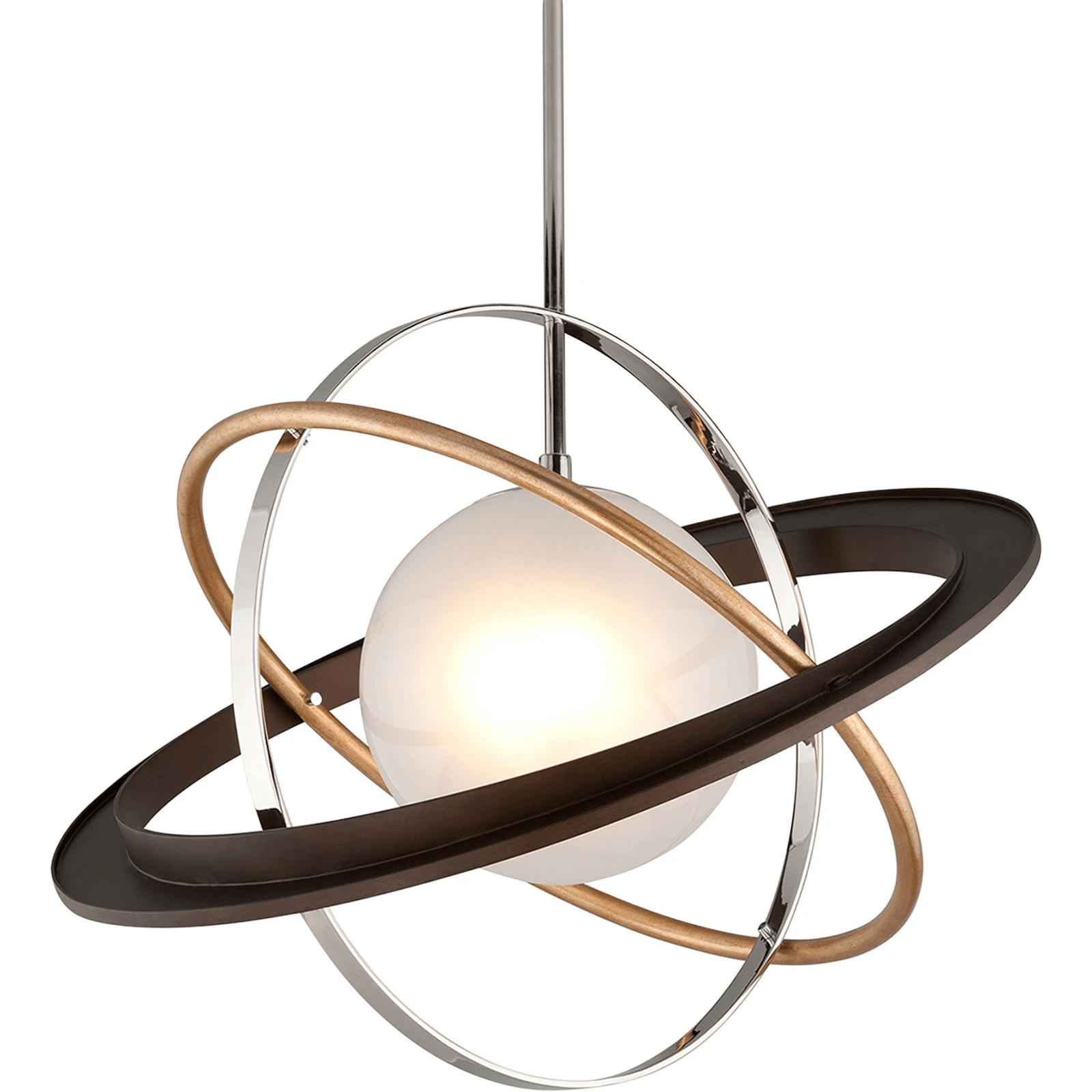 Apogee 燈為您的家居室內裝飾帶來絢麗奪目的展示效果。它的輪廓結合了磨砂玻璃鰣魚,由不同尺寸和飾面的不對稱環環繞。