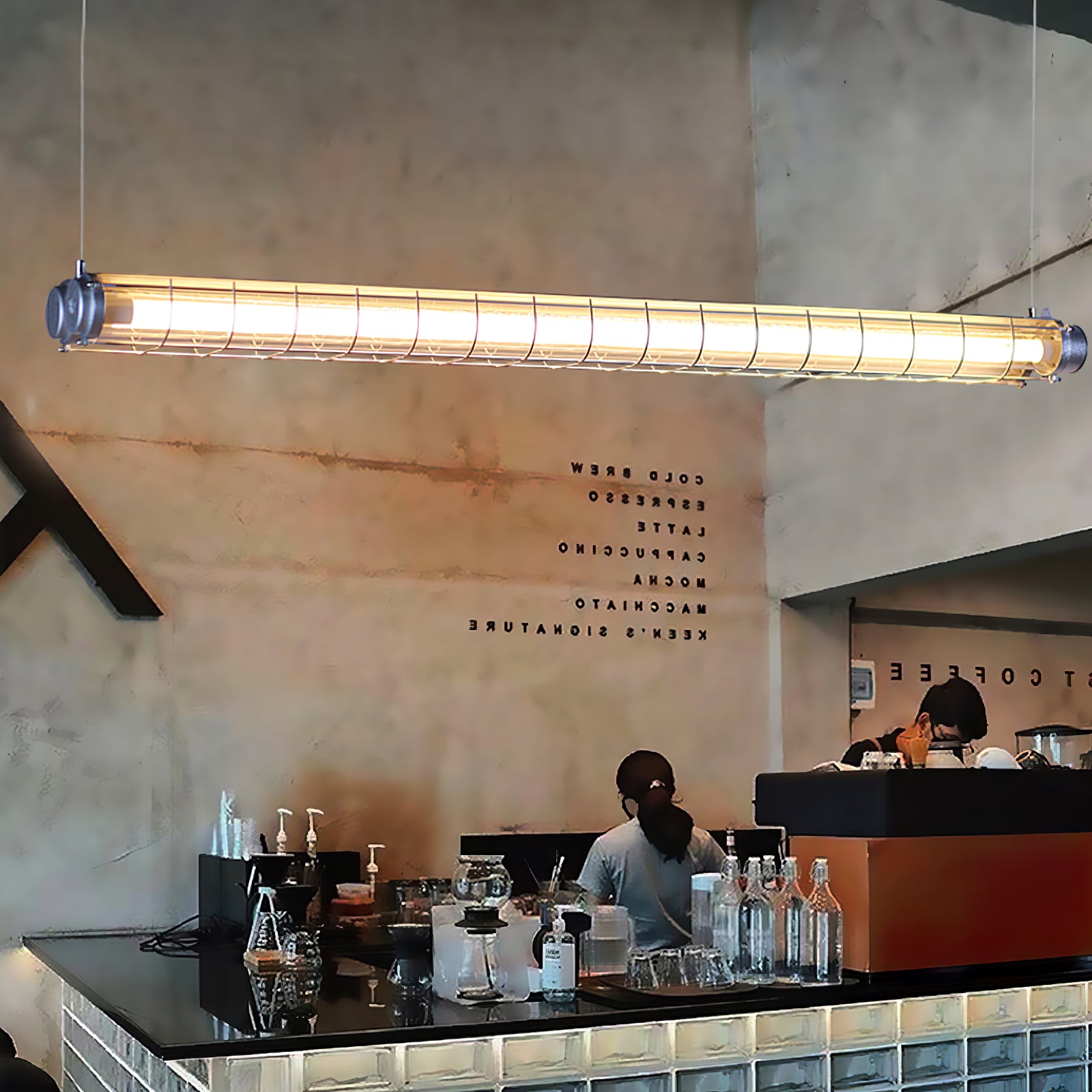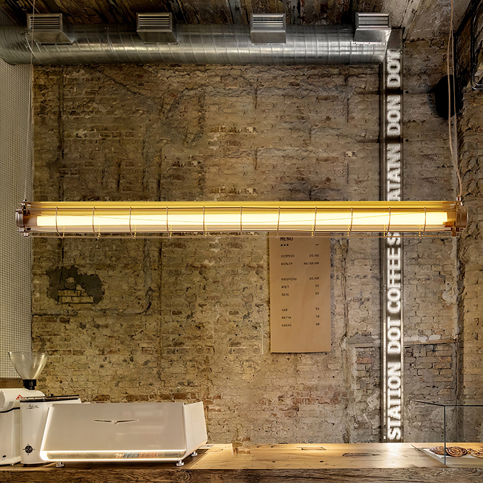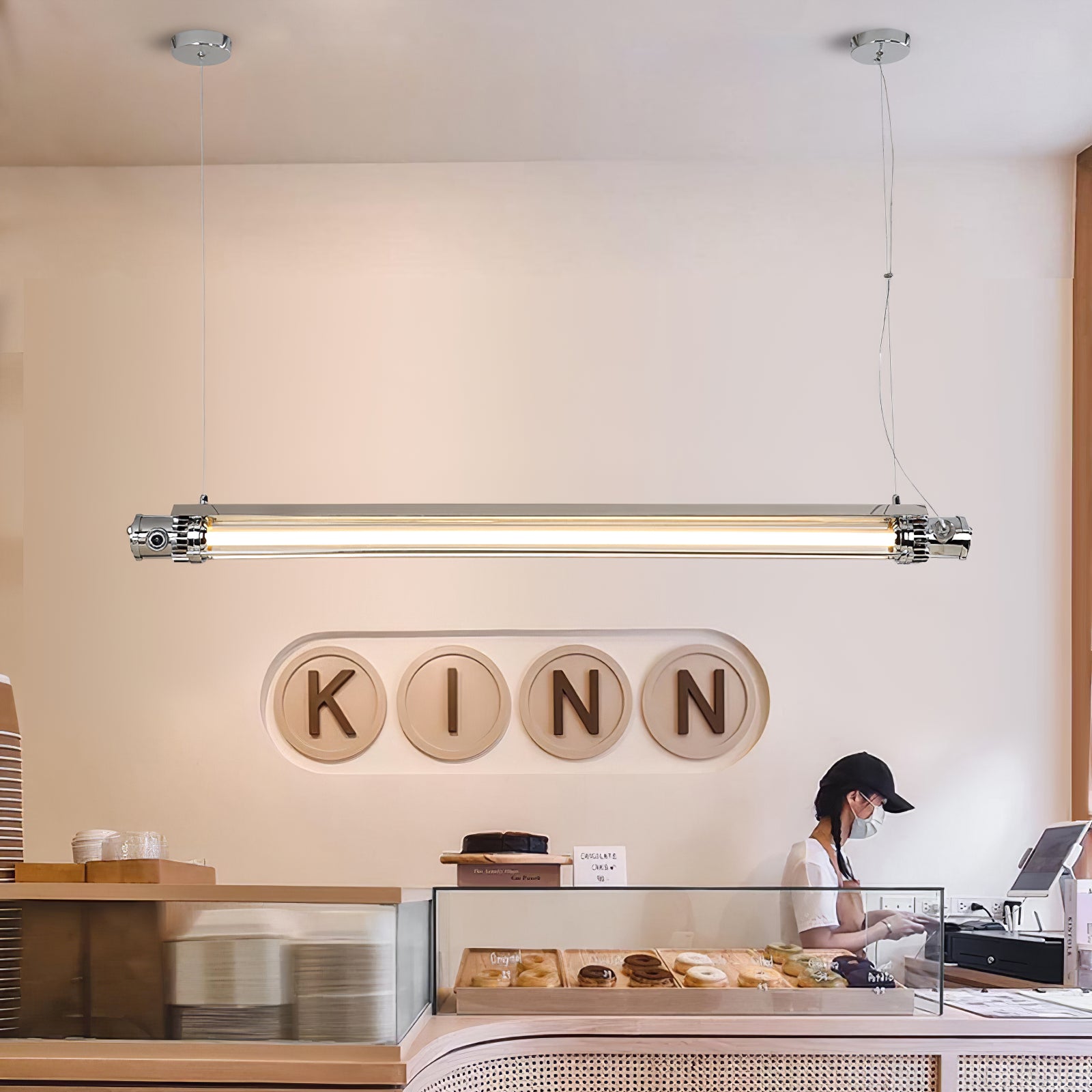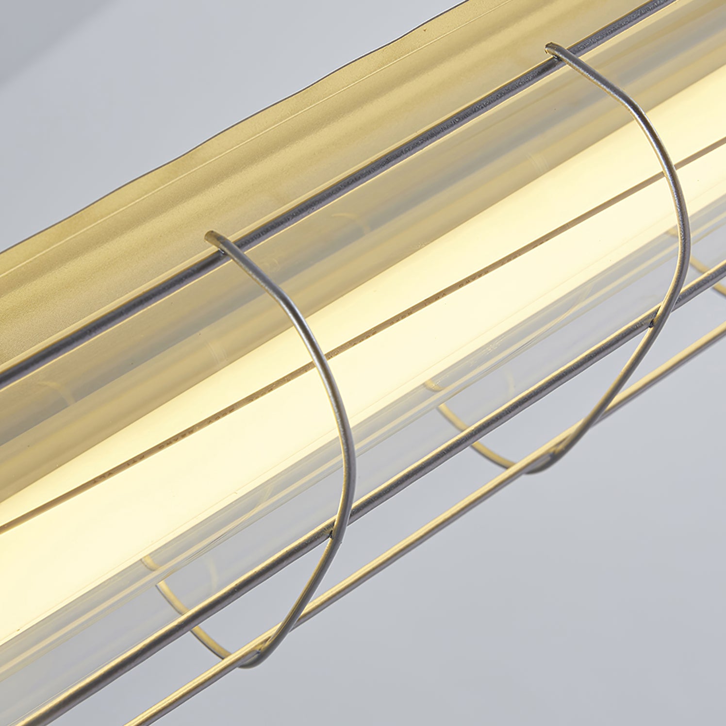 一排 48 英寸長的對稱槽形擴散器,每個工匠都採用透明鑄造玻璃手工製作,讓人聯想到這款閃閃發光的線性枝形吊燈中的珠寶外觀。這種線條簡潔的設計時尚而閃亮,在不阻擋視線的情況下提升了廚房、酒吧和其他功能性娛樂空間。