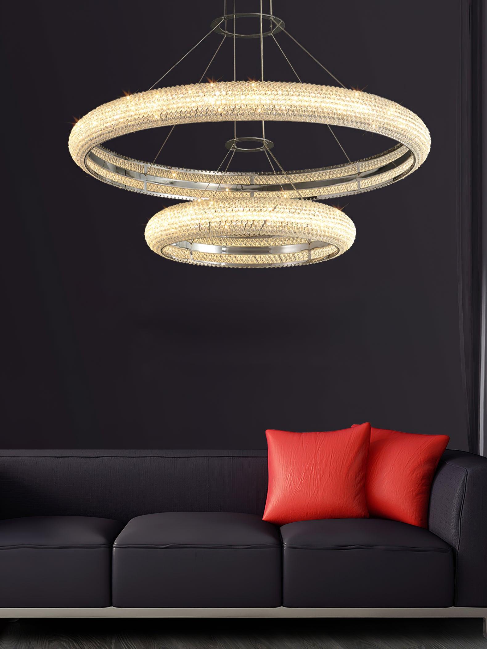 24 克拉鍍金成品金屬框架上的閃閃發光的水晶環裝有可調光 LED:我們全新的 Asscher Ring Chandelier 設計為任何設置增添了風格和魅力。這些來自歐洲中心的手工燈飾,無論是作為單獨的作品,還是作為兩個或更多燈的組合,都彰顯了個性。