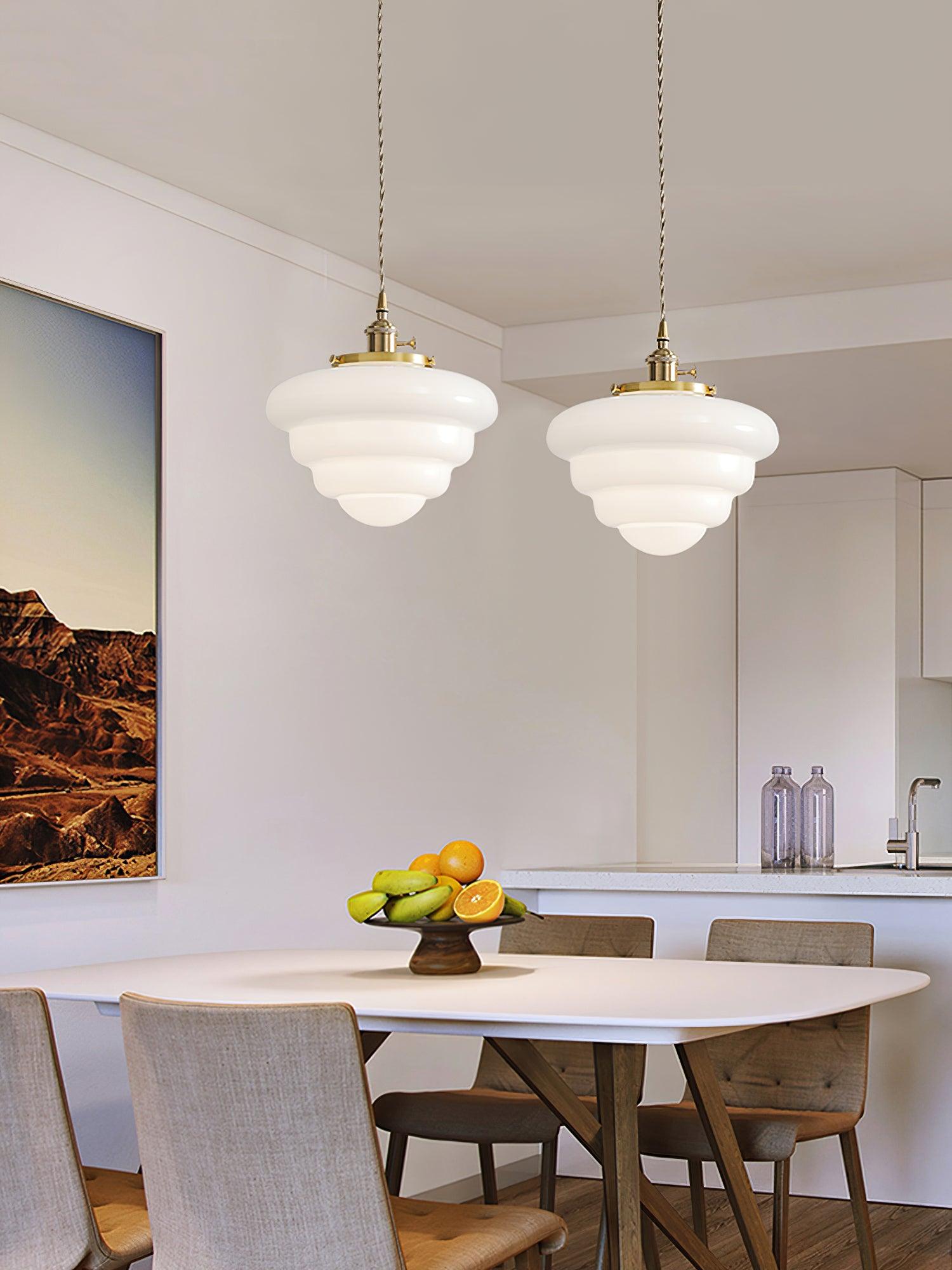受經典 Deco 設計的啟發,我們的 Atlas 白色玻璃吊墜有兩種尺寸可供選擇。這款吊墜的柔和光線和獨特的 20 年代靈感形狀一定會為您的空間增添一抹奢華。