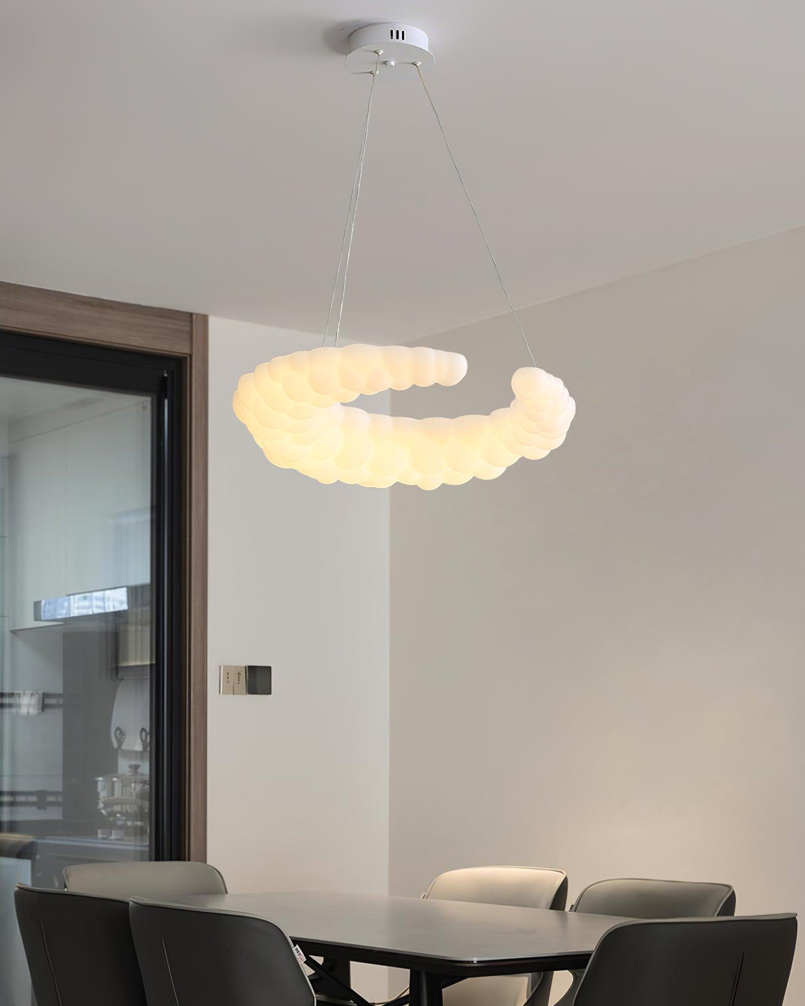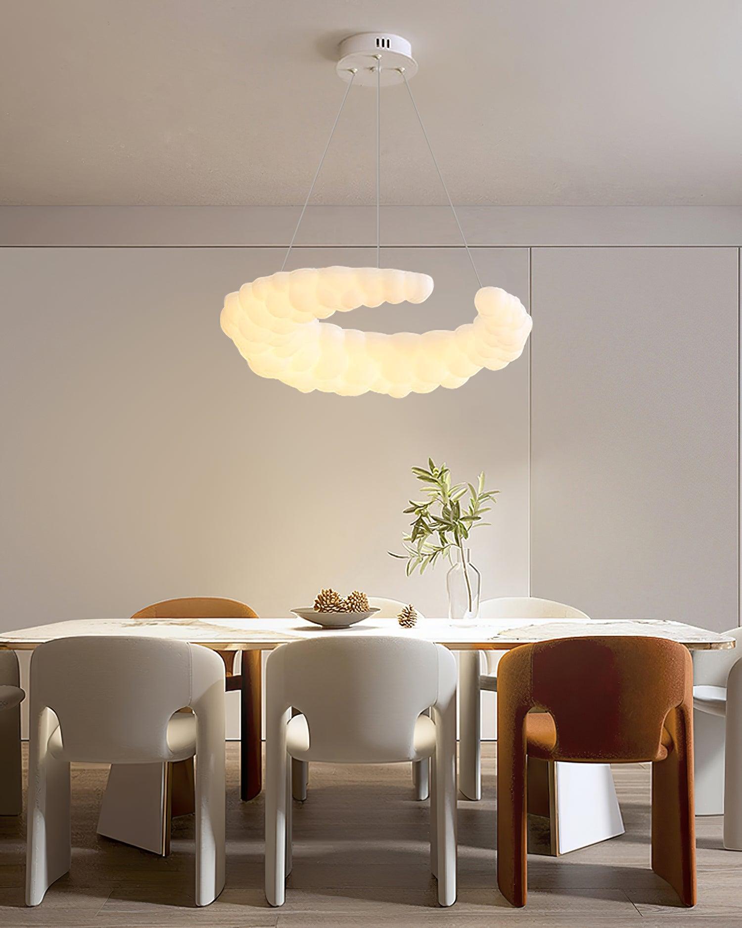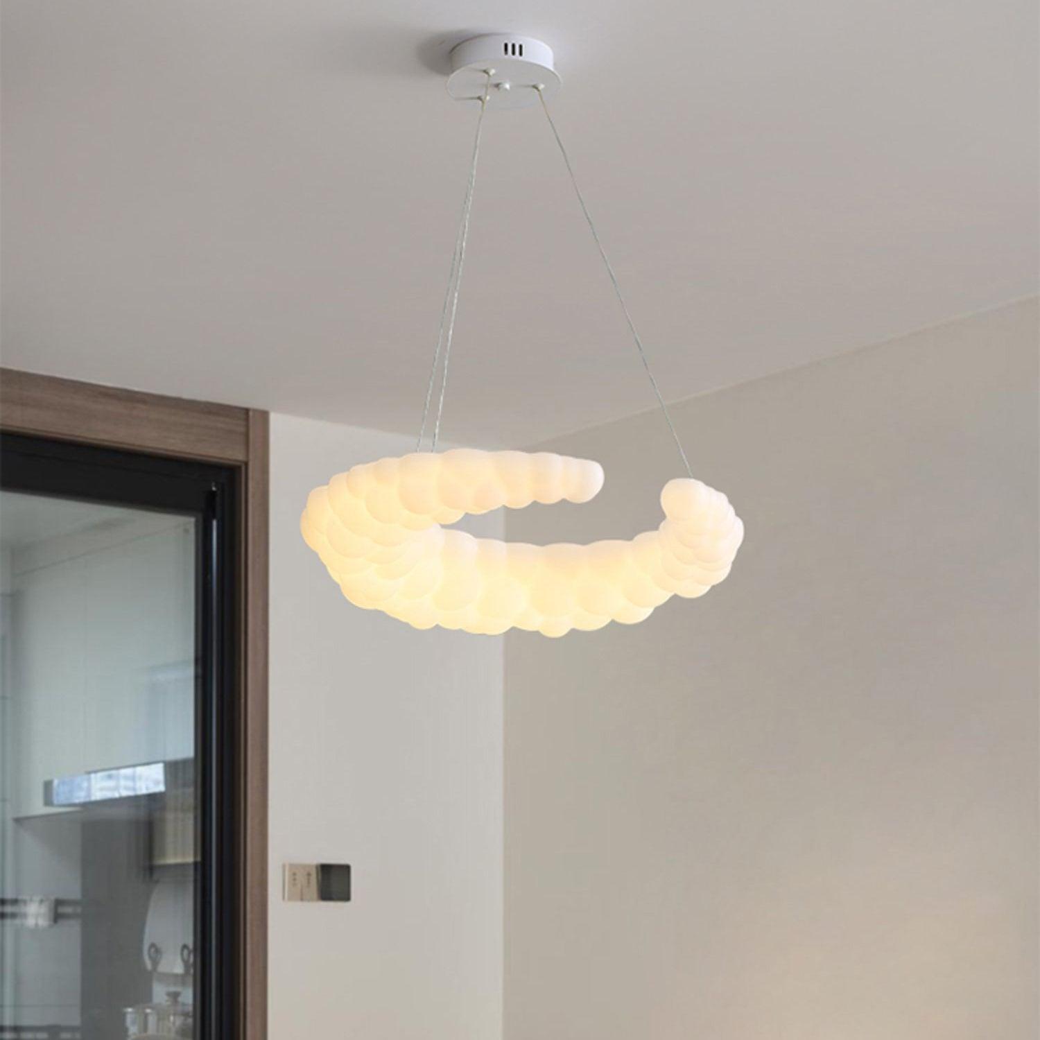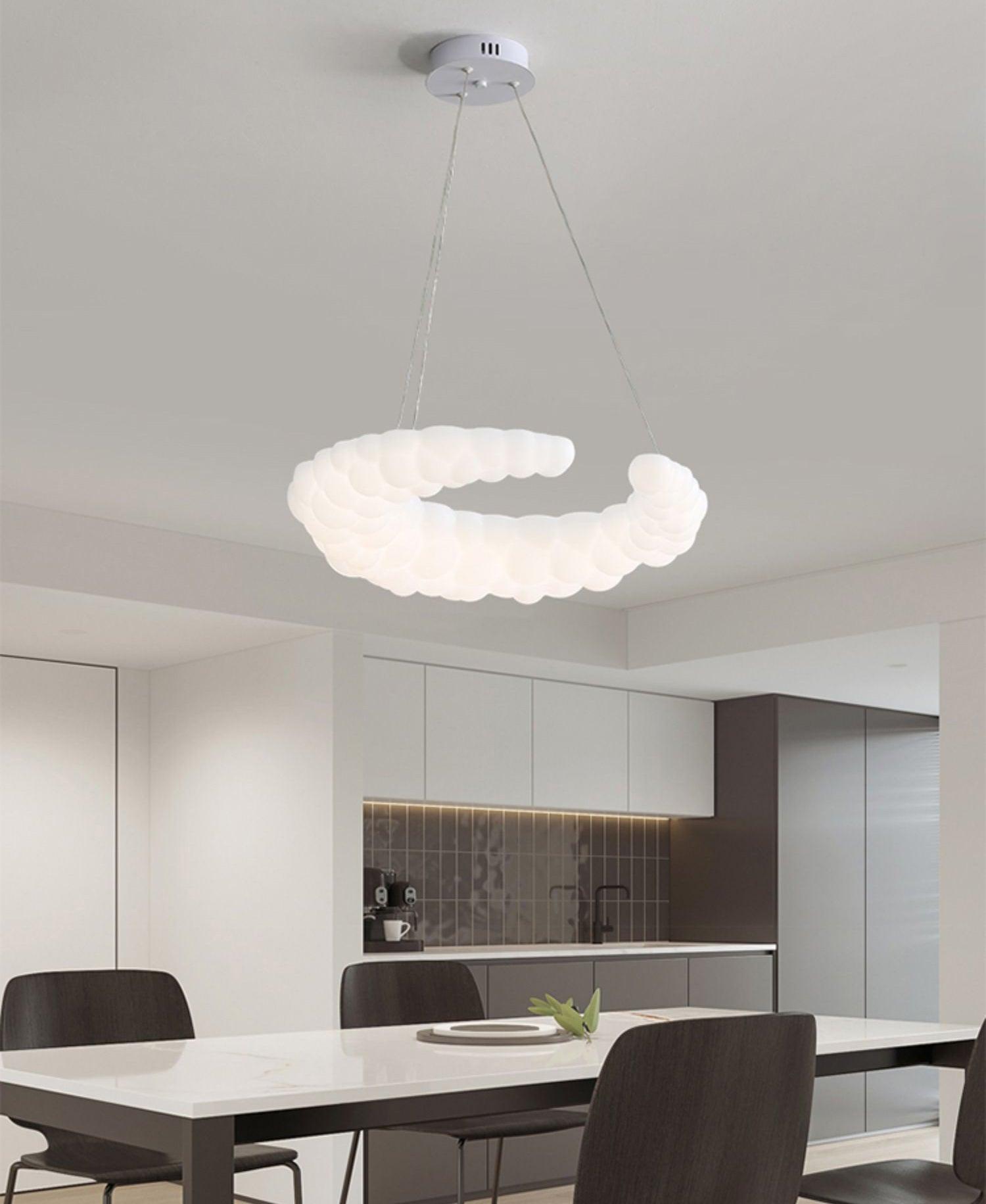 白色飾面的現代吊墜可搭配任何風格的裝飾。月亮形的陰影類似於空氣中的光環。此外,吊燈是一個光環狀的燈環,燈罩內嵌LED燈泡,洋溢著濃濃的愛意。吊線可以調節,您可以將燈具放在家中任何您想要的位置。