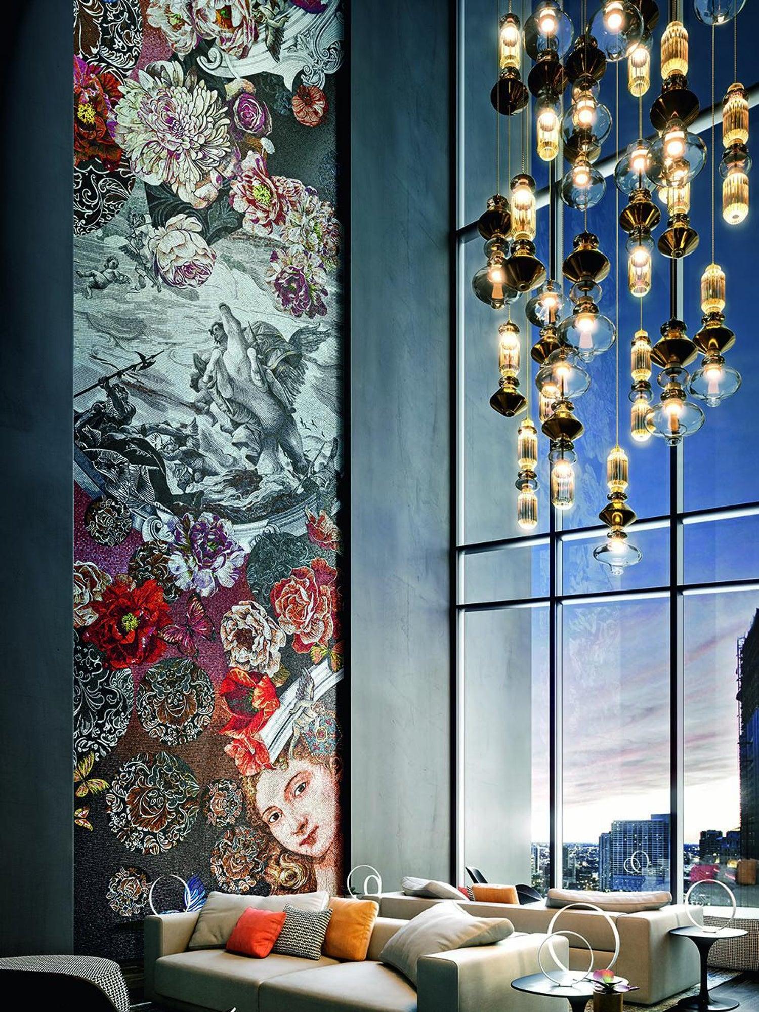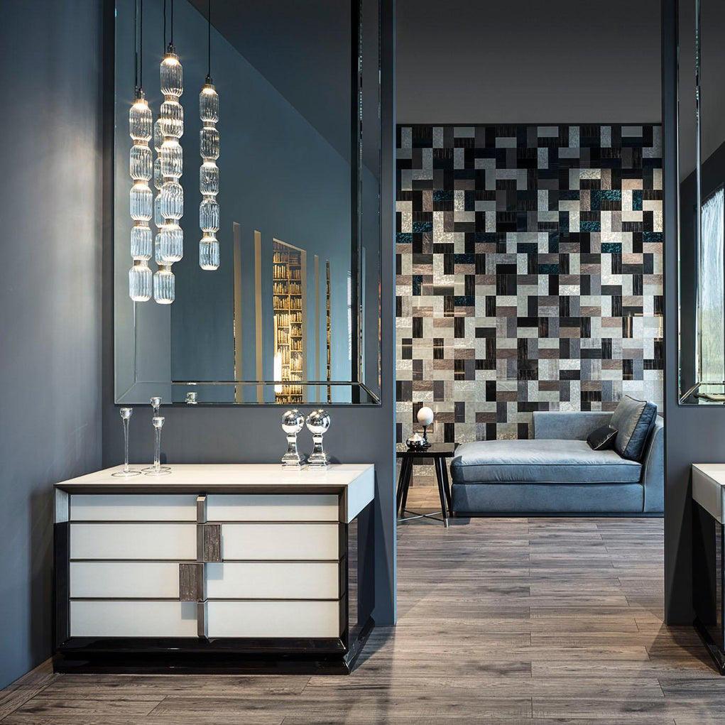 一款多功能精緻的吸頂燈,具有清新現代的風格。精細純淨的材料排列成特殊的幾何形狀。它可以單獨使用,也可以與其他型號組合使用。