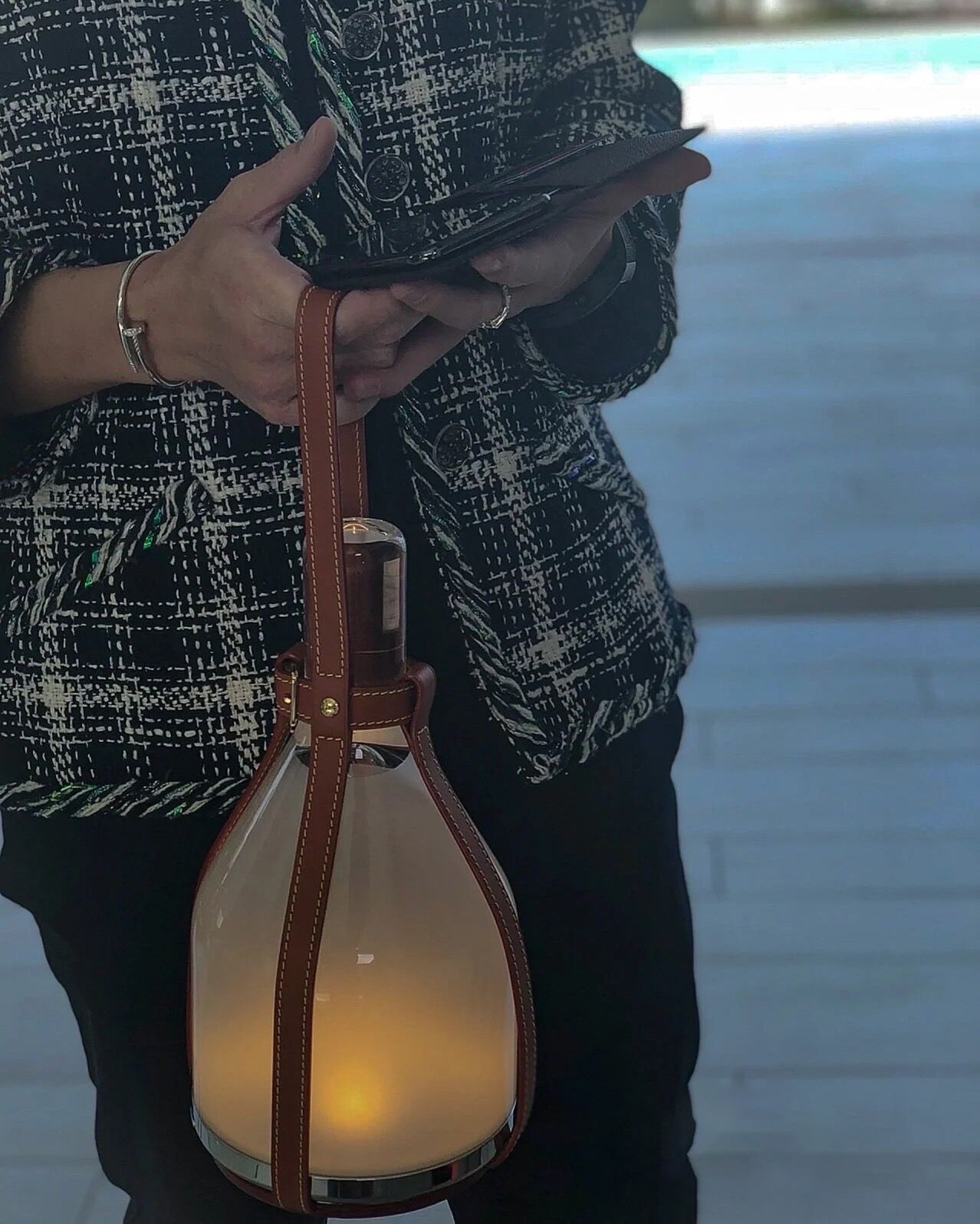 Bell Lamp 的靈感來自生產奢華旅行配件的悠久歷史以及與其車間相關的工藝傳統。對便攜性和可持續性的需求推動了對各種技術可能性的探索,物體的最終形狀取決於其太陽能和照明組件的功能。