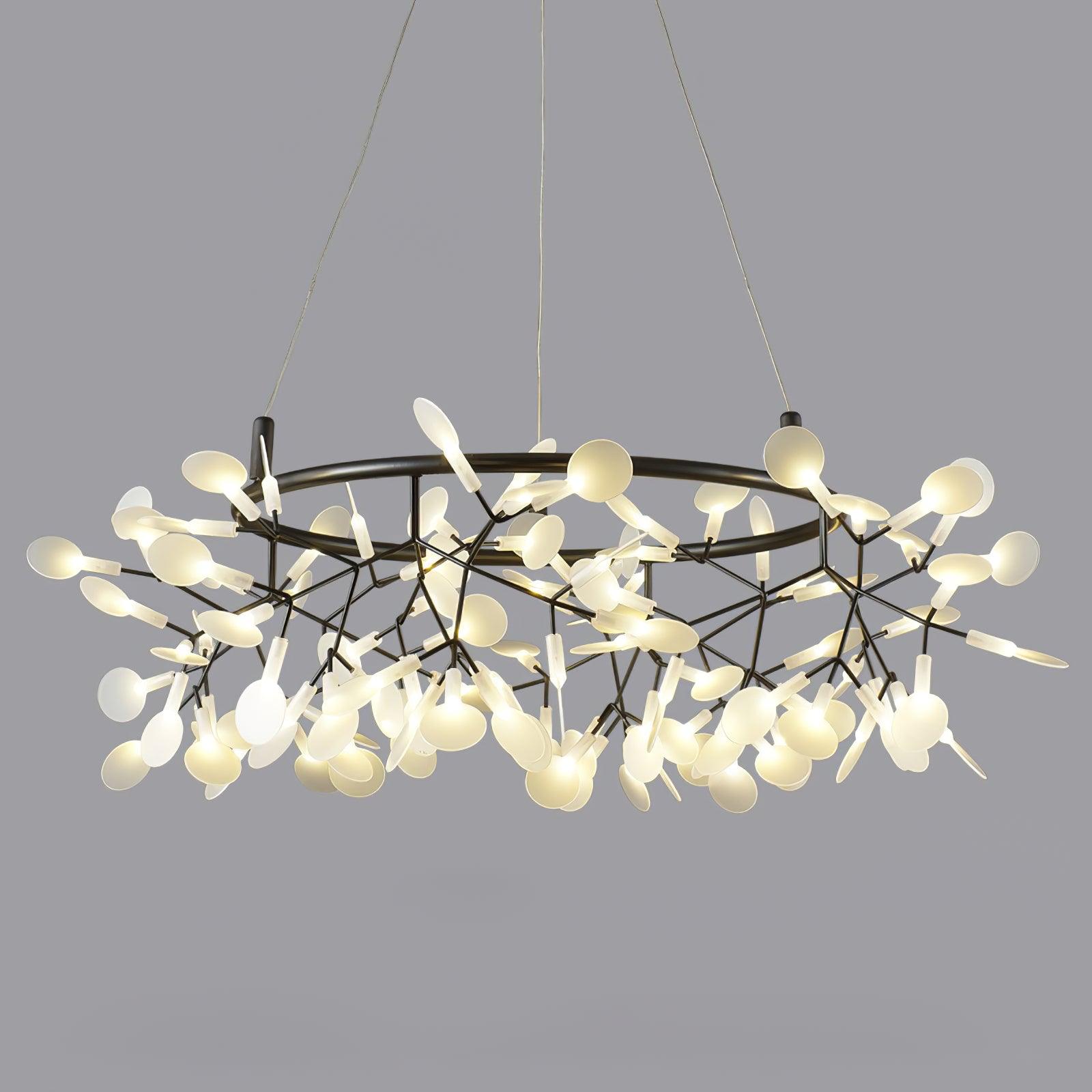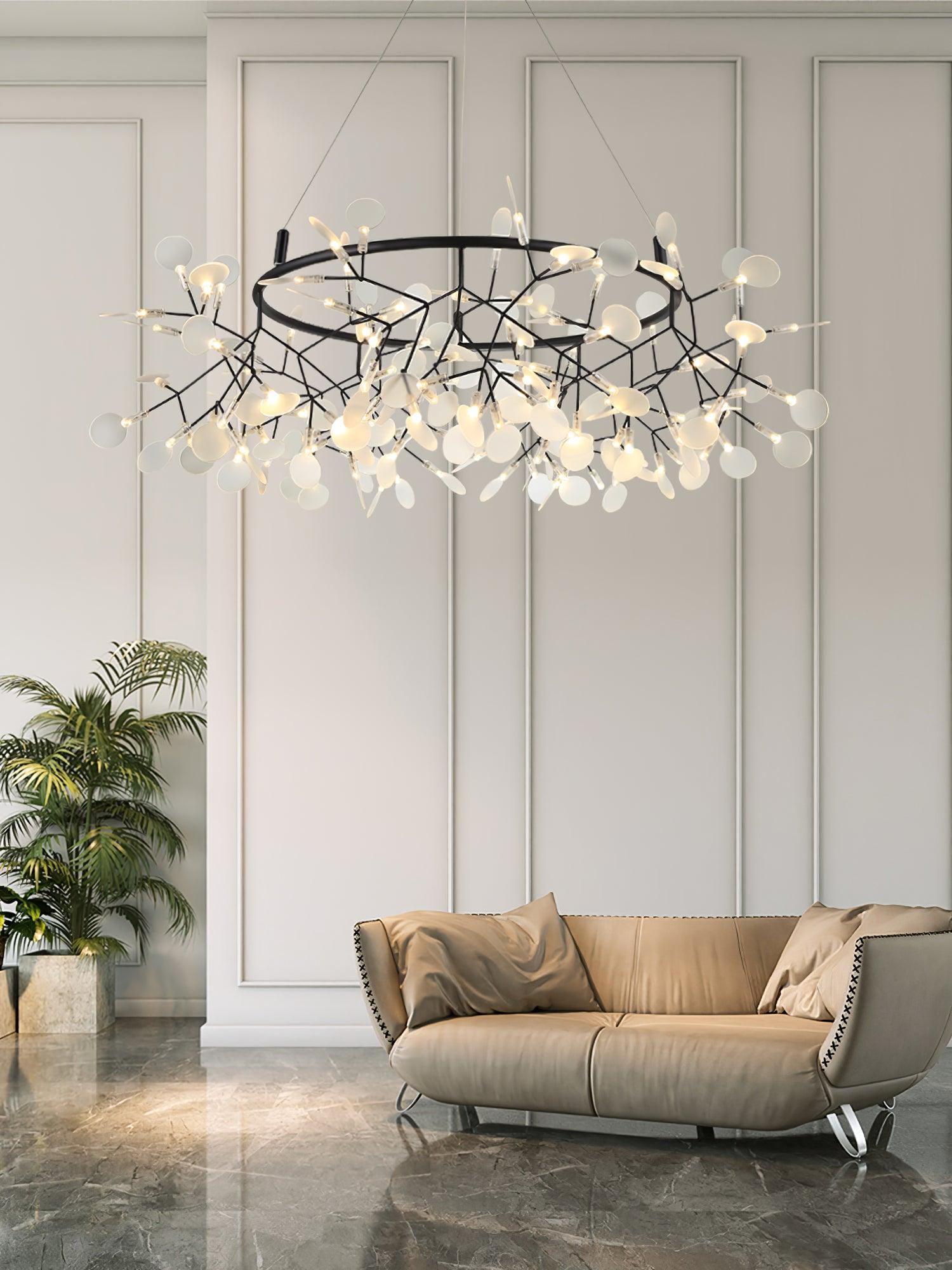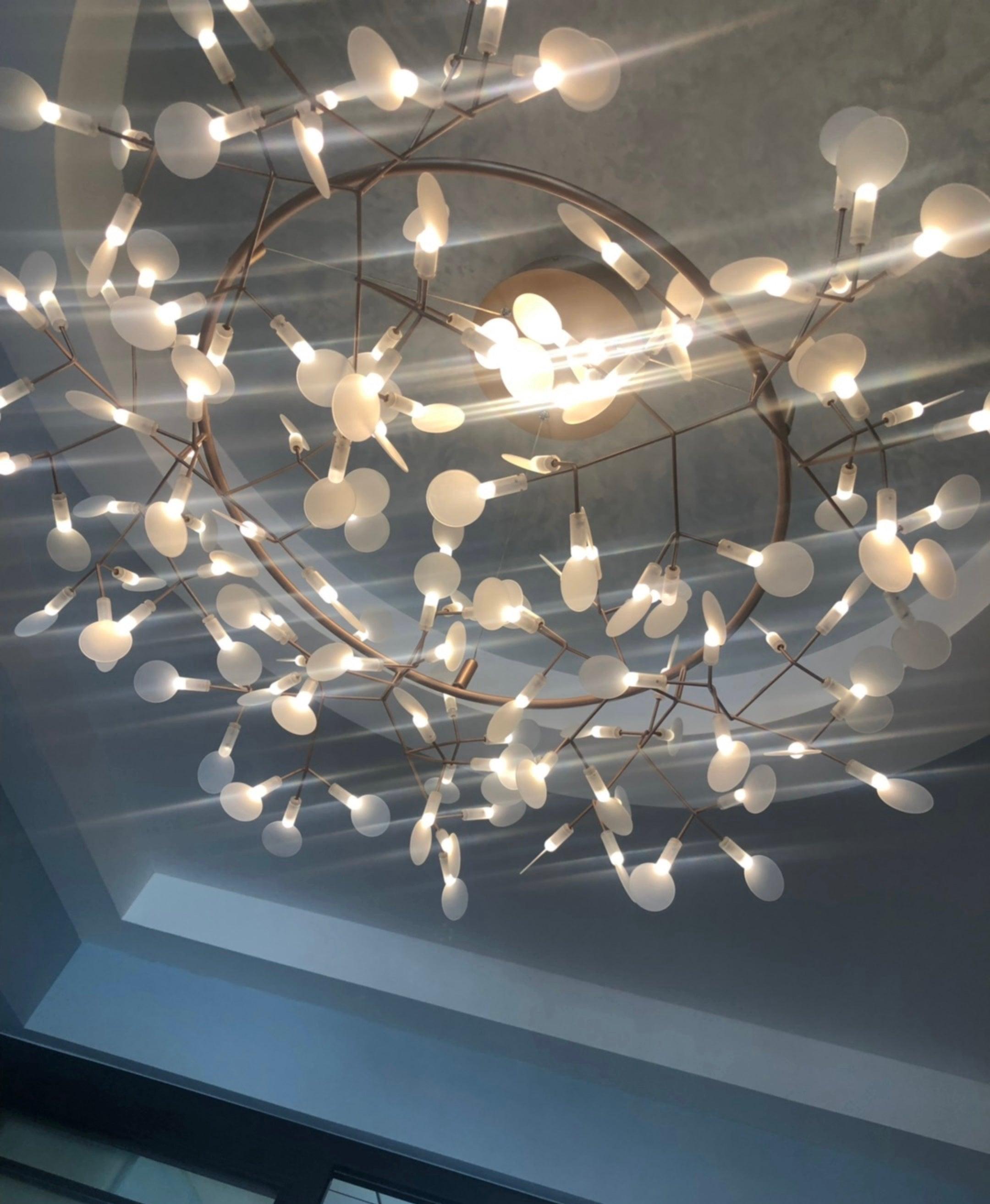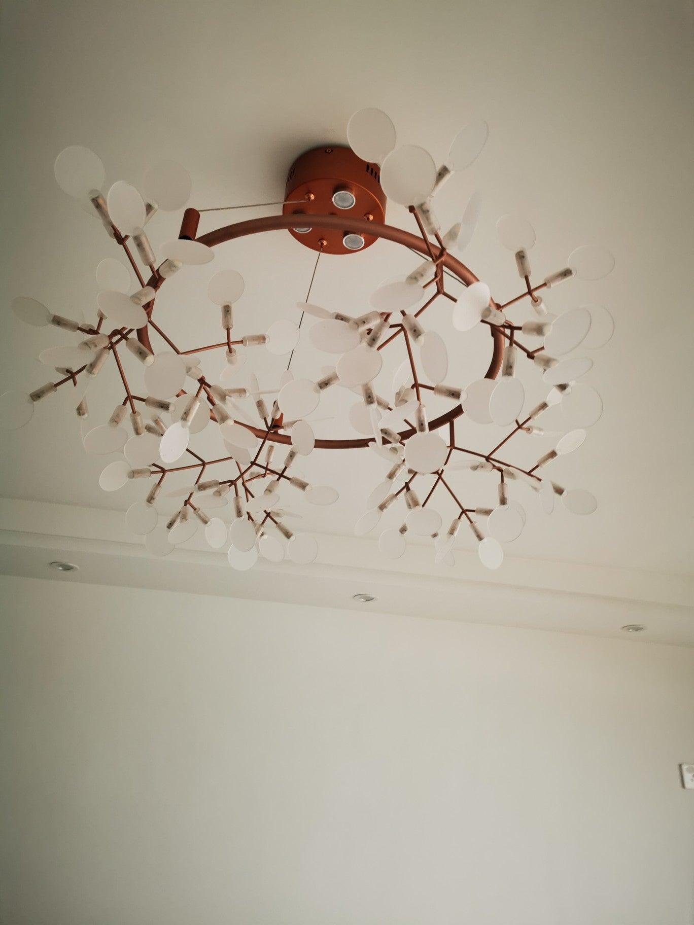 Big O 葉子沒有凍結在一個位置。可以通過圍繞其桿旋轉它們來自由重新定位。 Big O 提供裝飾性環境光。金屬線框、亞克力和超細吊線。