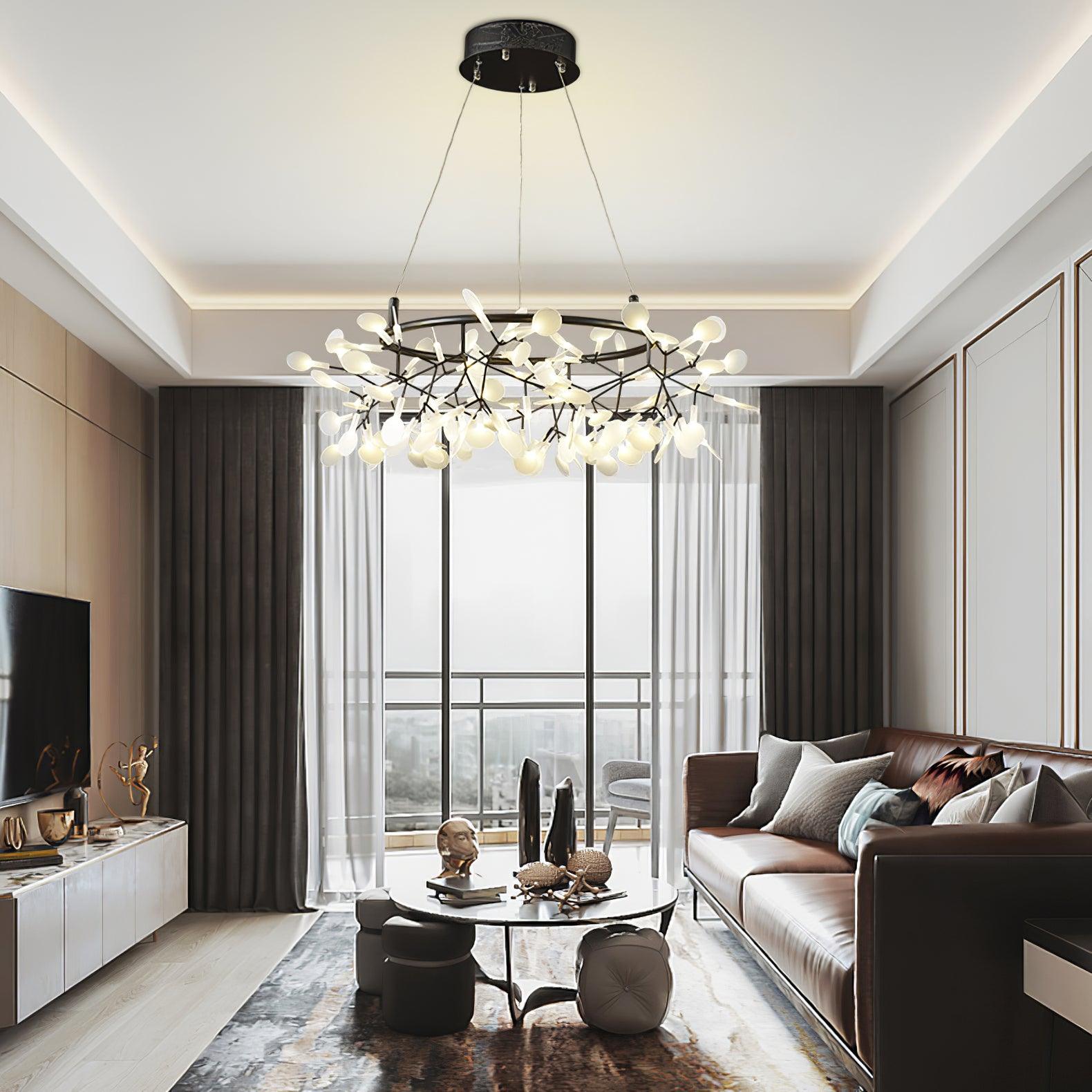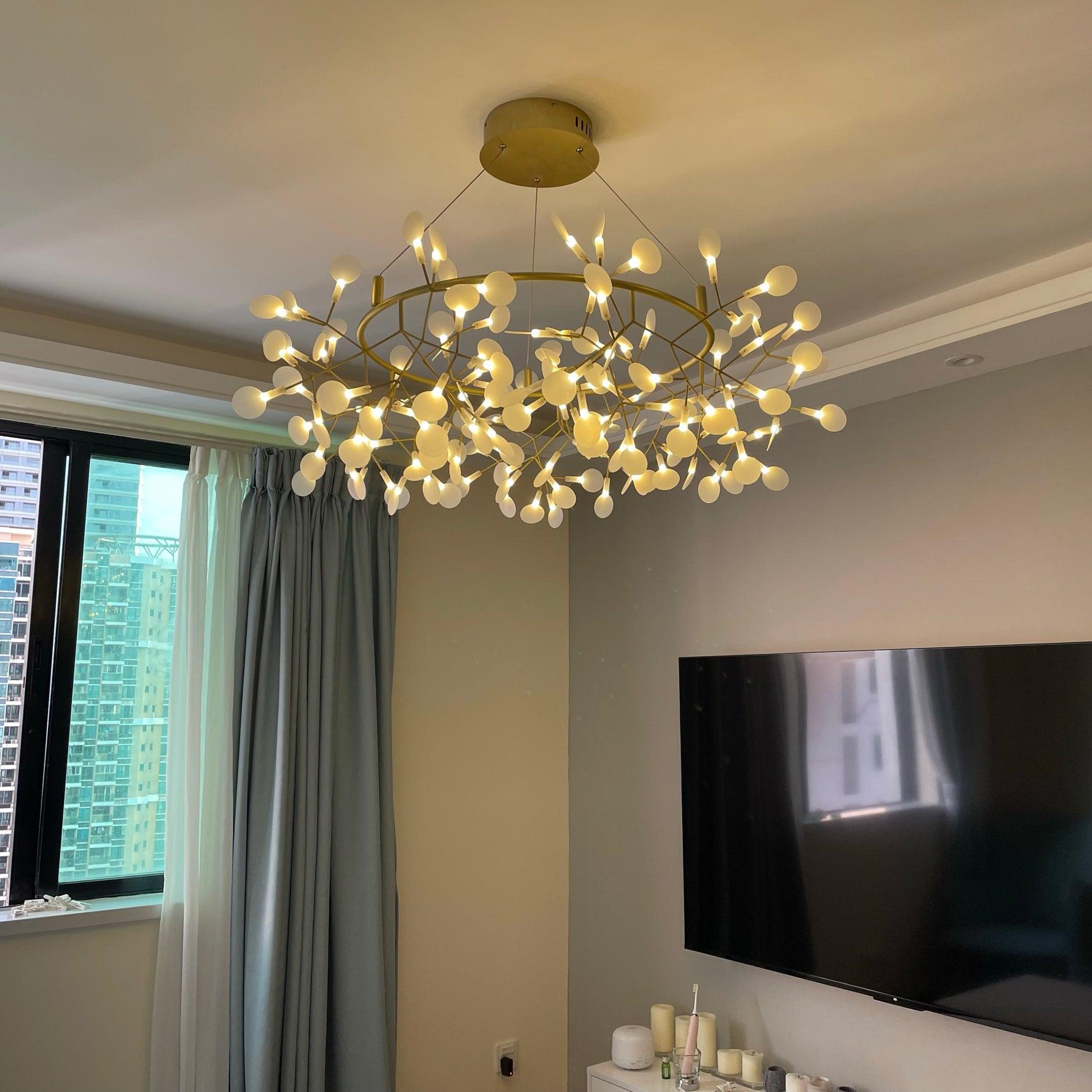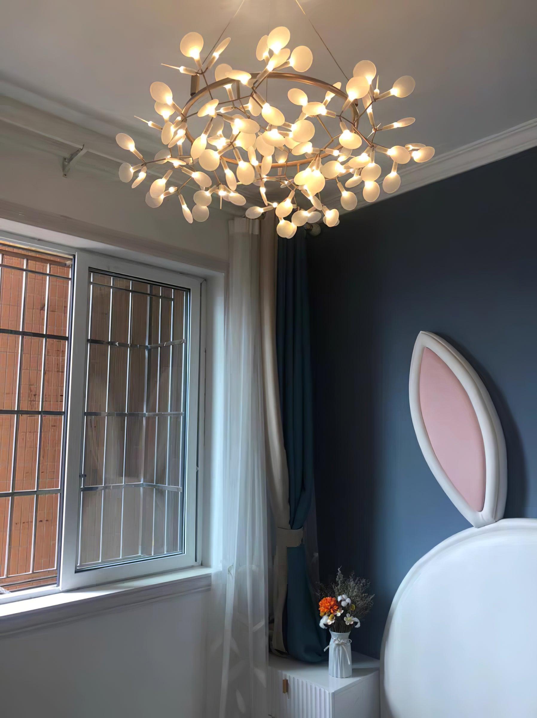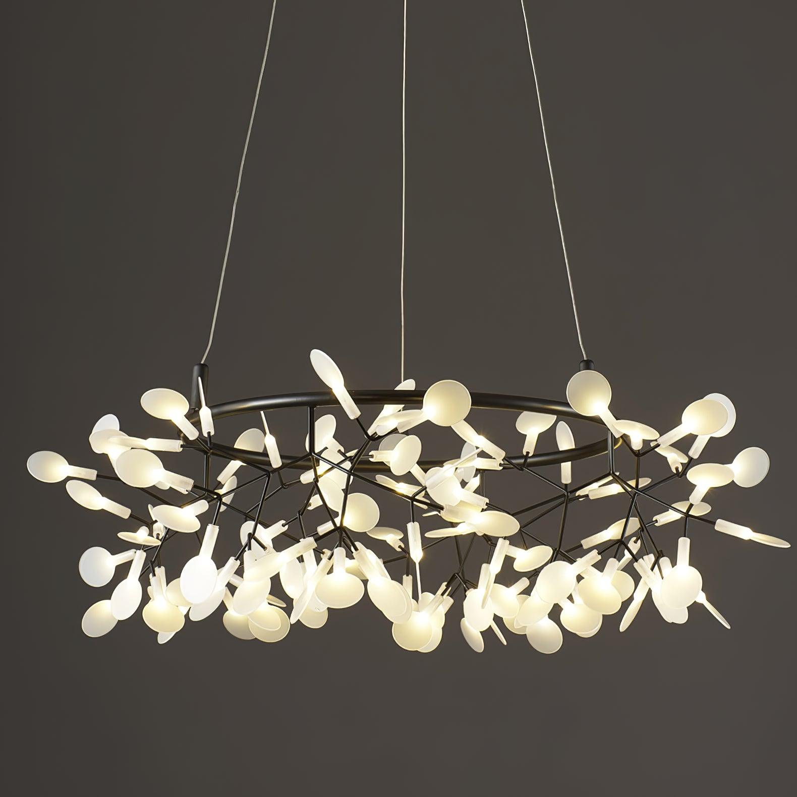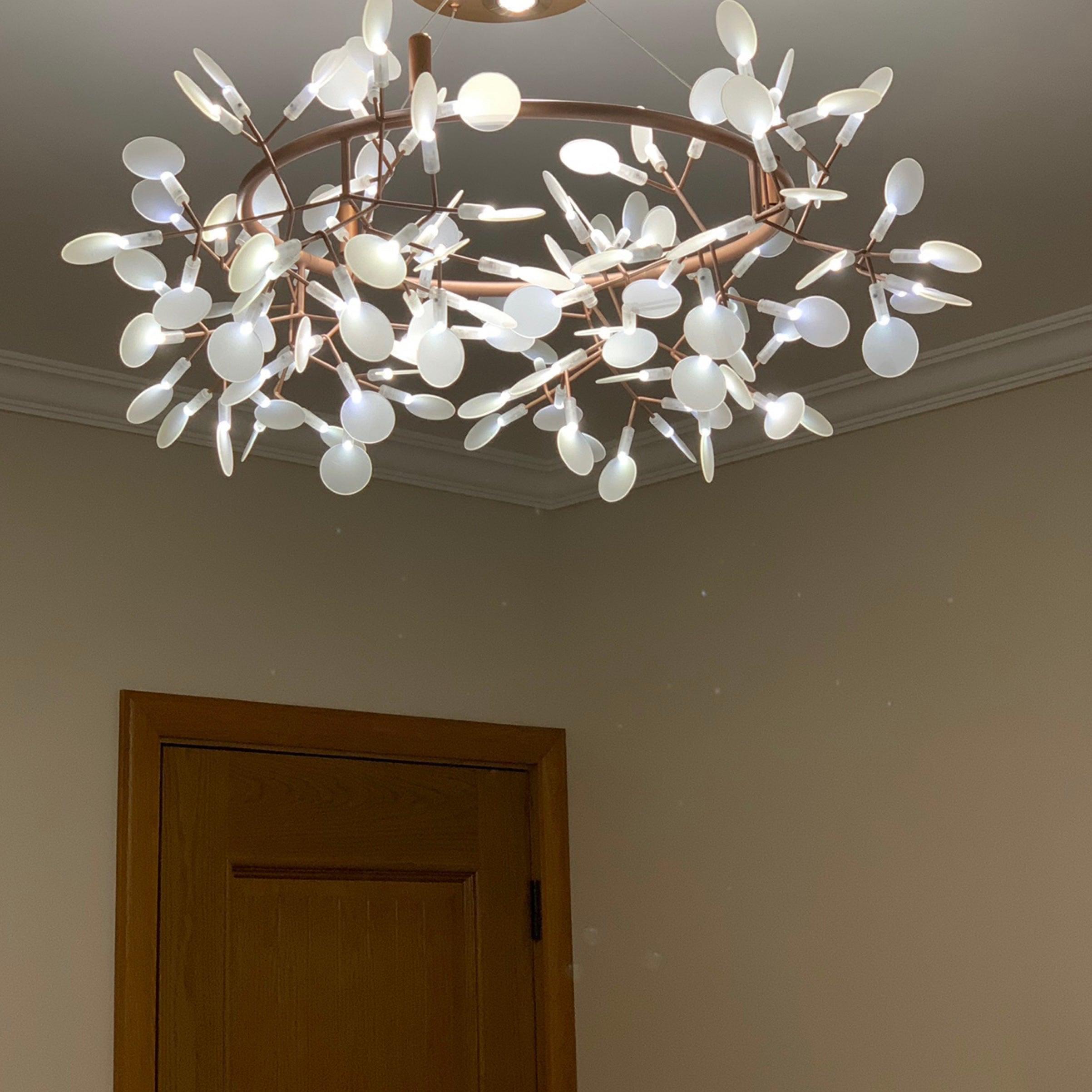 Big O 葉子沒有凍結在一個位置。可以通過圍繞其桿旋轉它們來自由重新定位。 Big O 提供裝飾性環境光。金屬線框、亞克力和超細吊線。