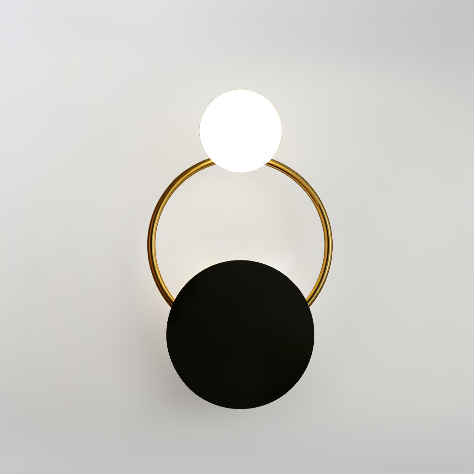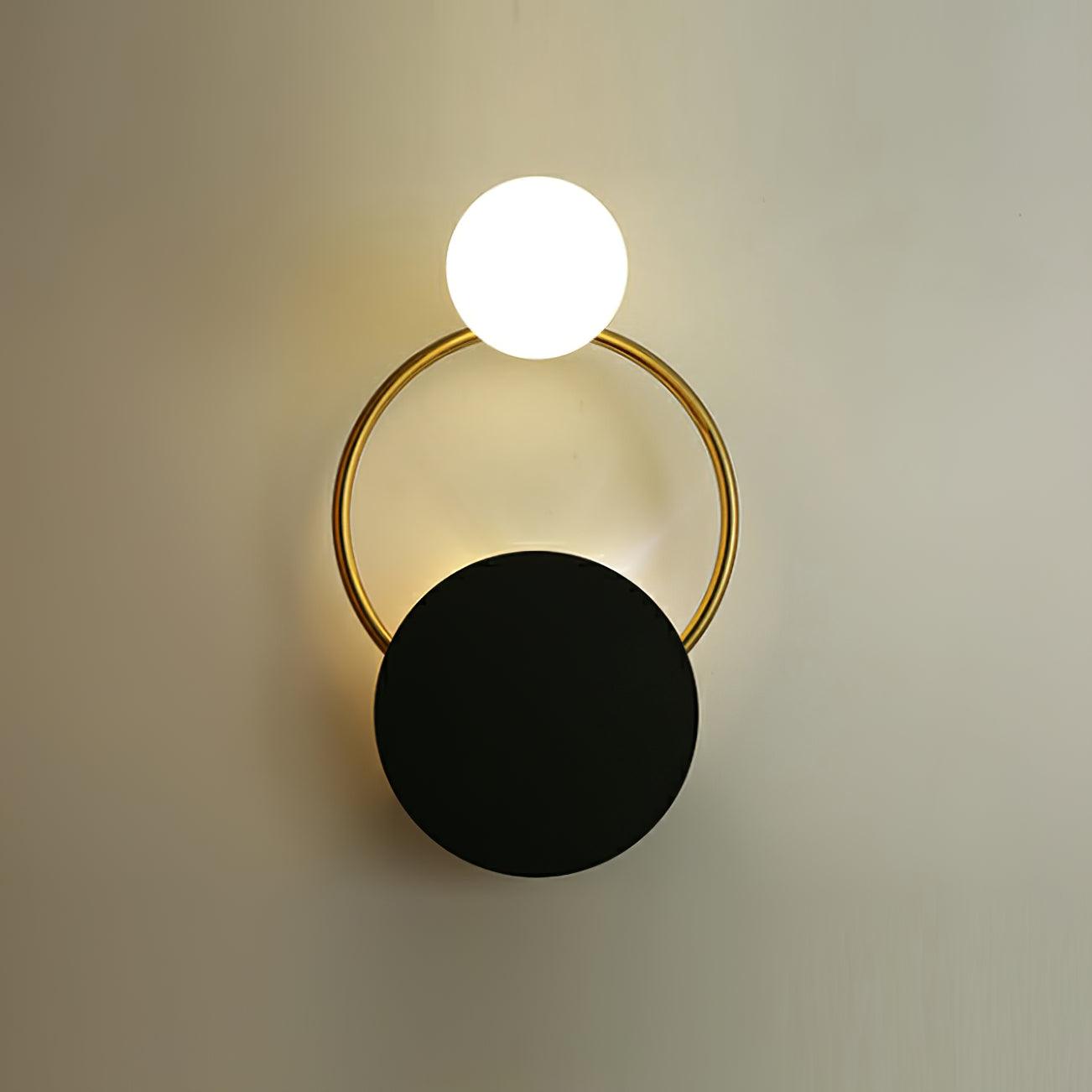 這款獨特的黑色圓環壁燈外觀優雅漂亮,非常適合營造舒適的氛圍和裝飾您的牆壁。黑色圓環壁燈採用對稱設計,由白色玻璃球體、金色圓環和黑色圓盤組成。作為床頭櫃上方的重點燈,也適用於許多其他環境。
