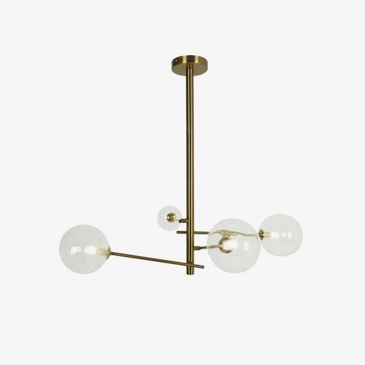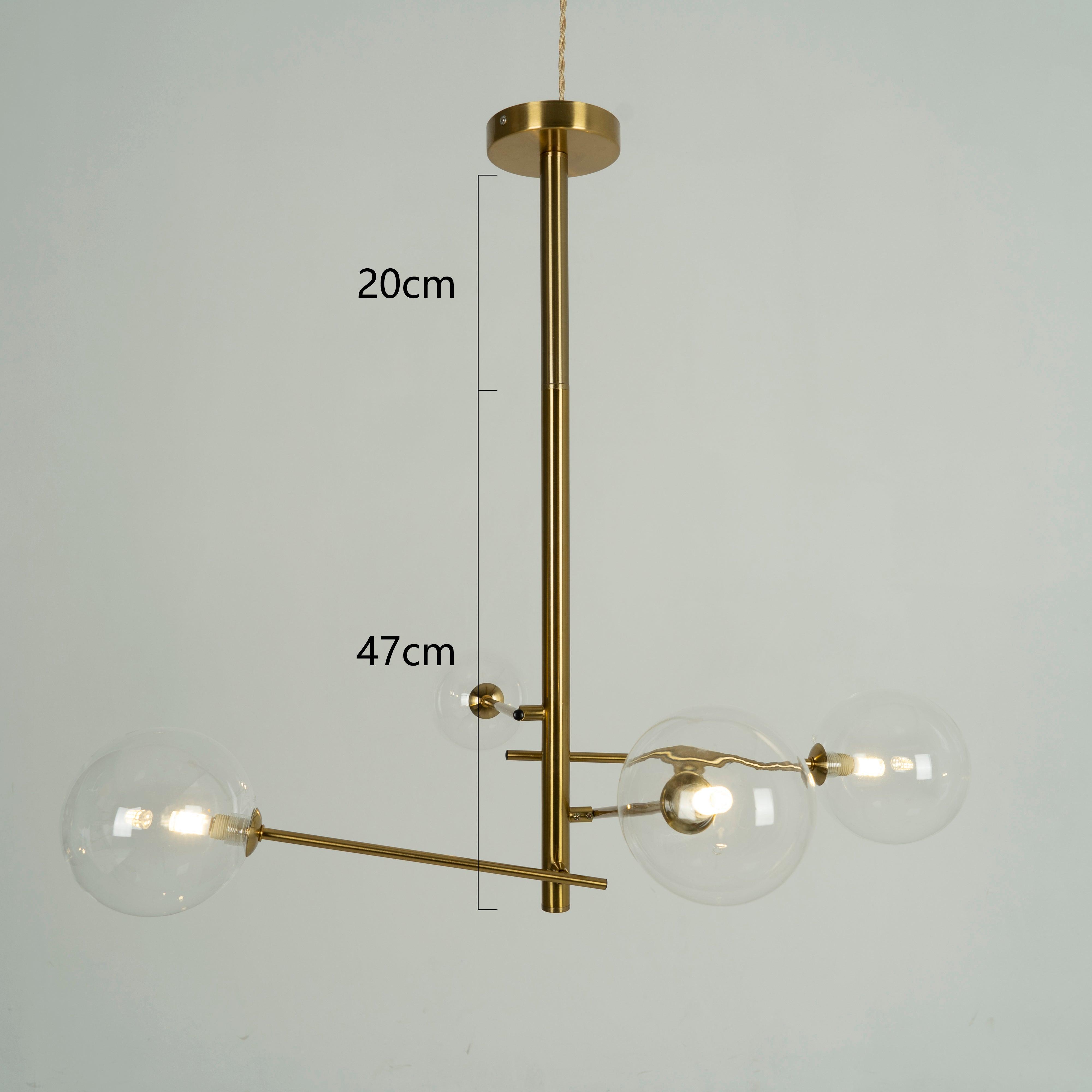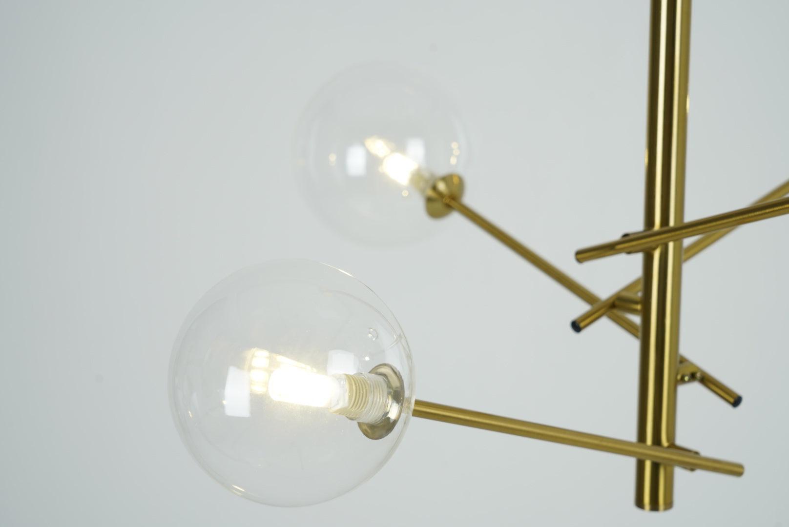 帶 LED 燈的吊燈。 6 個透明口吹水晶球。也提供帶 4 個球的版本。手工拋光黃銅金屬部件。黃銅自然染色且不均勻。這種工藝賦予每件作品獨特性,使其獨一無二。