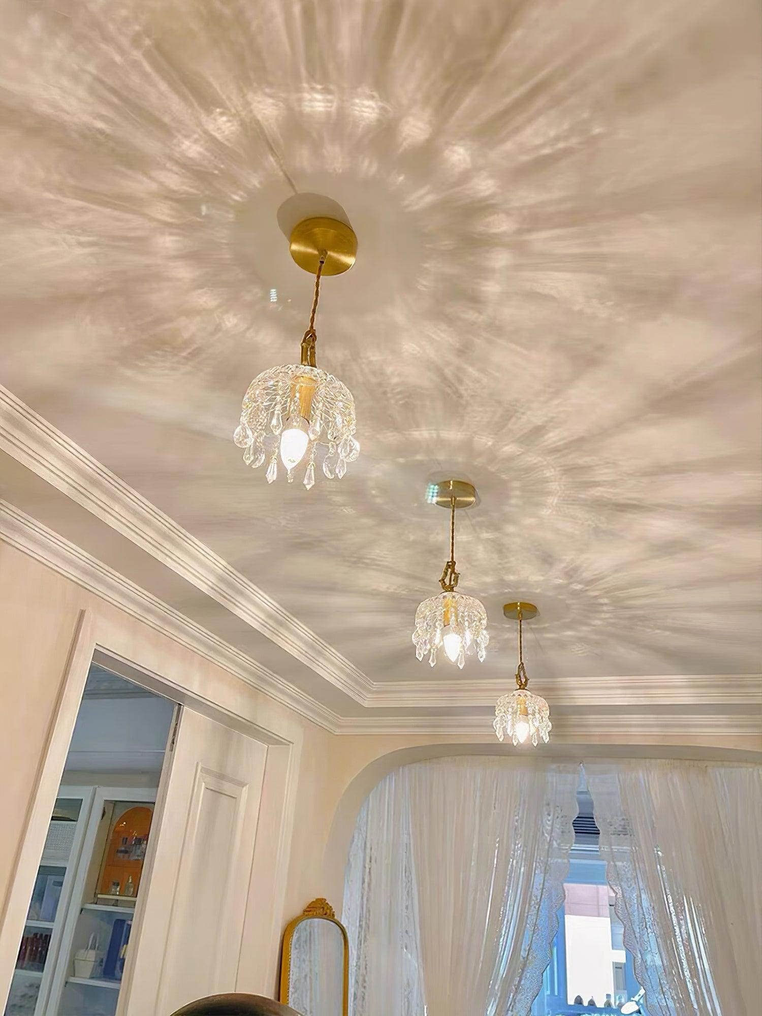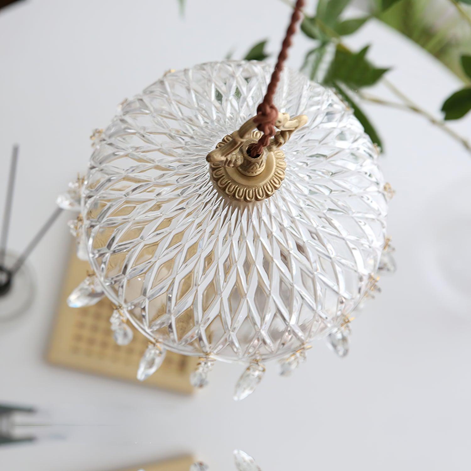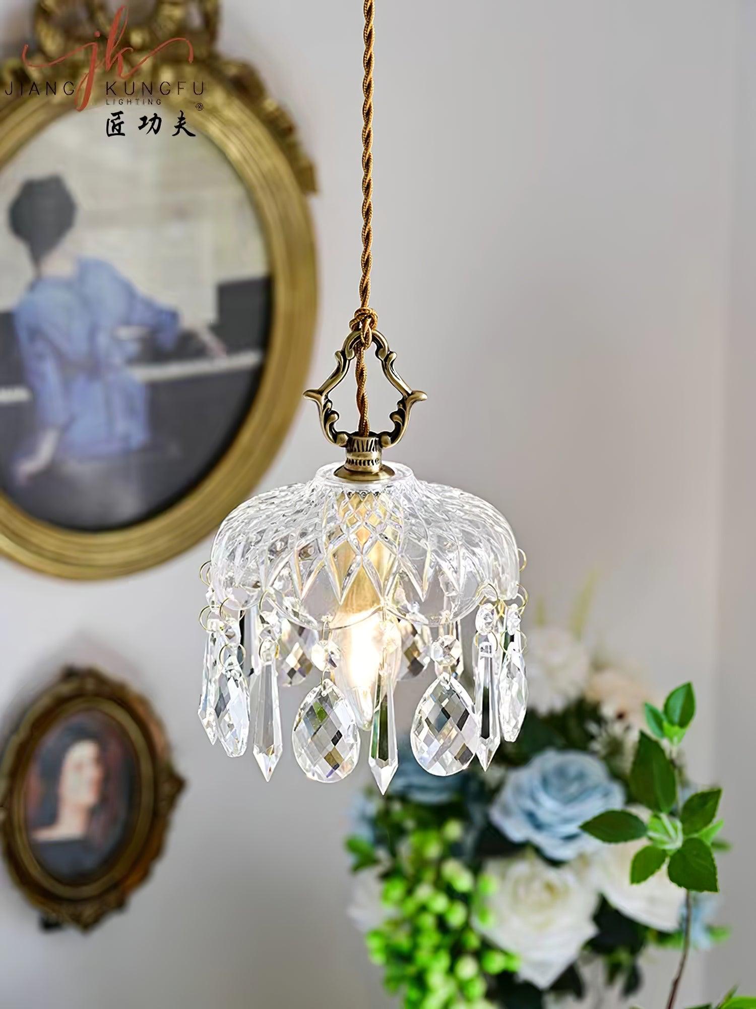 全銅燈頭搭配半透明玻璃燈罩,造型非常唯美浪漫,復古氣息十足。這款吊墜結合了時尚的複古元素,可為任何需要光線和額外功能的入口、餐廳、廚房或家庭帶來一絲個性。
