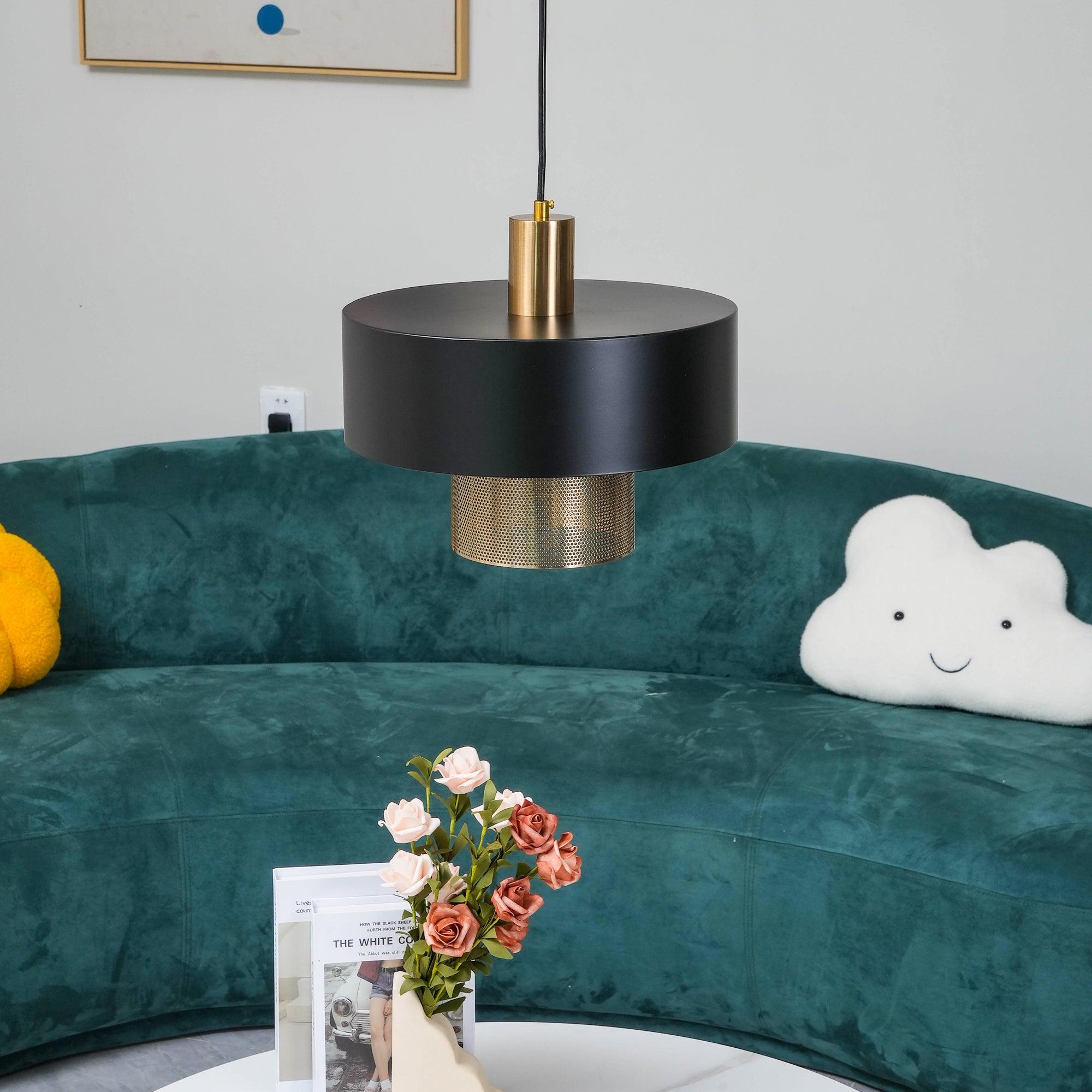 Bradbury 吊燈設計引人注目,採用對比鮮明的飾面和金屬營造出高貴、引人注目的外觀。一個 60 瓦的燈泡通過穿孔的銅內燈罩發出美麗的光芒,在房間周圍營造出溫暖的光芒。可調節的燈罩允許在需要的地方提供定向光。