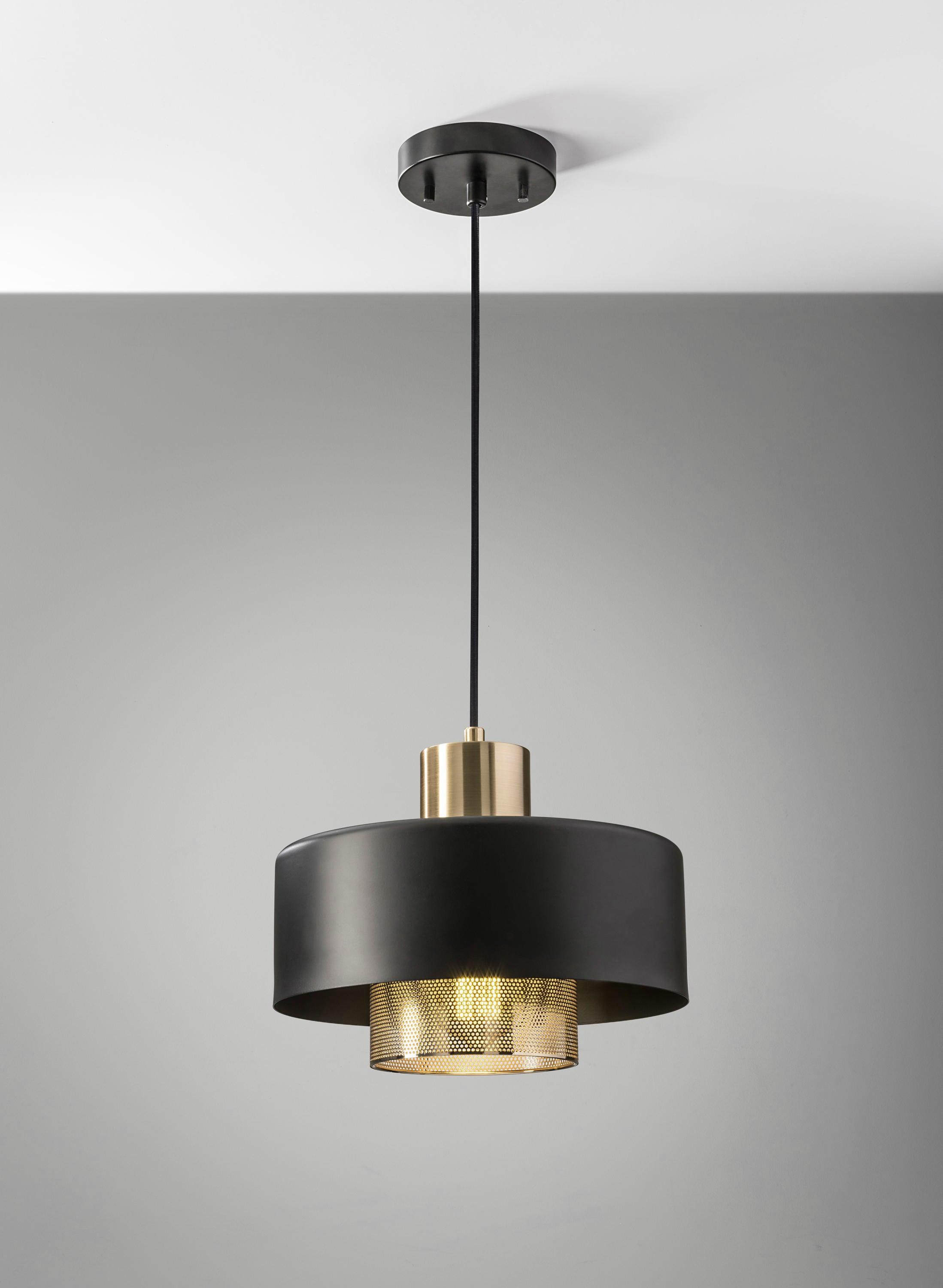 Bradbury 檯燈設計引人注目,採用對比鮮明的飾面和金屬營造出高貴、引人注目的外觀。一個 60 瓦的燈泡通過穿孔的銅內燈罩發出美麗的光芒,在房間周圍營造出溫暖的光芒。可調節的燈罩允許在需要的地方提供定向光。