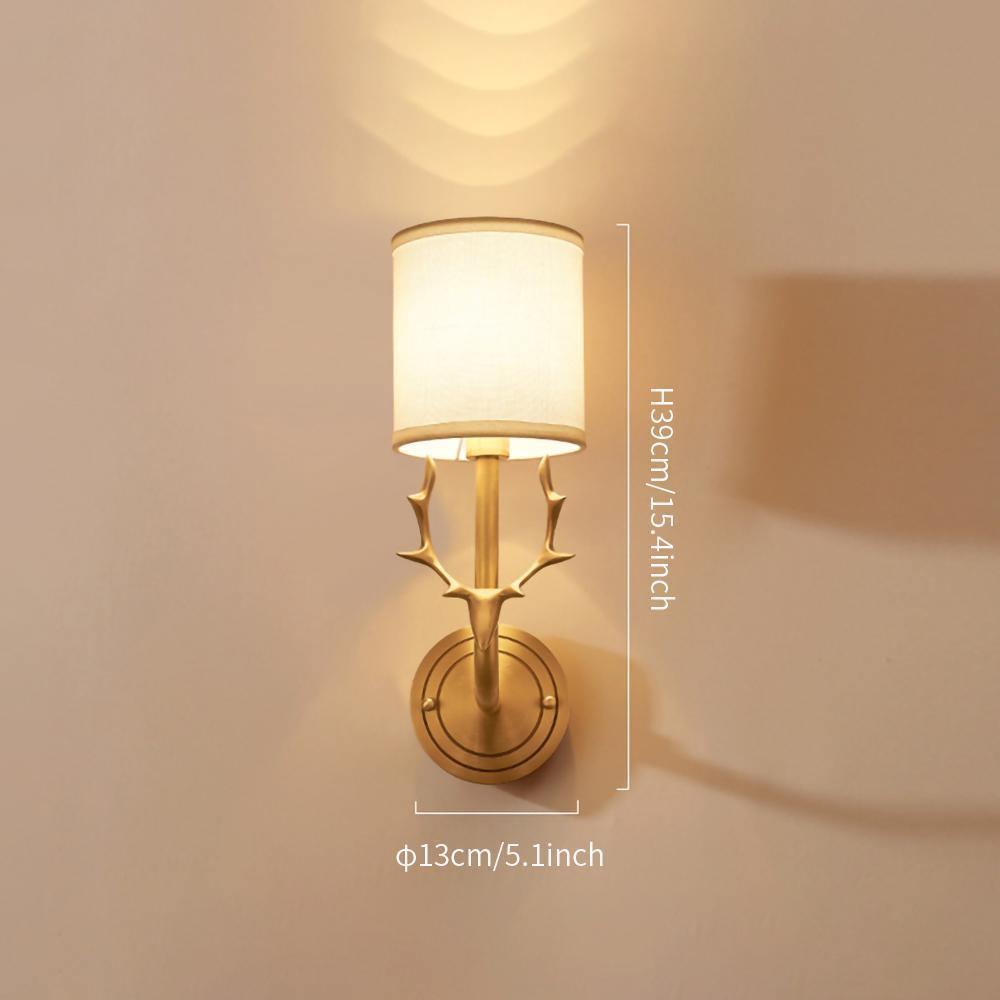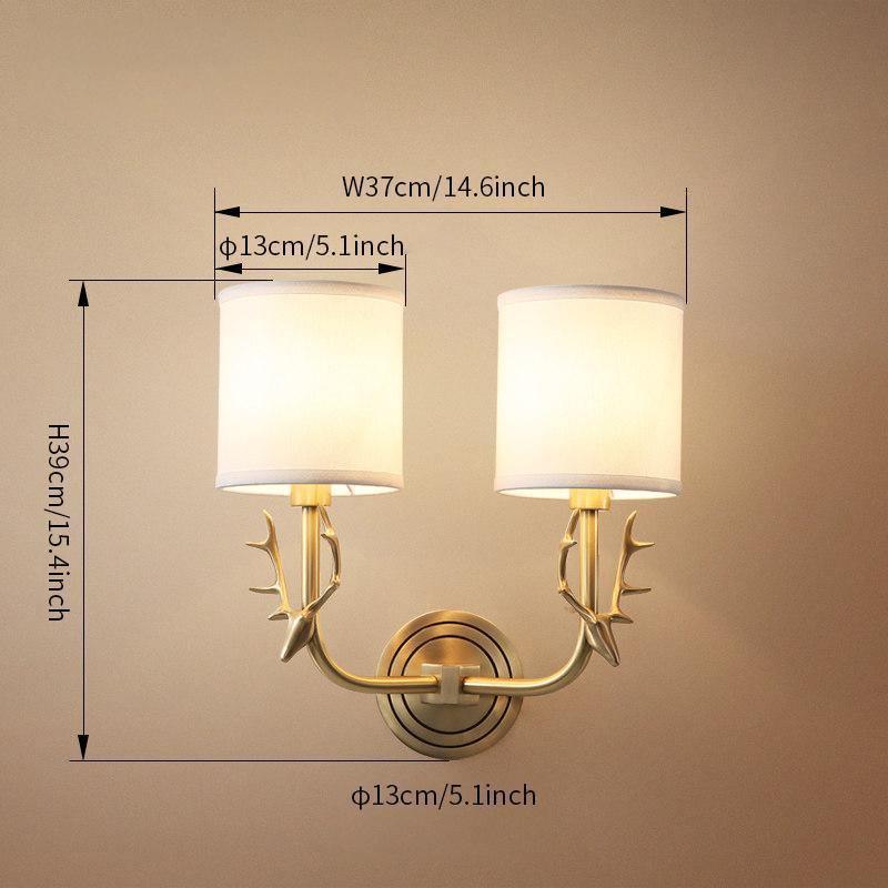 黃銅鹿頭壁燈系列採用鹿頭造型和涵道人造絲燈罩。這款雙頭壁燈有兩個照明裝置,每個照明裝置都連接到圓形後面板。簡潔的黃銅線條為這款現代作品帶來傳統氣息。