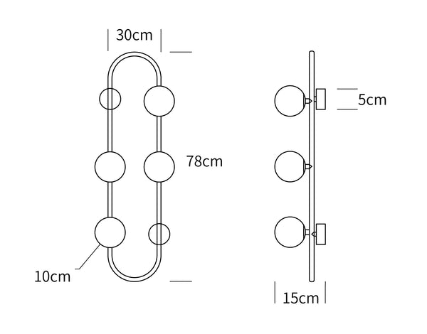這款別緻的壁燈由玻璃球形燈罩和金屬支架樹枝製成,簡約而別緻。它擁有一根閃閃發光的金色幾何橢圓形吊桿。這款迷人的壁燈將以現代風格照亮您的家。適合任何場合。