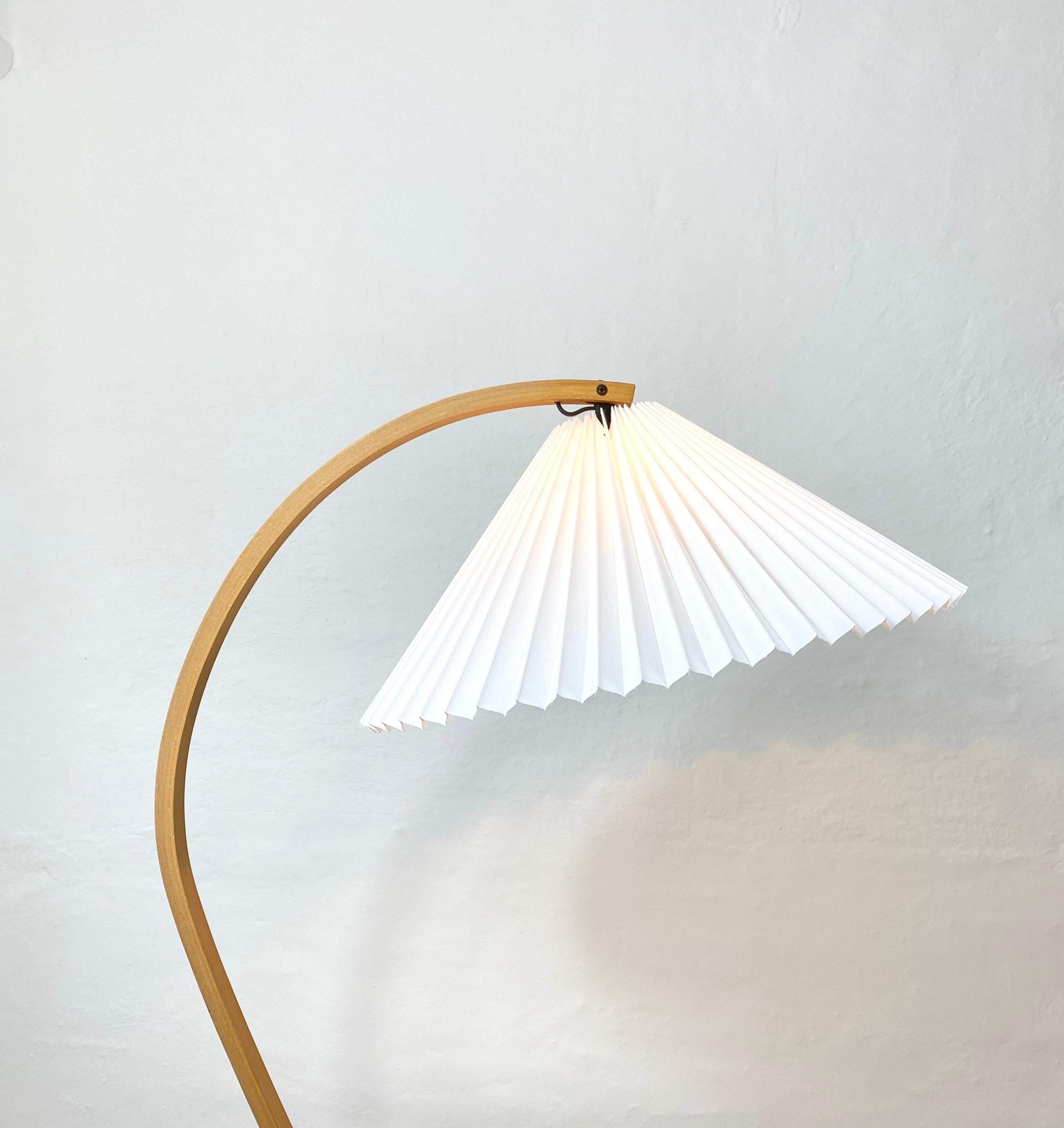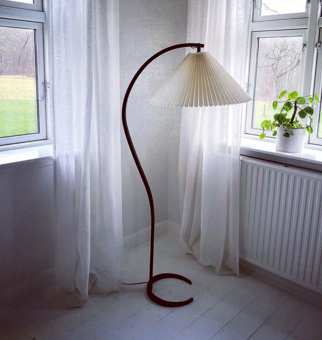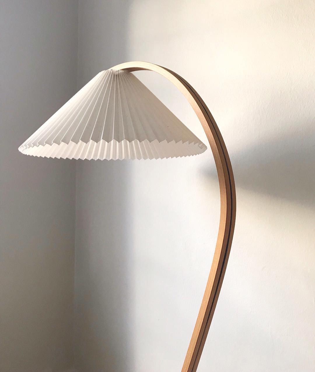 這款復古中世紀落地燈由 Mads Caprani 為 Caprani Light 設計,這款燈採用漂亮的山毛櫸木支架,曲線優雅,鑄鐵底座。燈罩由亞麻製成。