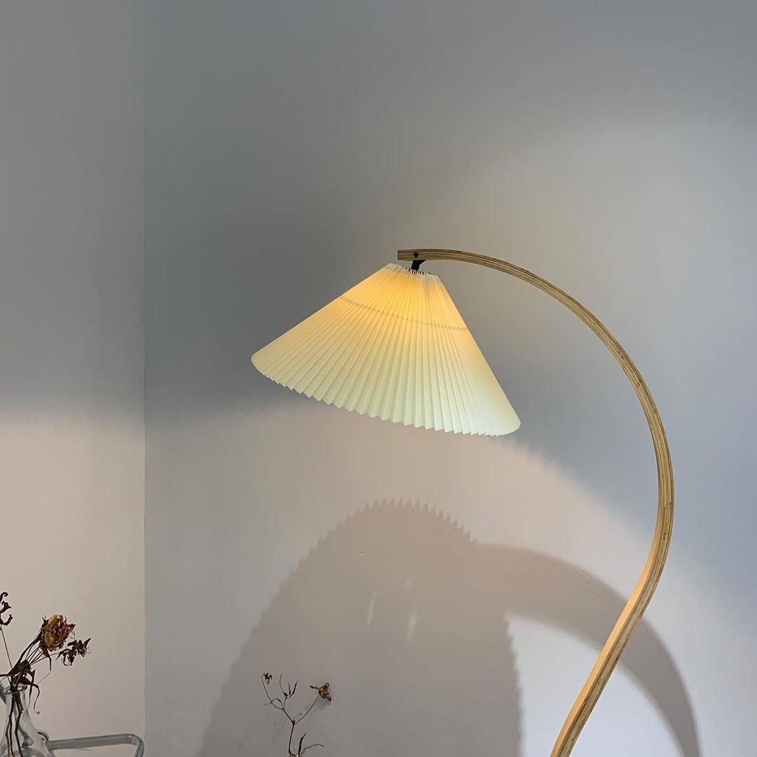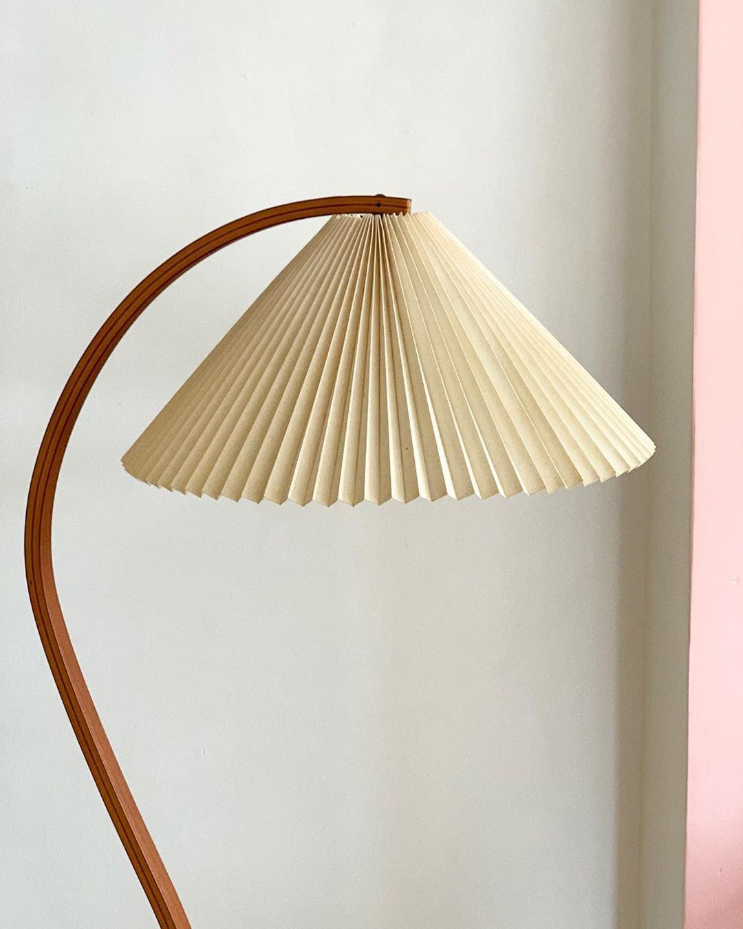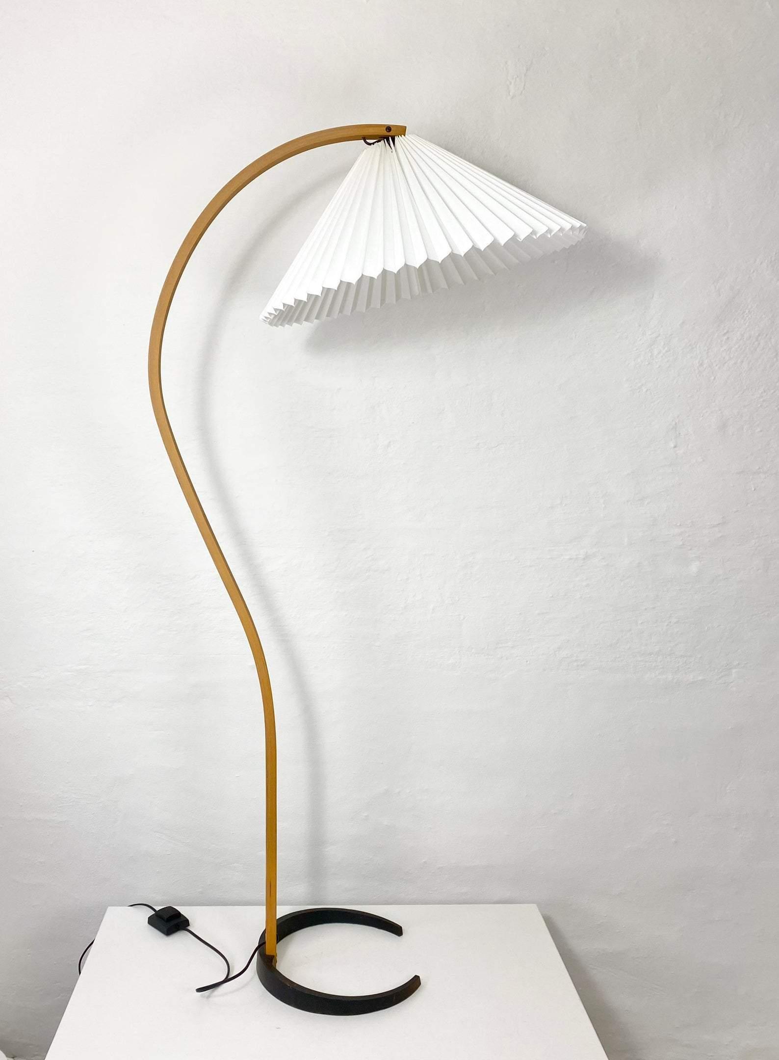 這款復古中世紀落地燈由 Mads Caprani 為 Caprani Light 設計,這款燈採用漂亮的山毛櫸木支架,曲線優雅,鑄鐵底座。燈罩由亞麻製成。