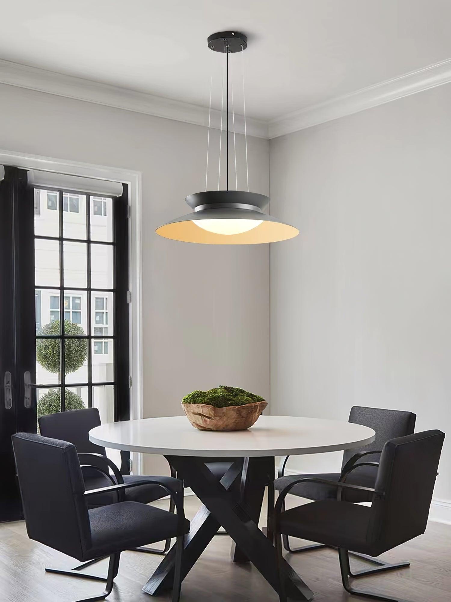 設計師為 vakkerlight 設計的“Cetra”吊燈。鋁金屬,白色亞克力擴散器,原裝頂篷。符合美國標準。