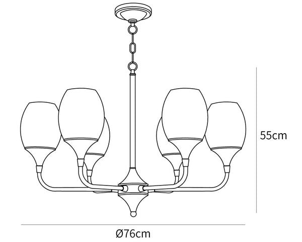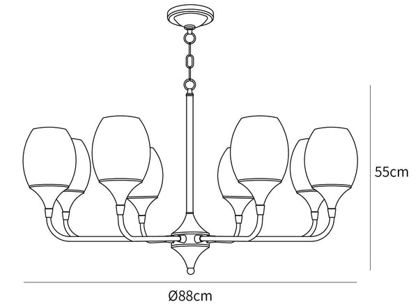 這盞枝形吊燈通過這款迷人的蠟燭式枝形吊燈回憶起美好的過去。八隻起伏的手臂自豪地舉起明亮的燈光,就好像您被傳送到一個不斷舉行社交舞會和社交聚會的世界——即使您真的只是在舉辦友好的晚宴或在下班後閱讀您最喜歡的小說。您可以享受過去的回憶,同時仍然享受現代家庭的簡單奢華。