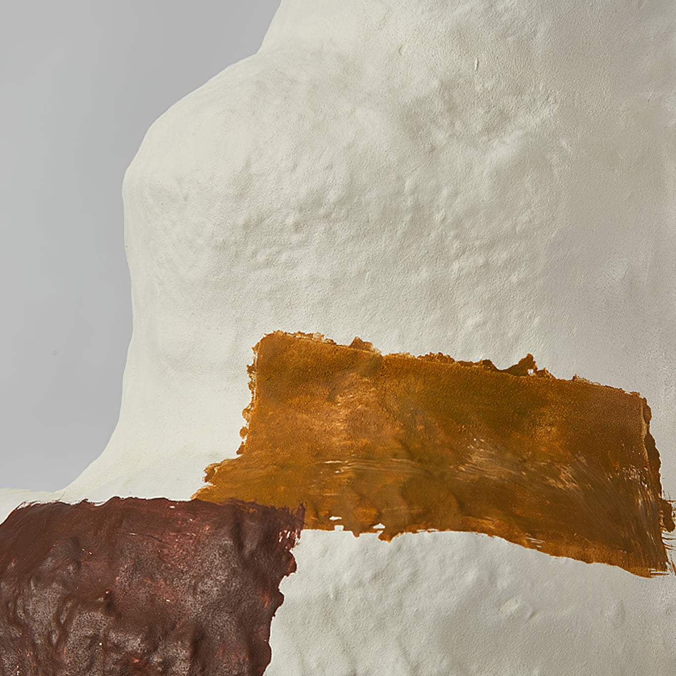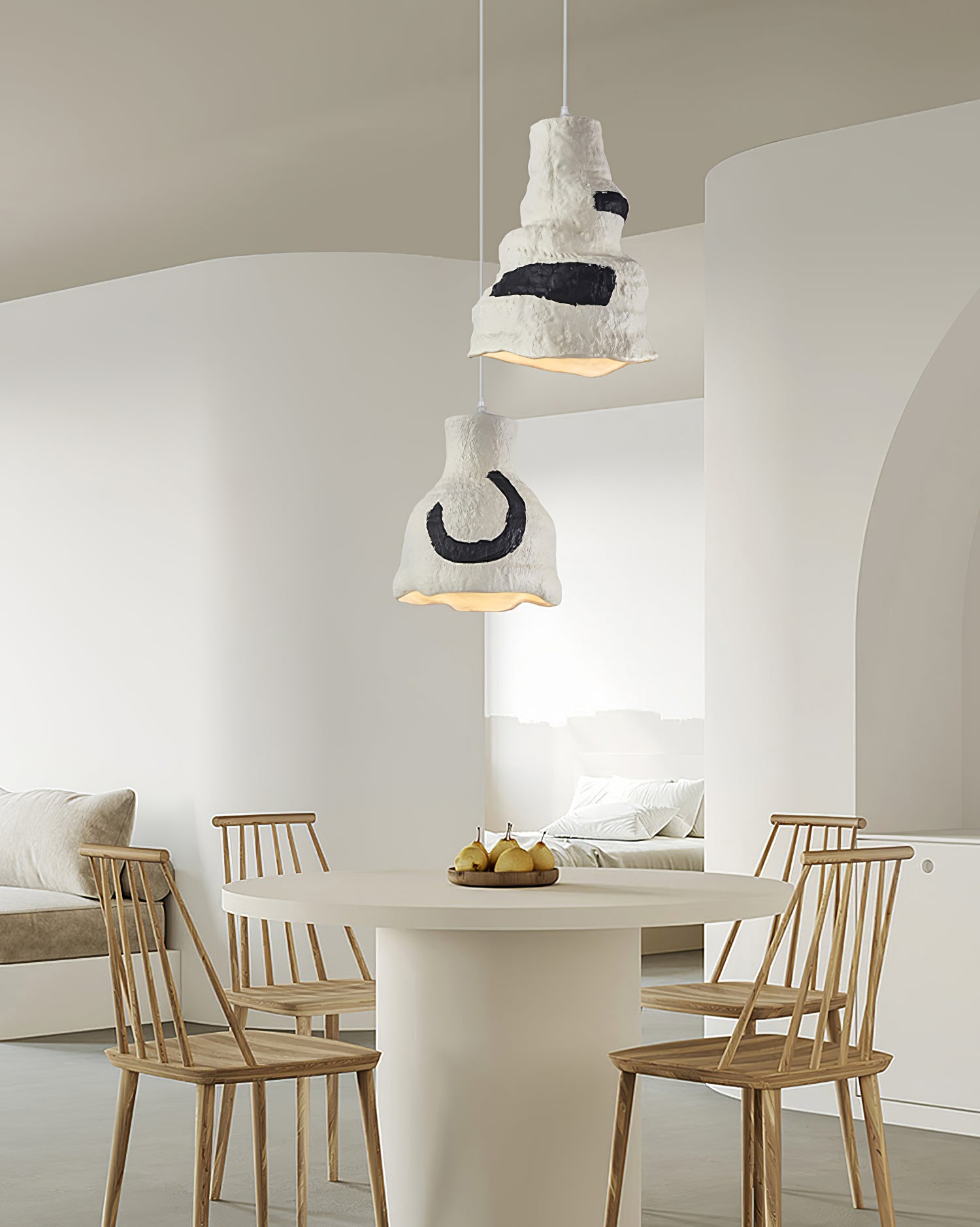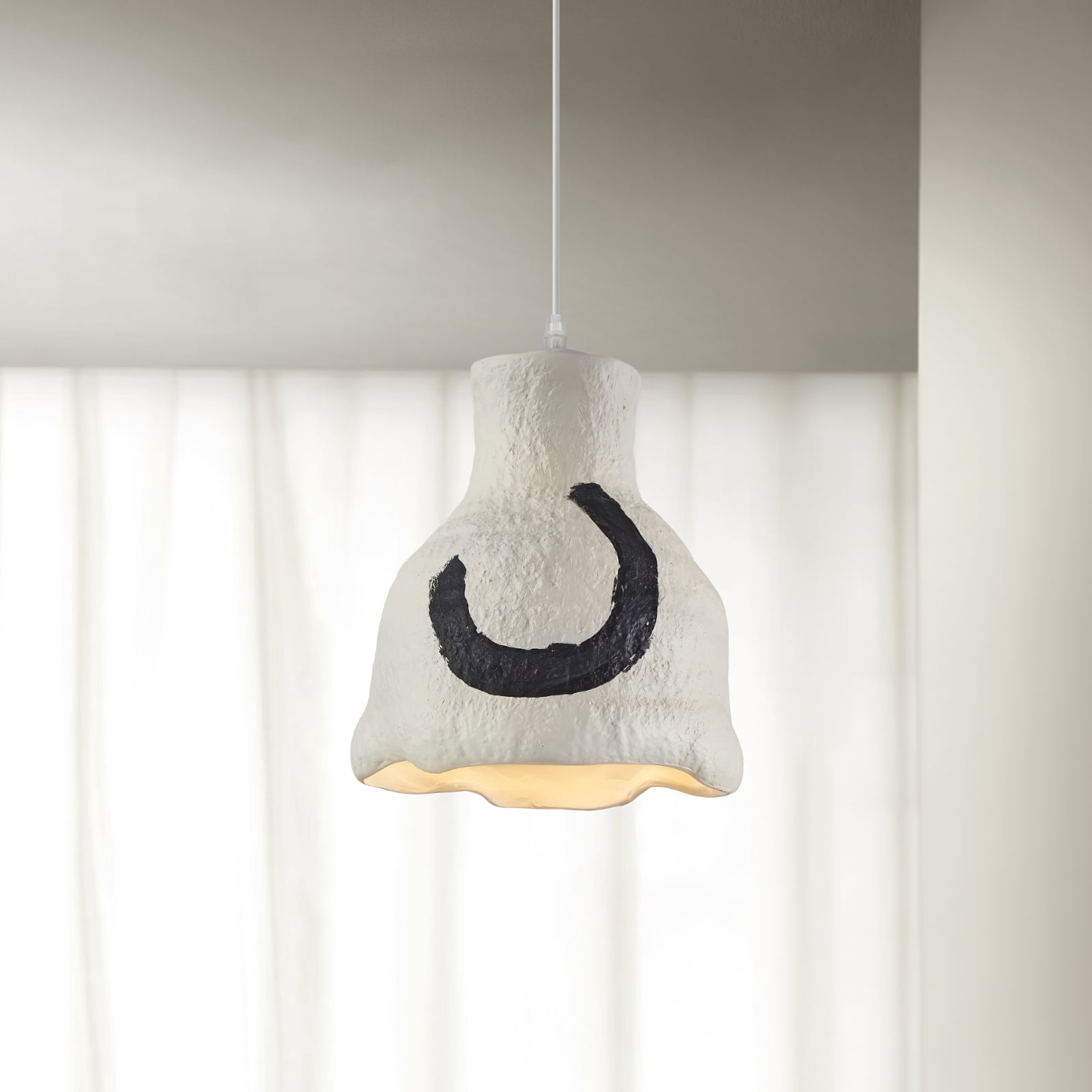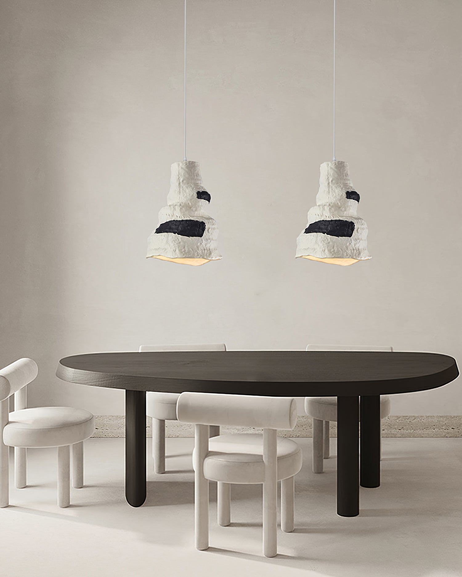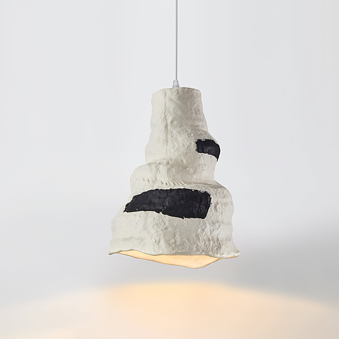 這件相當後現代的藝術品由不合邏輯的形狀和不尋常的材料組成。灰白色的色調更能強調其表面的紋理,襯託其質感,因為它沒有明顯的飾面。即使是巨大的尺寸也不會太重,因為它是由輕質材料製成的,儘管您可能會把它想像成一盞水泥吊燈。