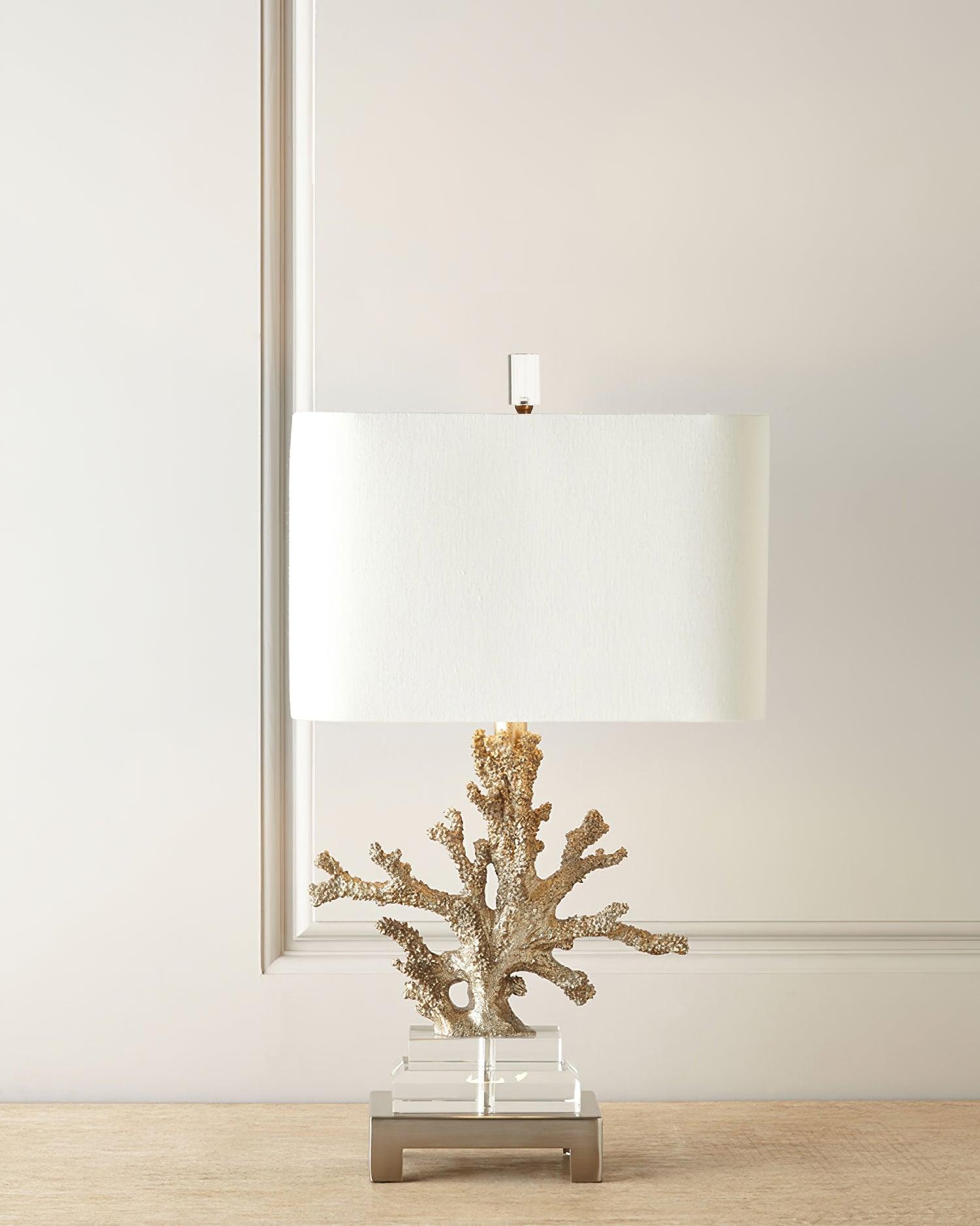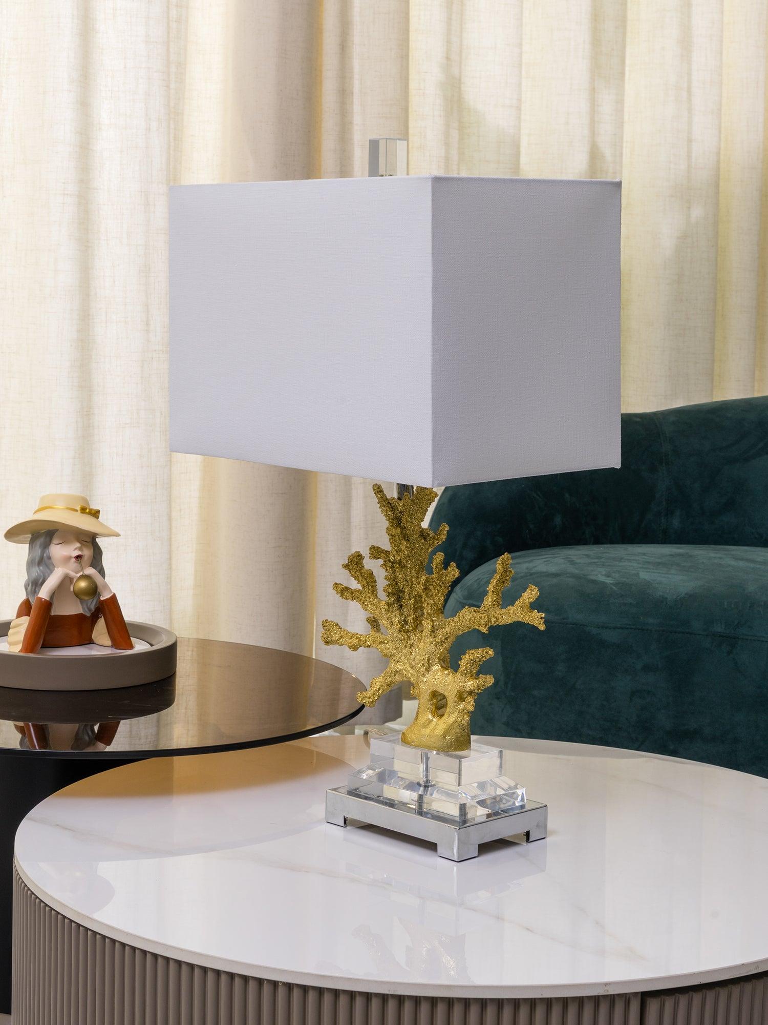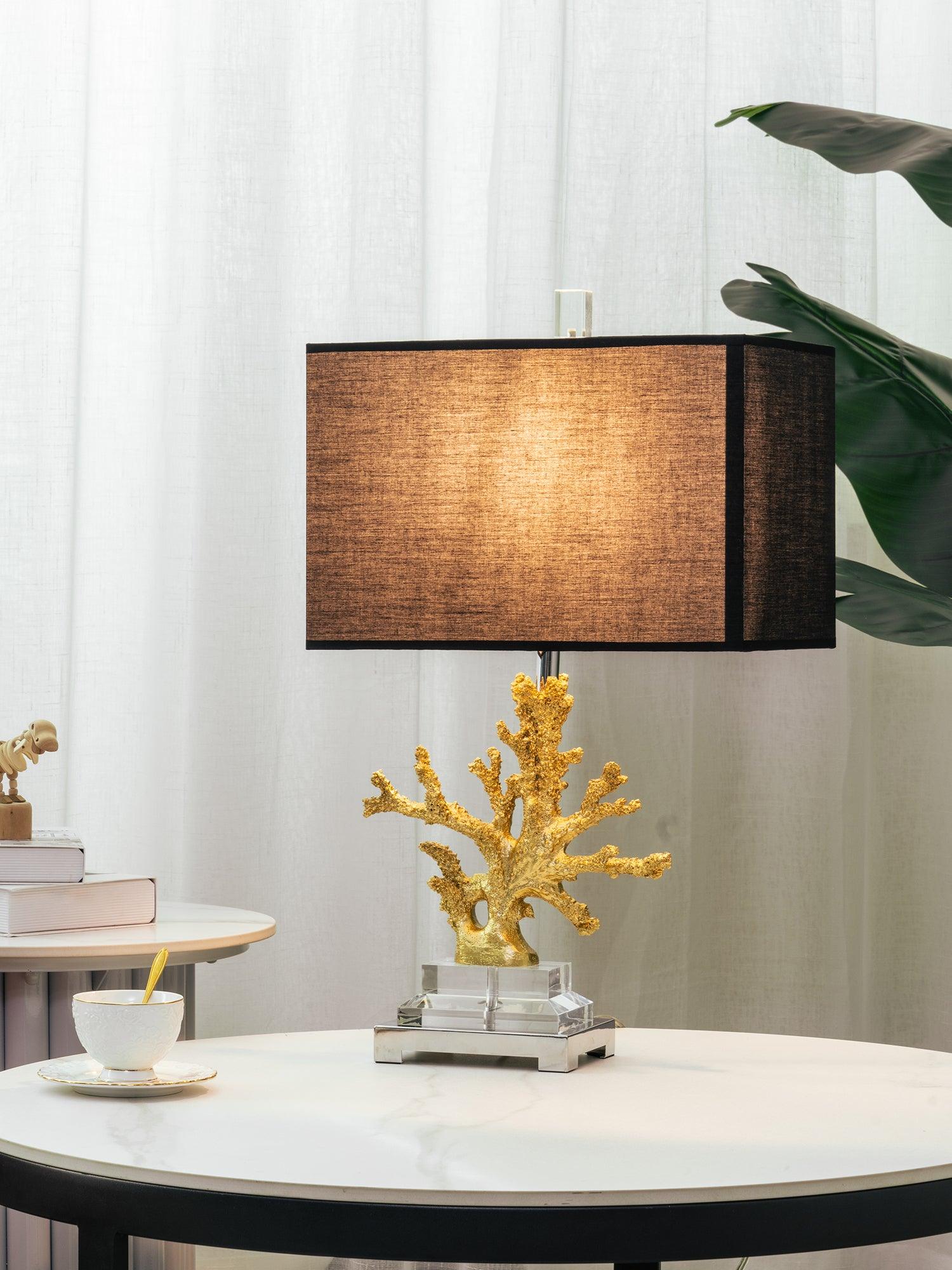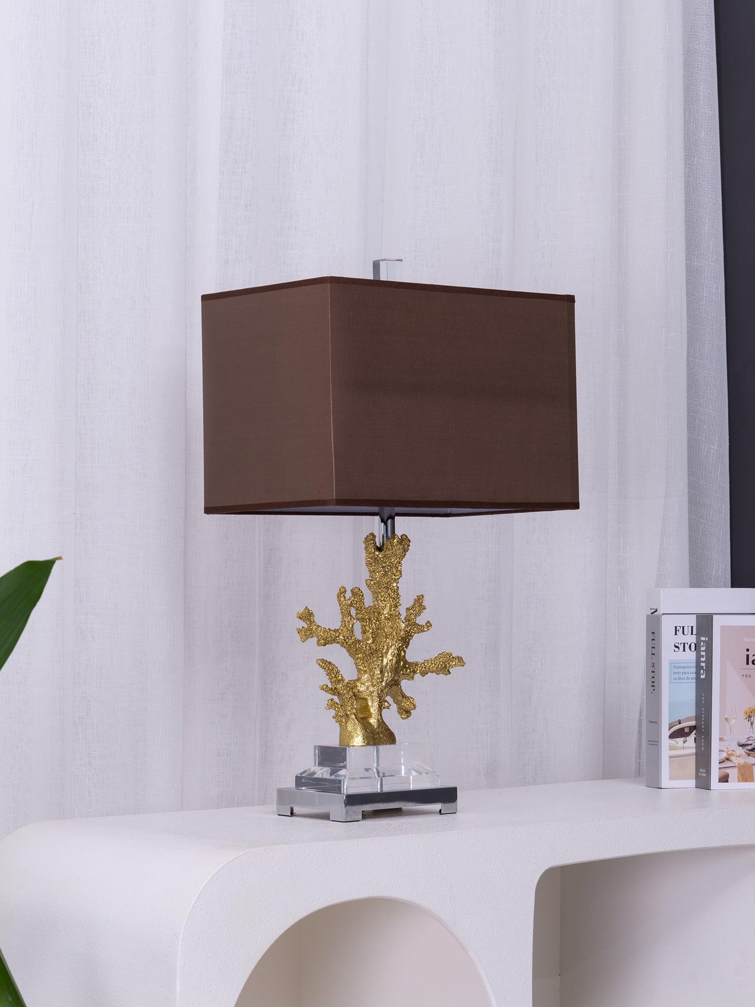 遙遠的地方就在您的指尖。這款以沿海生活為靈感的珊瑚檯燈採用珊瑚主體設計,安裝在拉絲黃銅和水晶底座上。精緻的珊瑚主體採用優雅的金色表面處理。頂部是矩形圓角精裝燈罩 - 黑色或白色亞麻布,帶有對比色金箔紙襯裡。如此逼真,如果你仔細聽,你可能會聽到海浪的轟鳴聲。