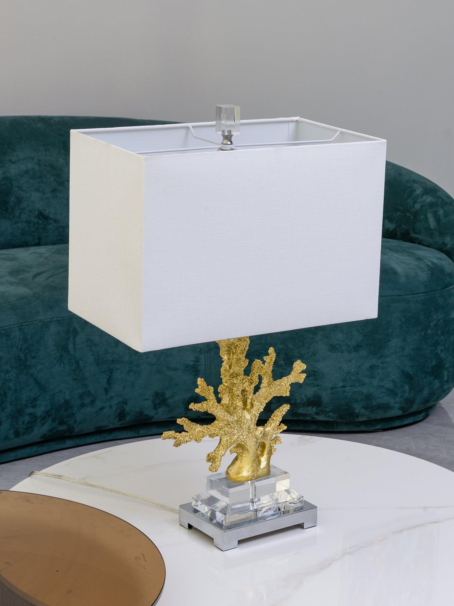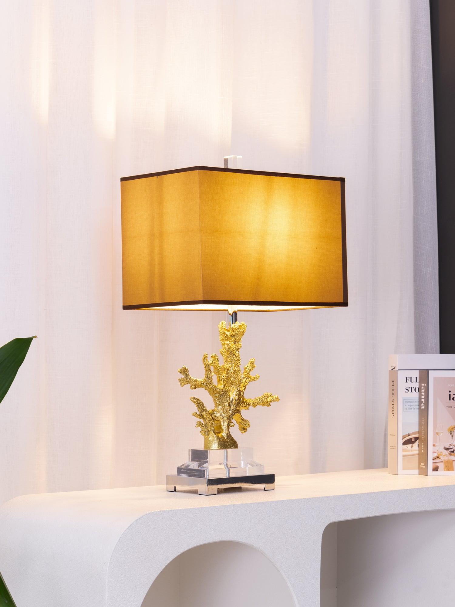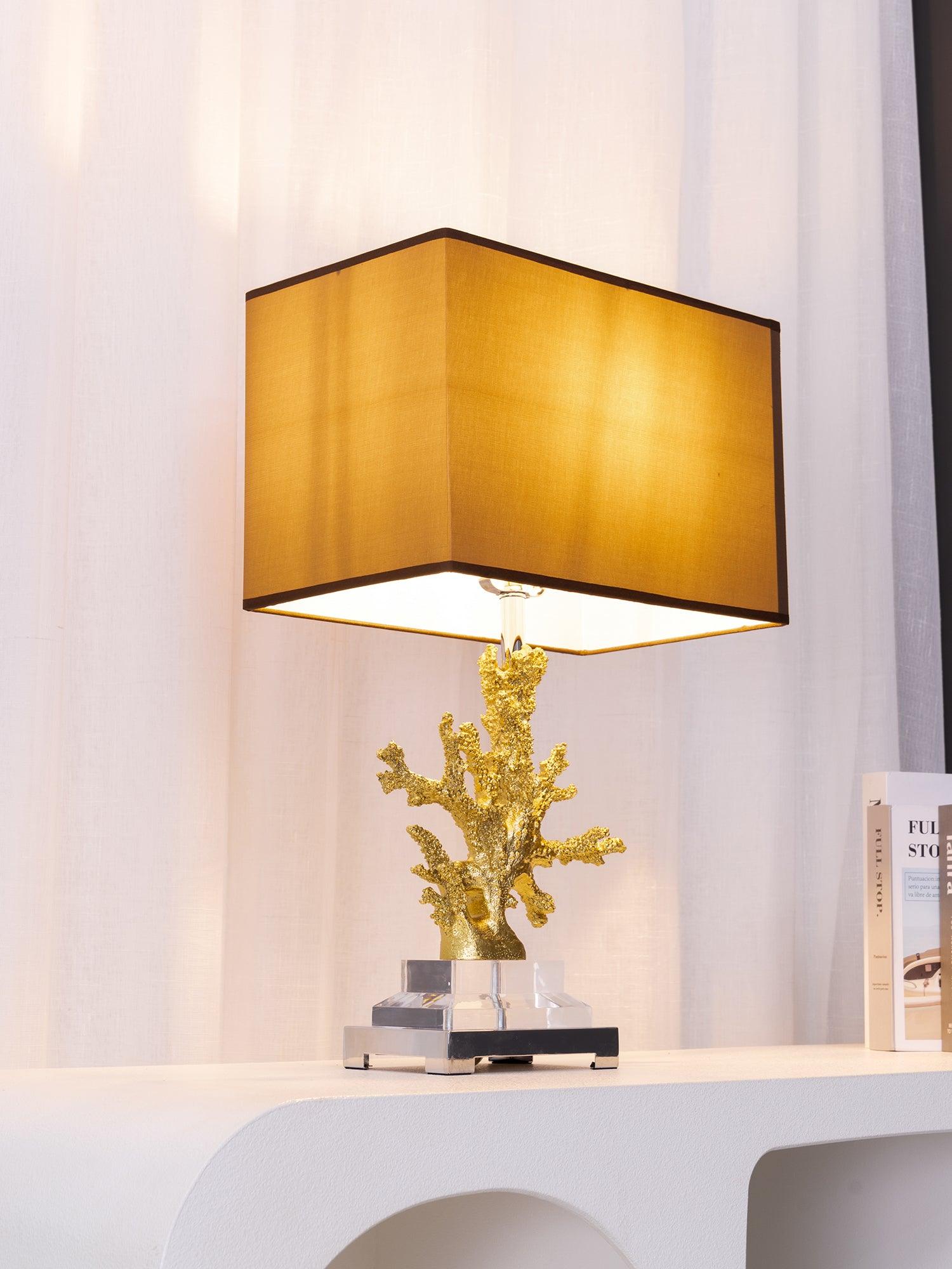 遙遠的地方就在您的指尖。這款以沿海生活為靈感的珊瑚檯燈採用珊瑚主體設計,安裝在拉絲黃銅和水晶底座上。精緻的珊瑚主體採用優雅的金色表面處理。頂部是矩形圓角精裝燈罩 - 黑色或白色亞麻布,帶有對比色金箔紙襯裡。如此逼真,如果你仔細聽,你可能會聽到海浪的轟鳴聲。
