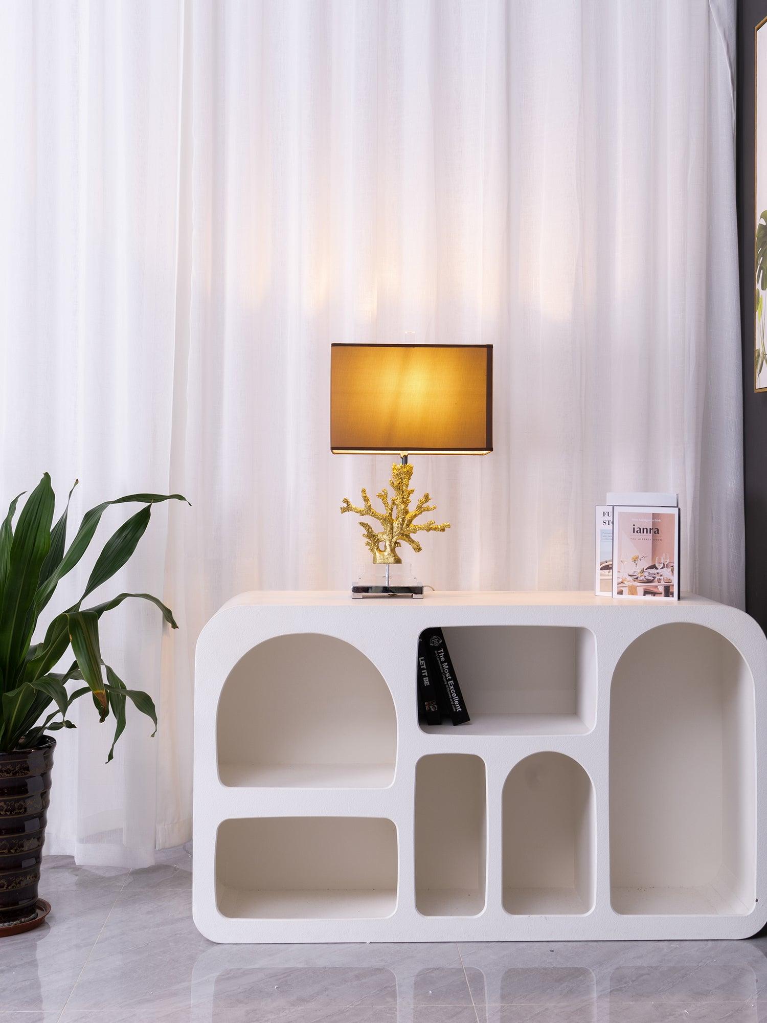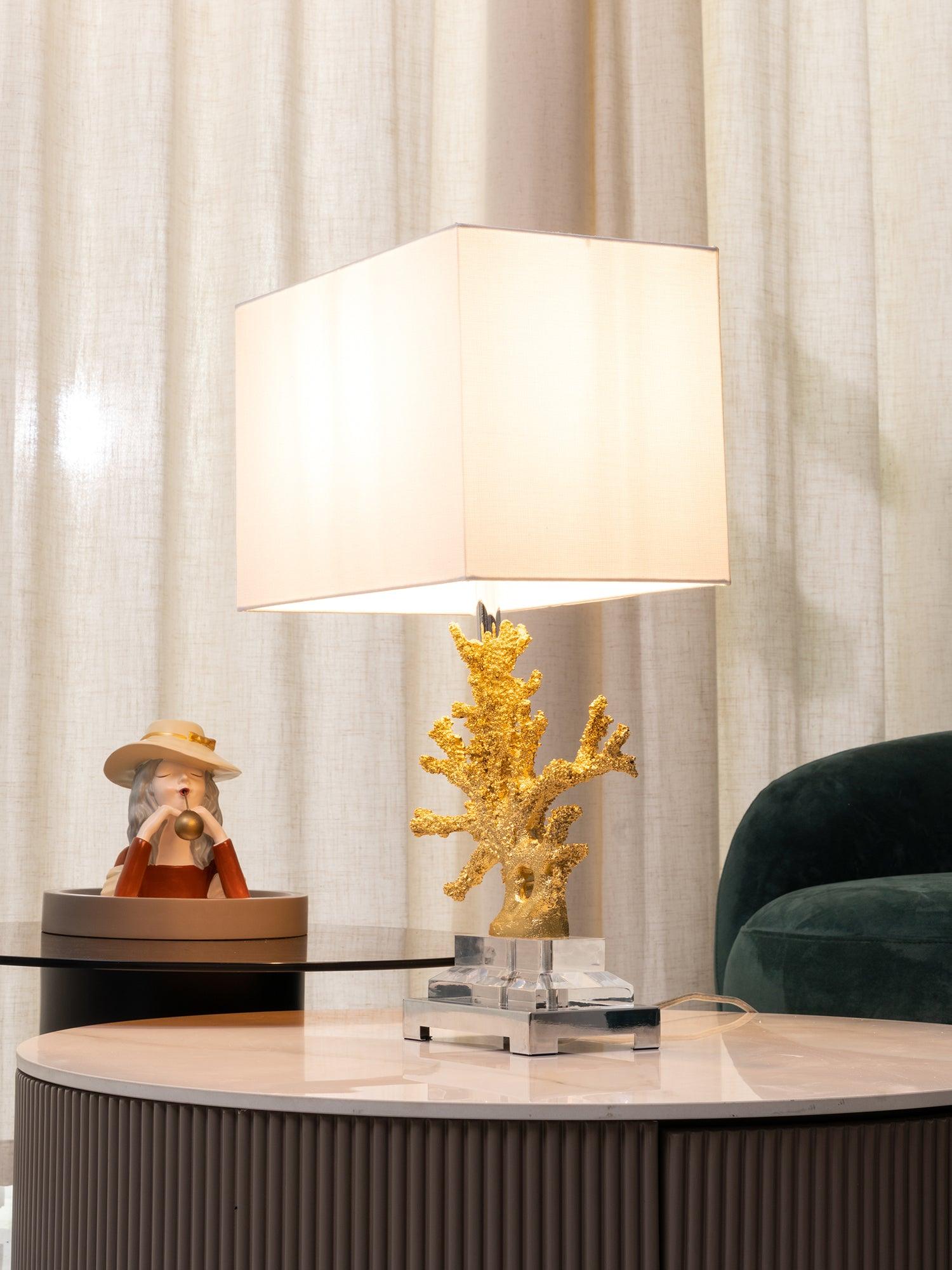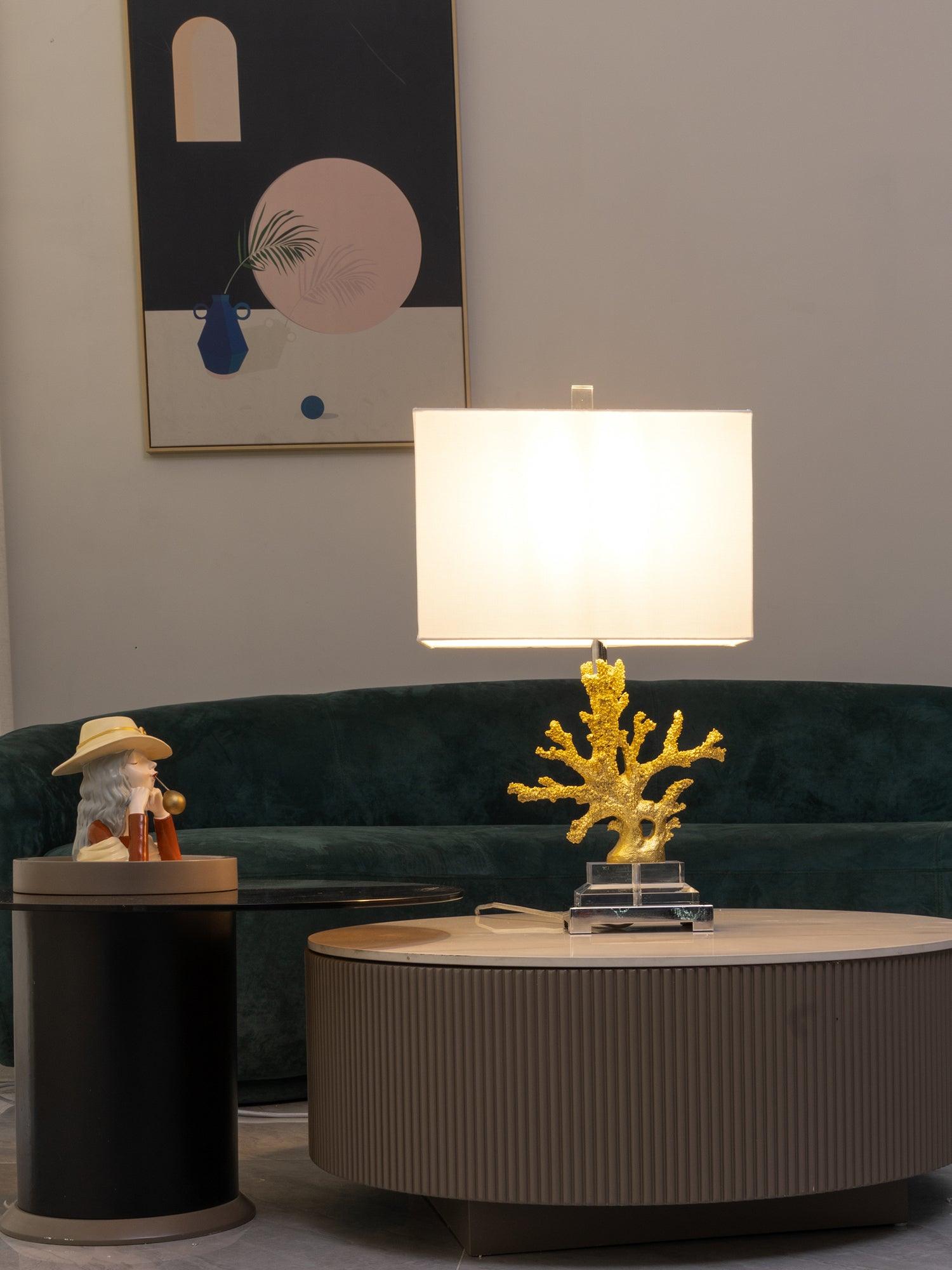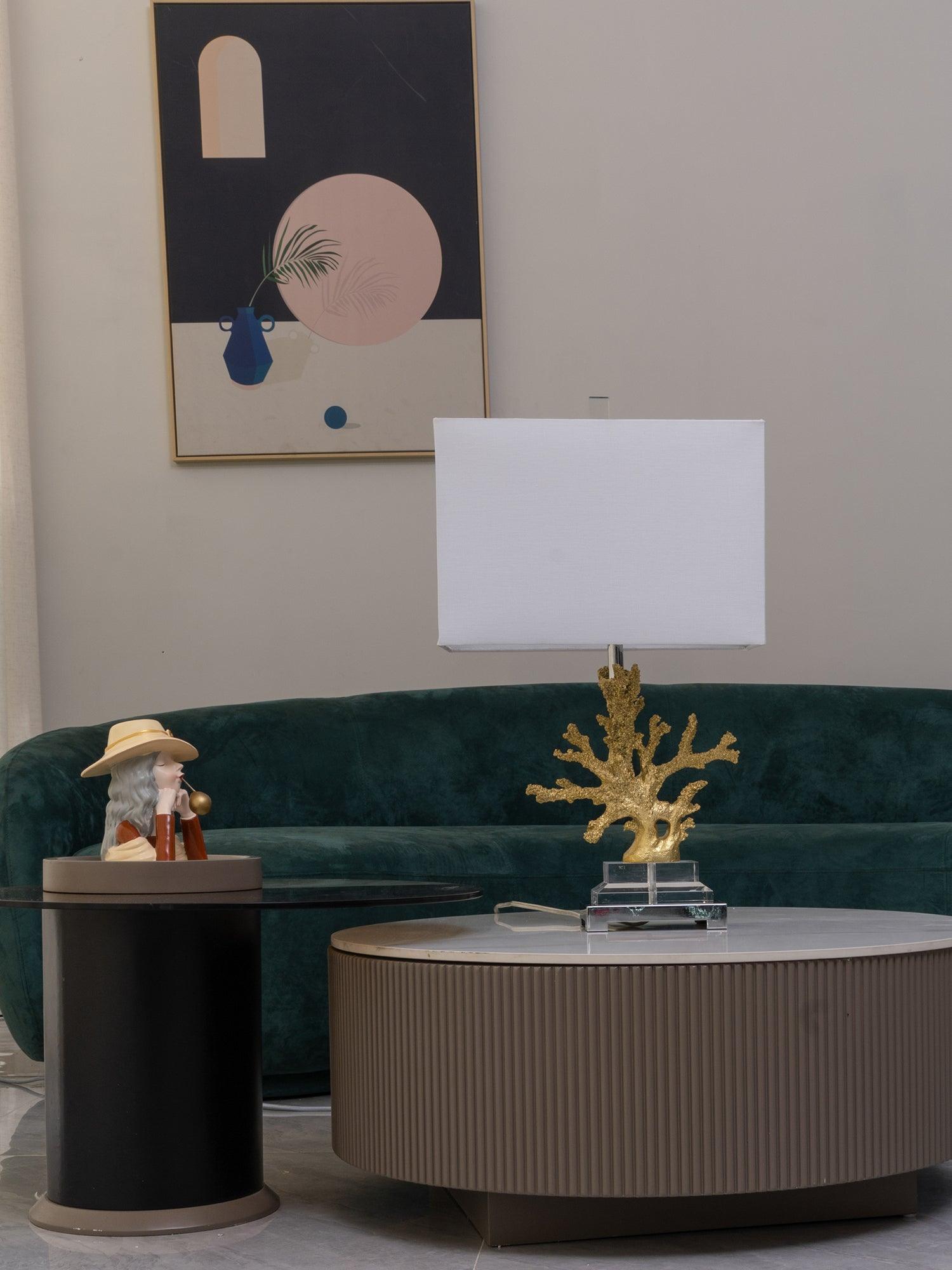 遙遠的地方就在您的指尖。這款以沿海生活為靈感的珊瑚檯燈採用珊瑚主體設計,安裝在拉絲黃銅和水晶底座上。精緻的珊瑚主體採用優雅的金色表面處理。頂部是矩形圓角精裝燈罩 - 黑色或白色亞麻布,帶有對比色金箔紙襯裡。如此逼真,如果你仔細聽,你可能會聽到海浪的轟鳴聲。