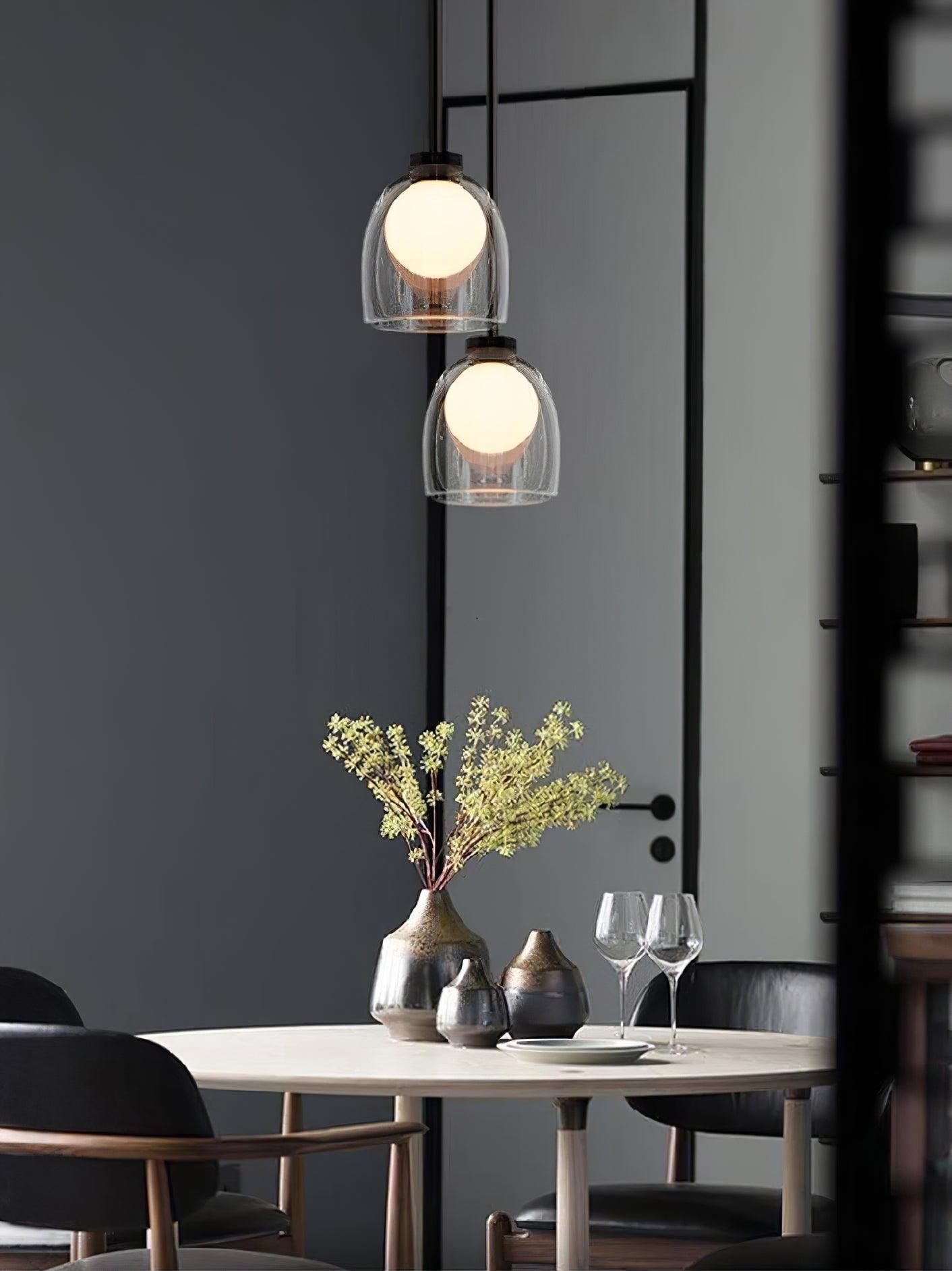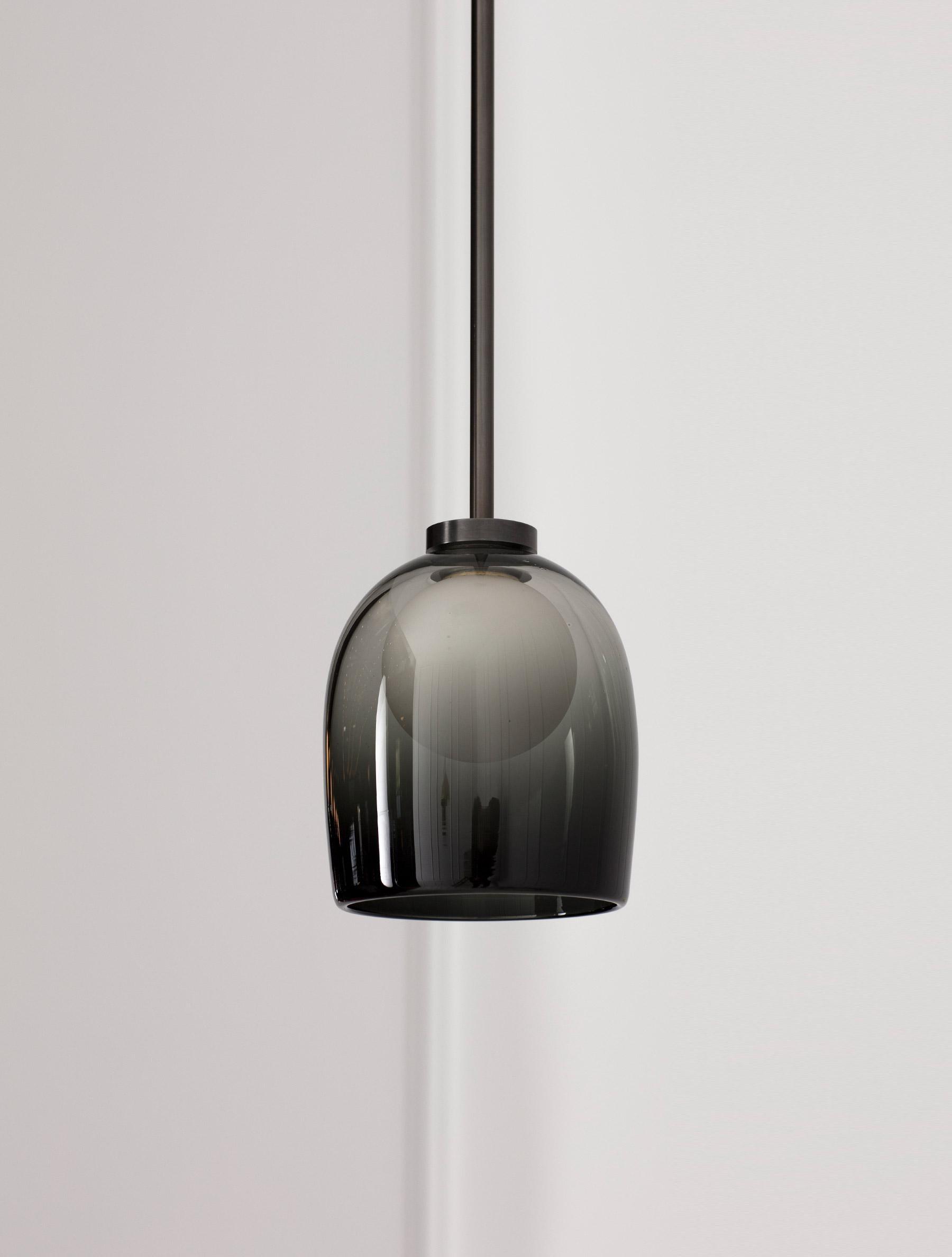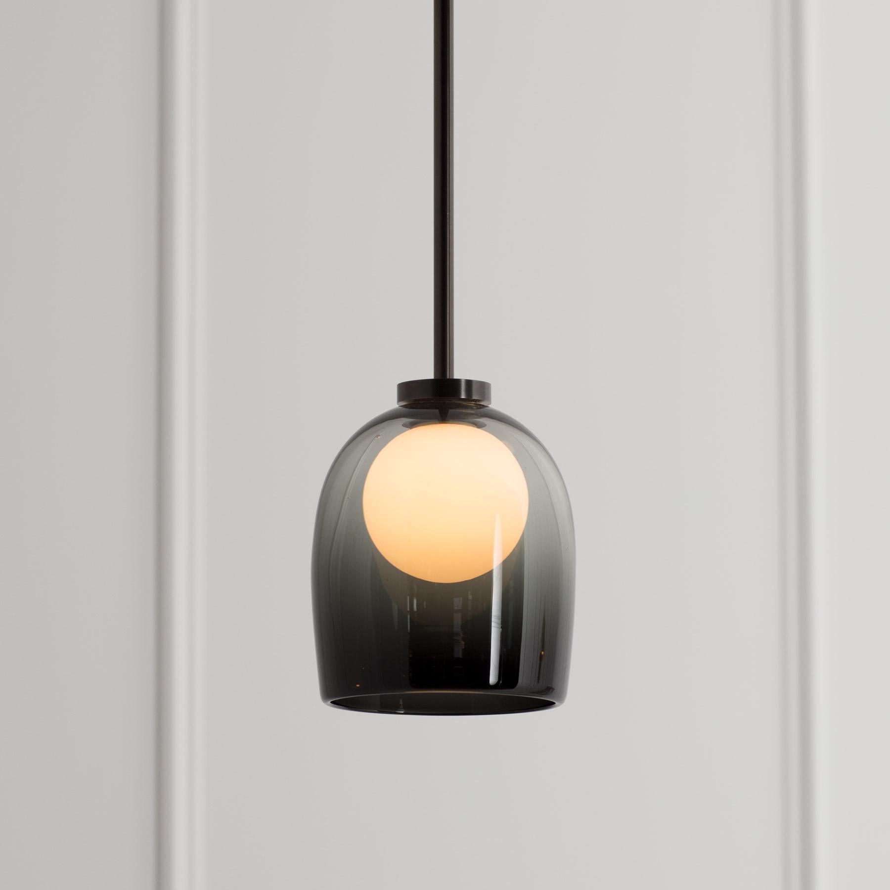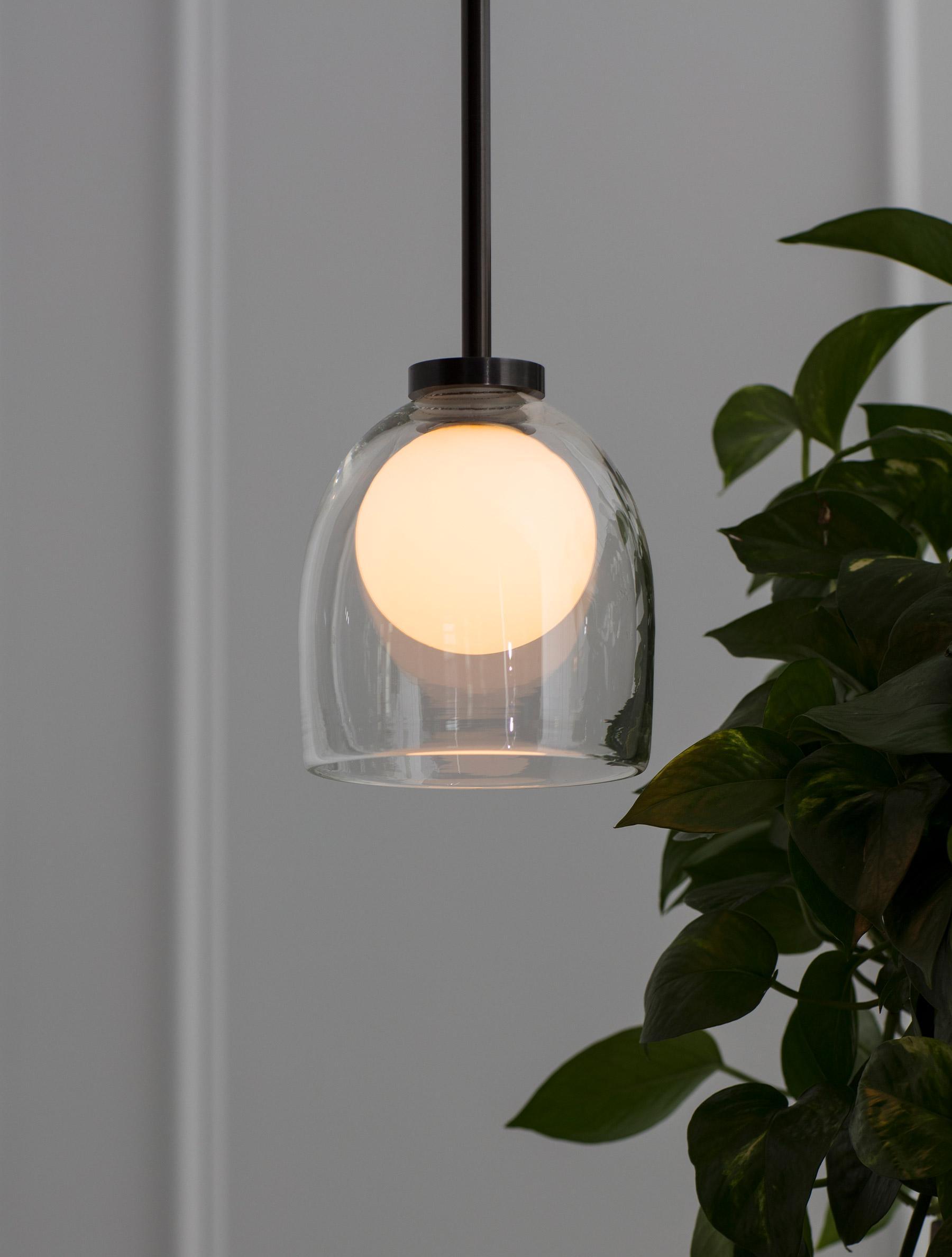 簡單而神秘,一個玻璃球體似乎漂浮在一個手工吹製的鈴鐺中。