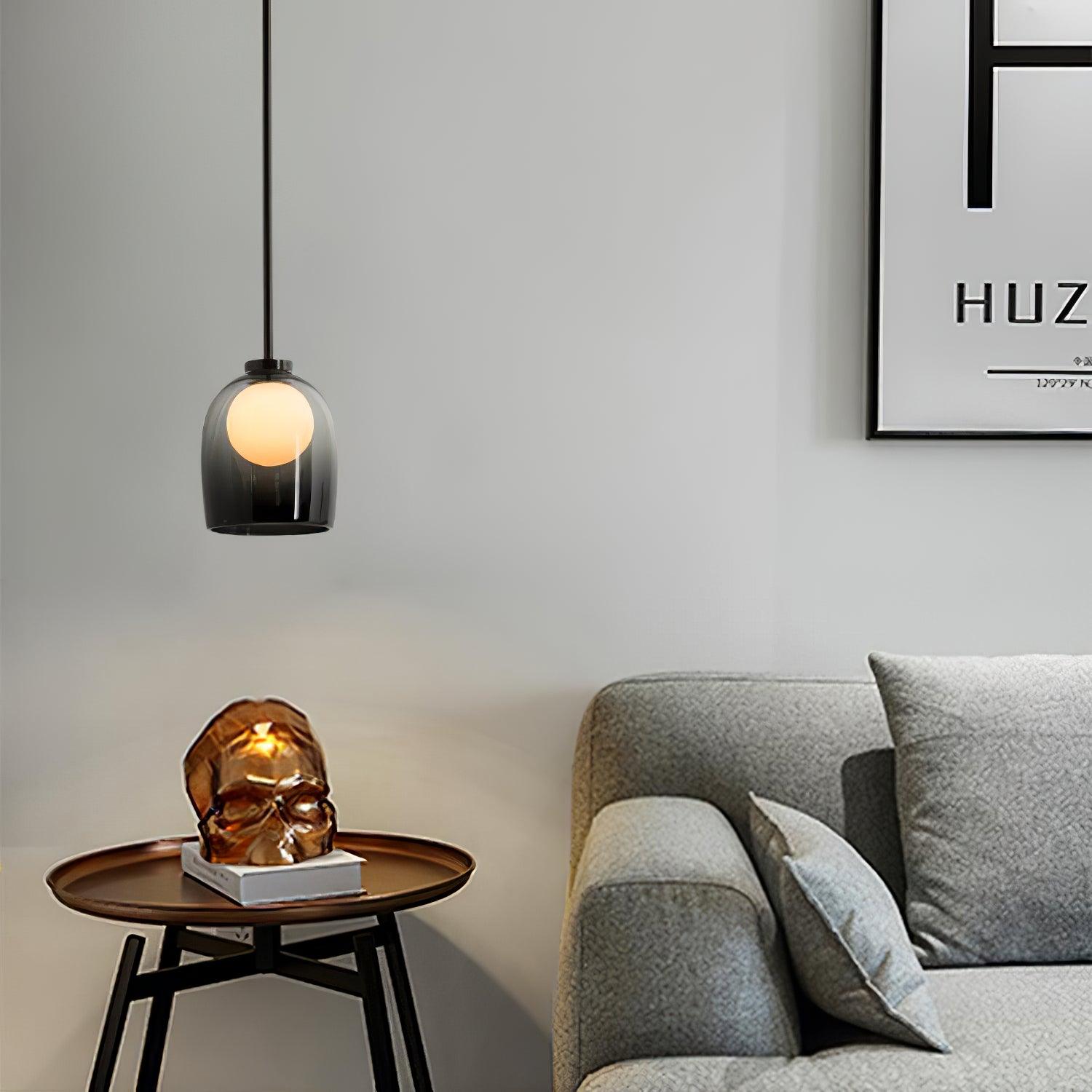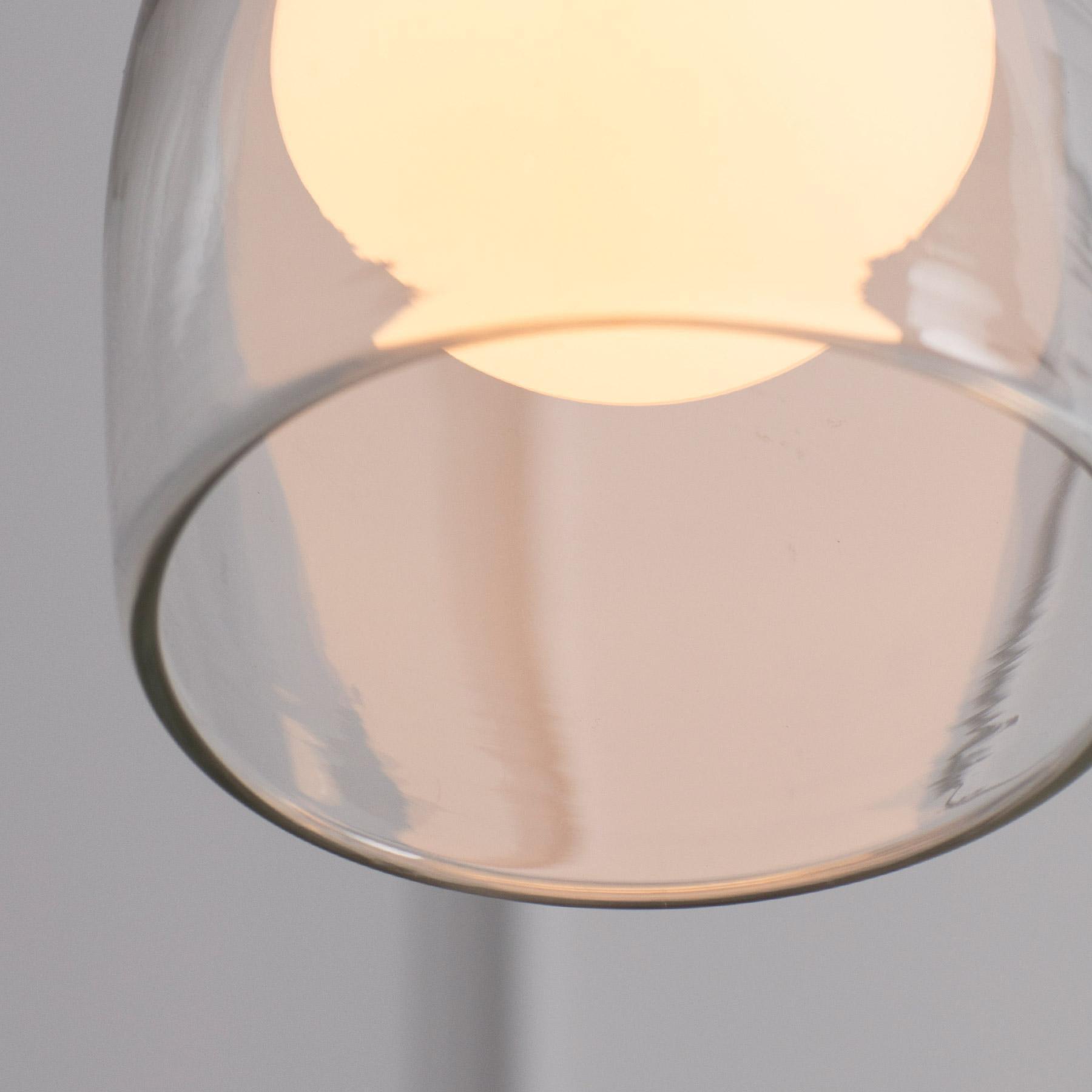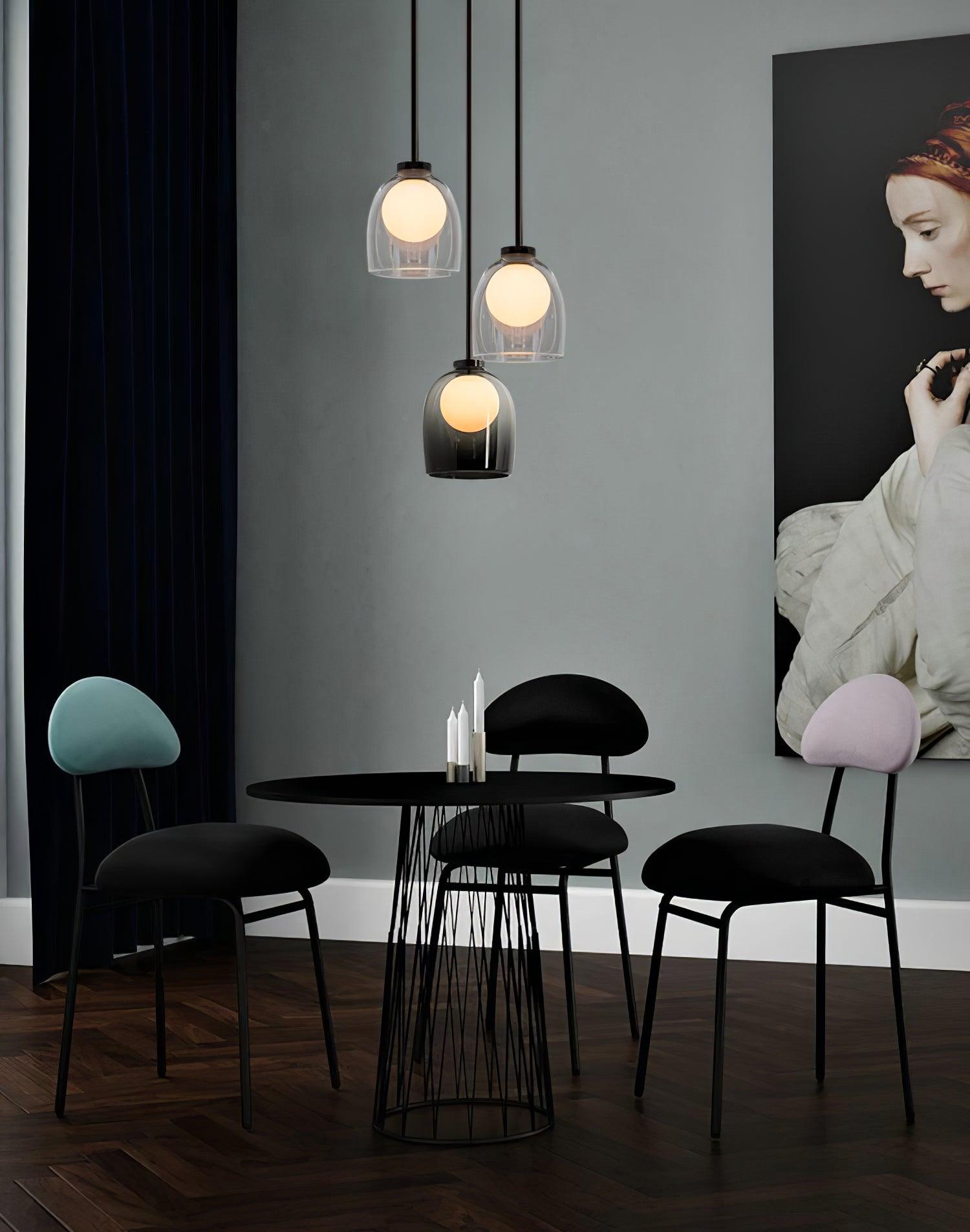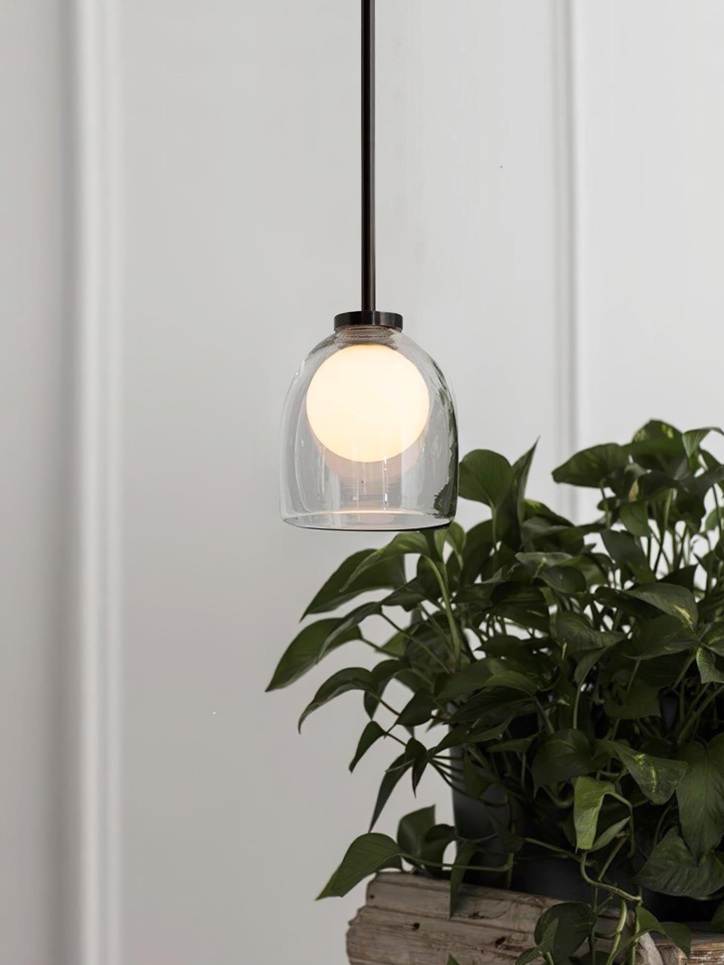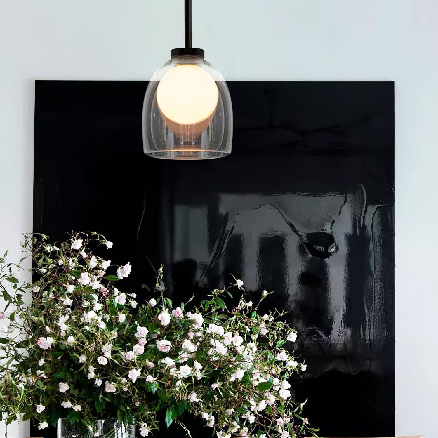簡單而神秘,一個玻璃球體似乎漂浮在一個手工吹製的鈴鐺中。