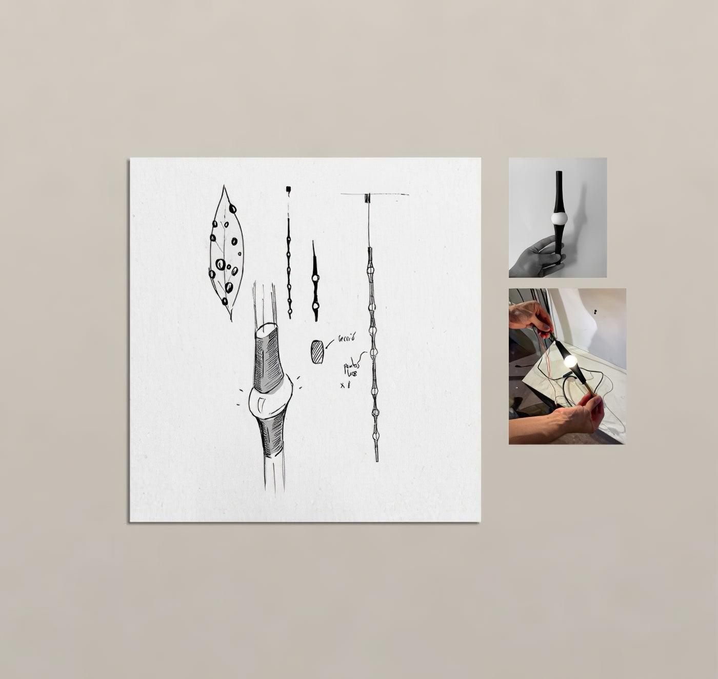 露水探索光和短暫的美:像露珠或春雨。由不同距離的金屬件連接的橢圓形光點線形成的有機線性配置。這盞燈具有強大的技術特點,但仍然散發著藝術氣息。露水有垂直和水平兩種變化,使任何組合和角度成為可能。由於其精緻和多功能性,它適合任何類型的空間,作為大廳、樓梯間、門廳等的複合燈。