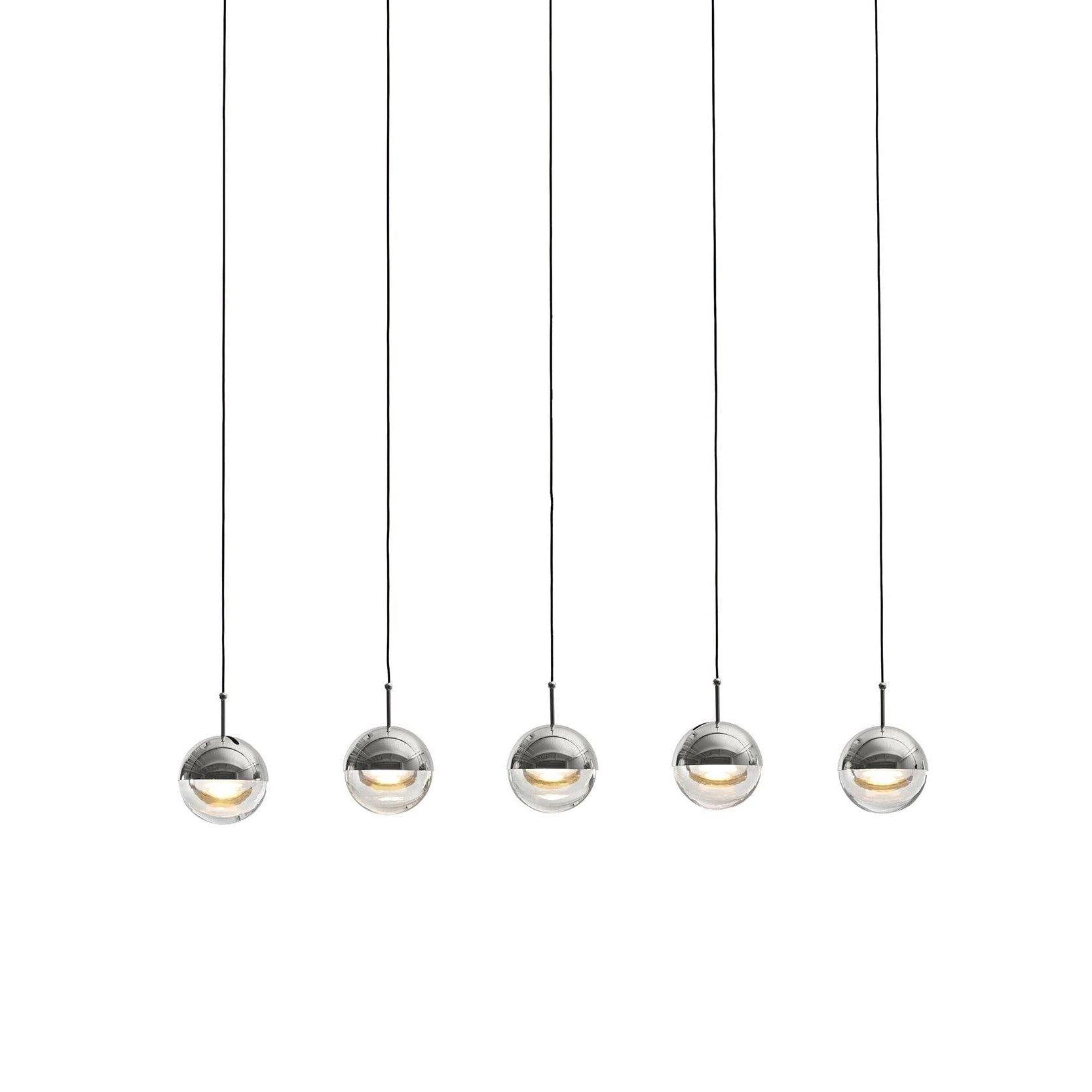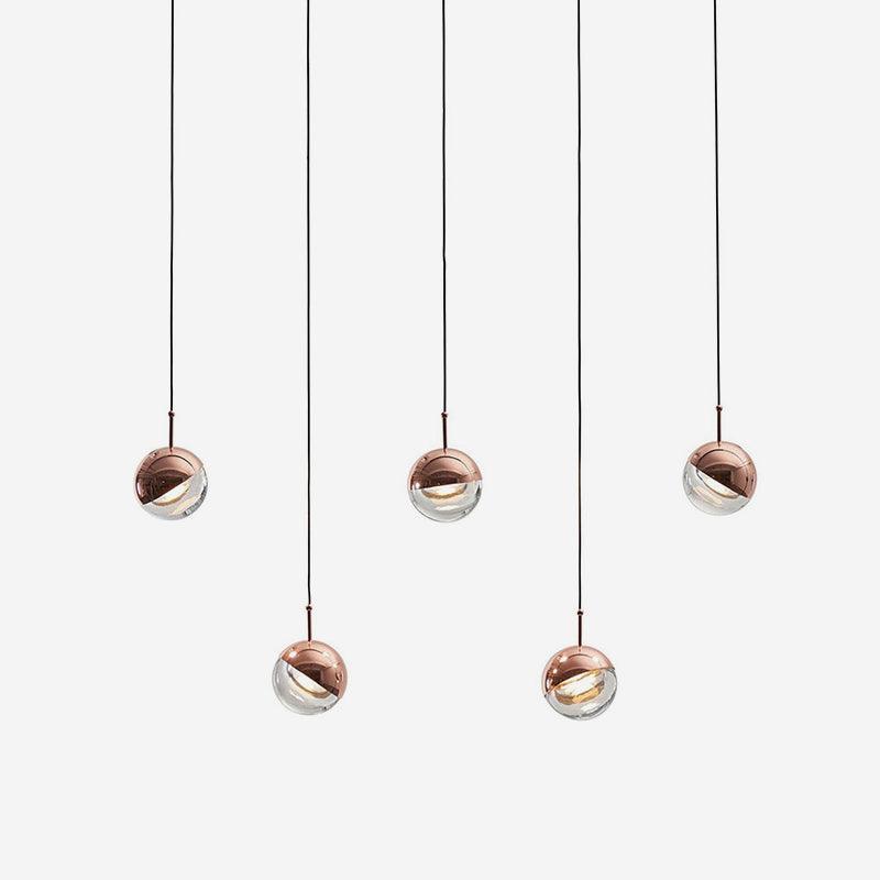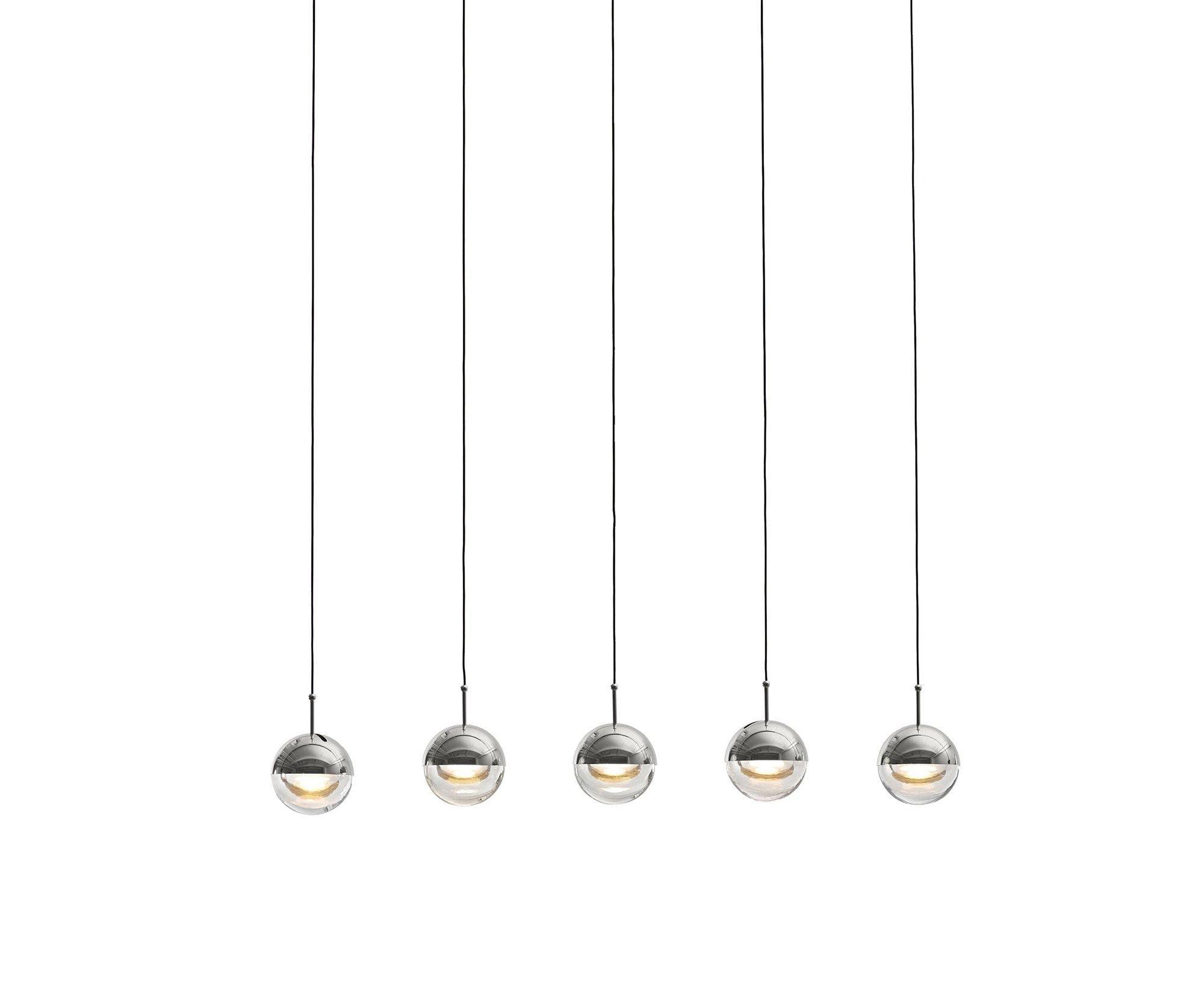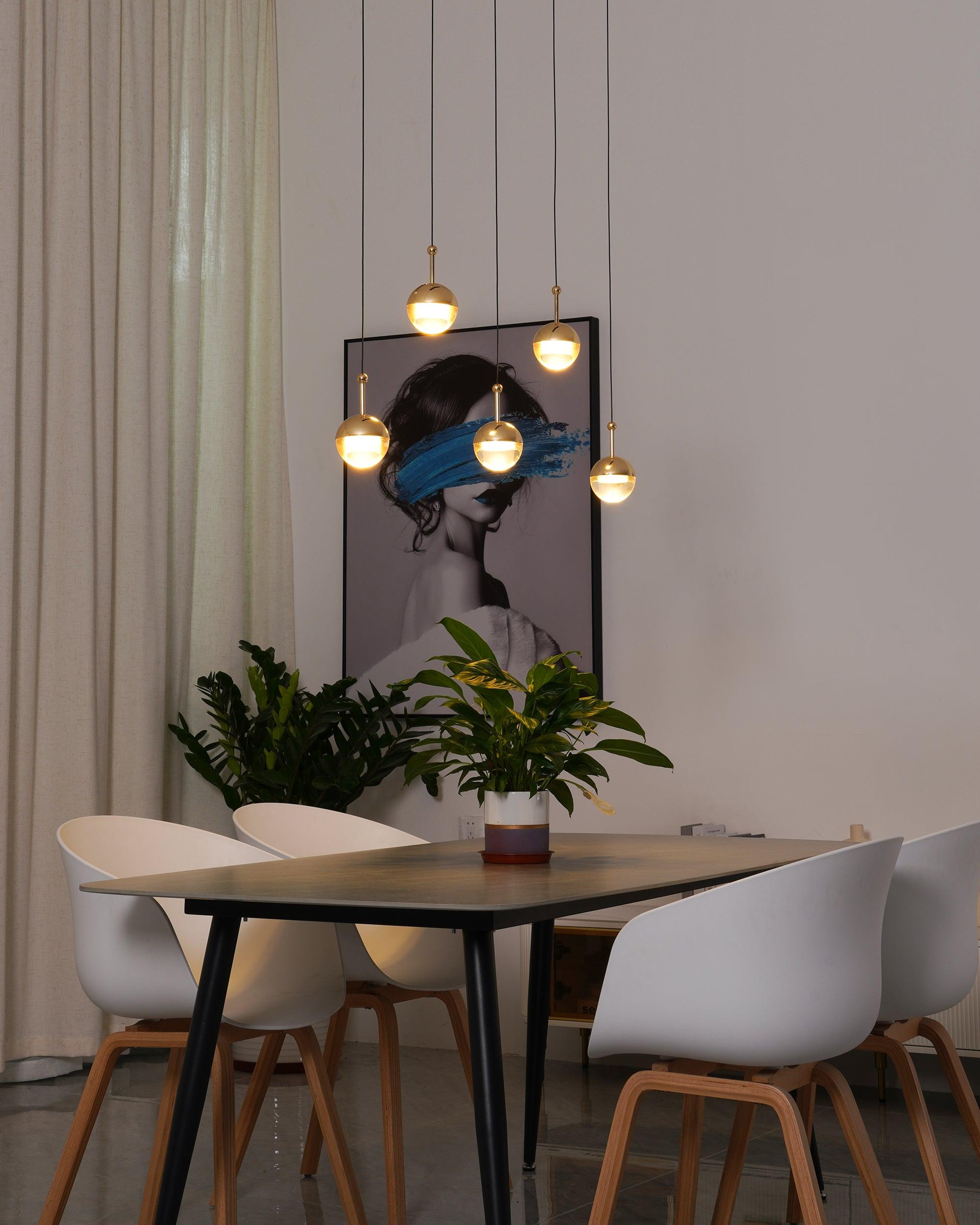 Dora LED 吊燈是一款受設計師常婷婷童年影響的吊燈。時尚的球體由鋼和玻璃製成,半透明半不透明。這種對比使雙方可以平等地互補。