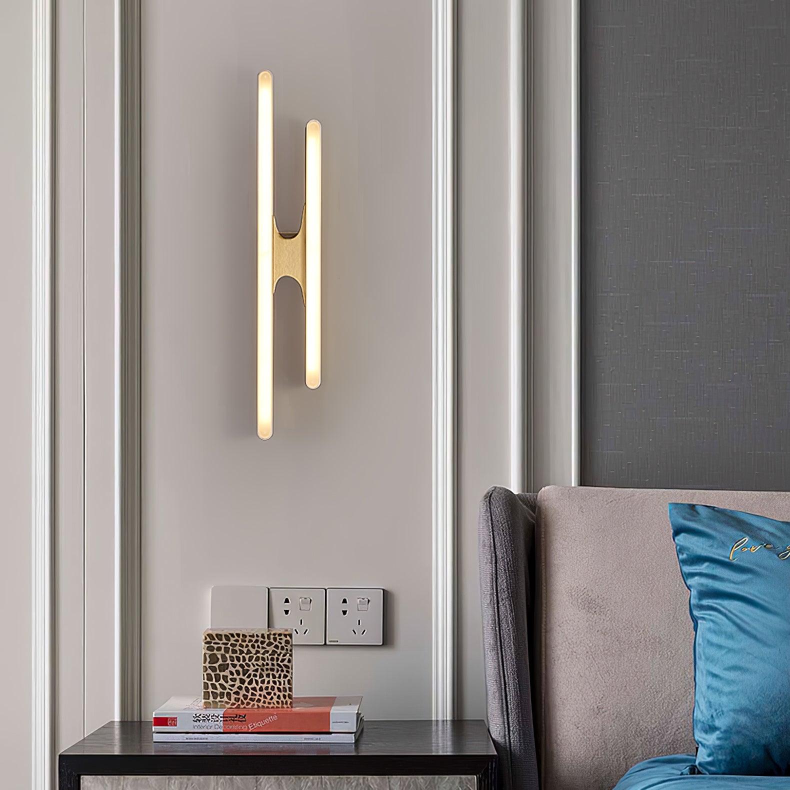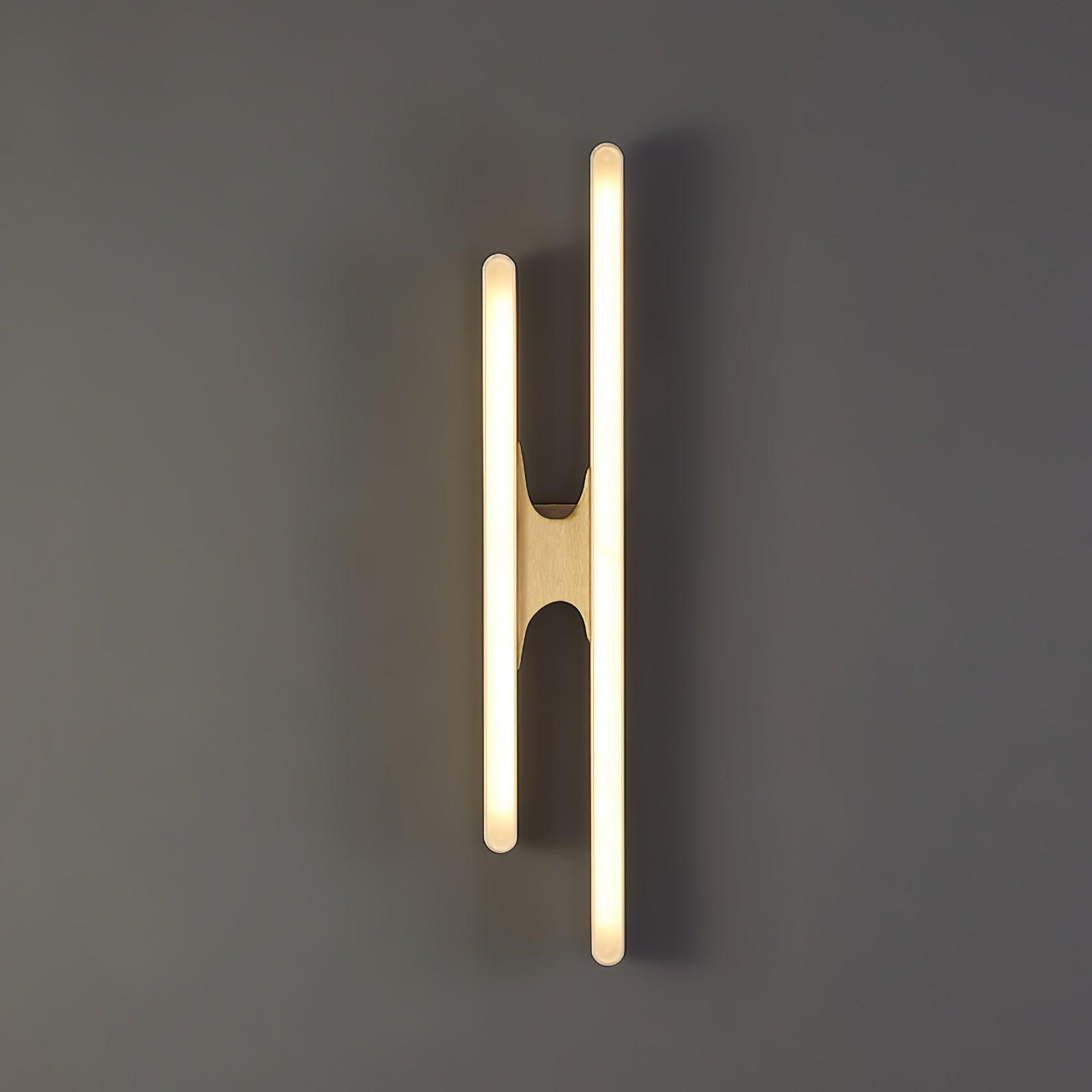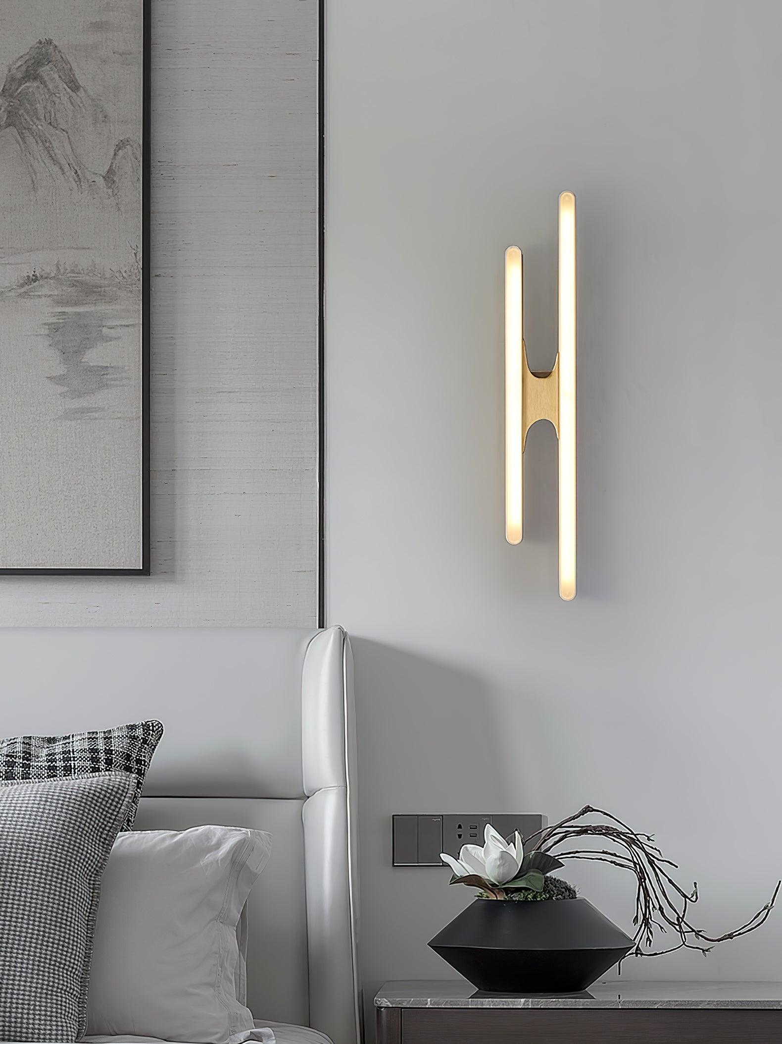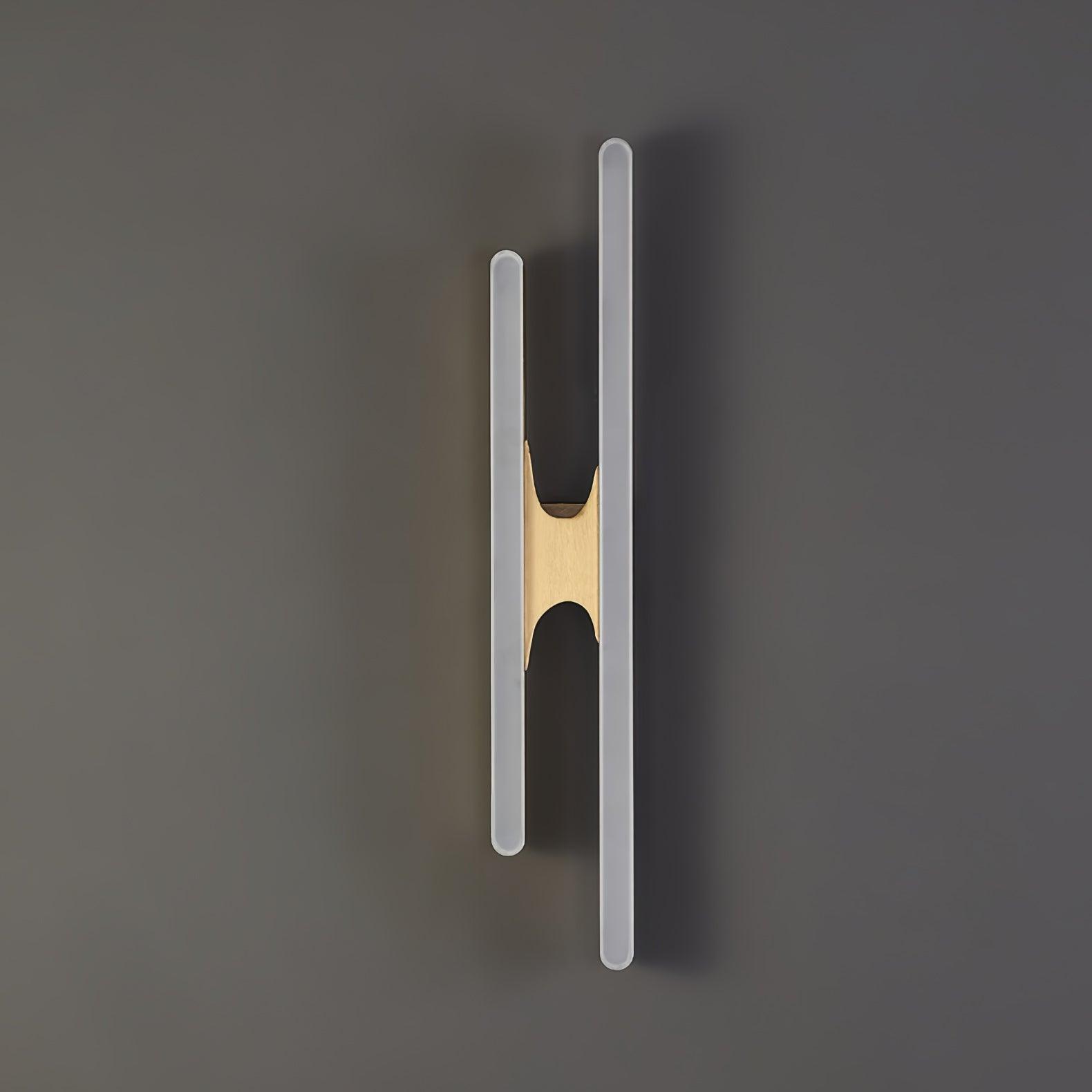 時尚別緻的外觀 2 燈壁燈。從矩形底座的兩側對稱連接分佈的1短1長管結構。亞克力管就在燈的中央。酷炫的設計使它不僅是一盞燈,也是不亮燈時的裝飾品。