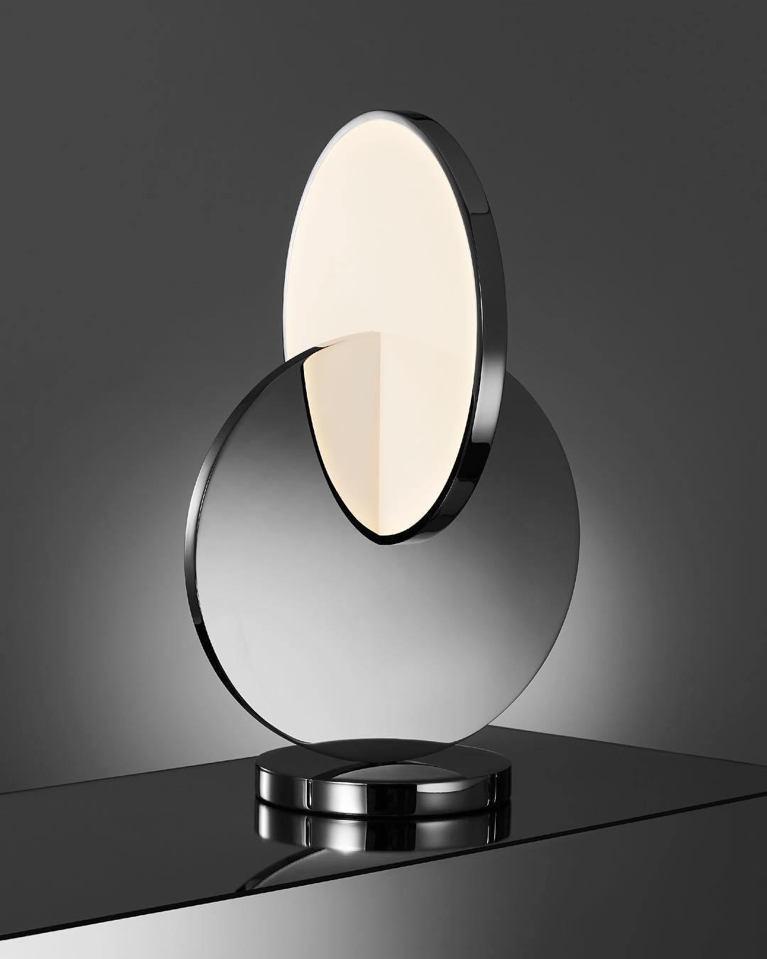 Eclipse 吊墜的名字和靈感都來自天上。鏡面拋光的鉻和亞克力圓盤相互作用、解剖和模糊,既遮蔽又同時向觀眾揭示其照明。 Eclipse 可作為獨特的吊燈、分層枝形吊燈和檯燈提供,採用拋光鉻和拋光金色飾面。