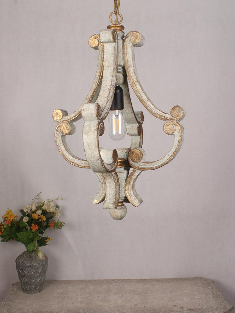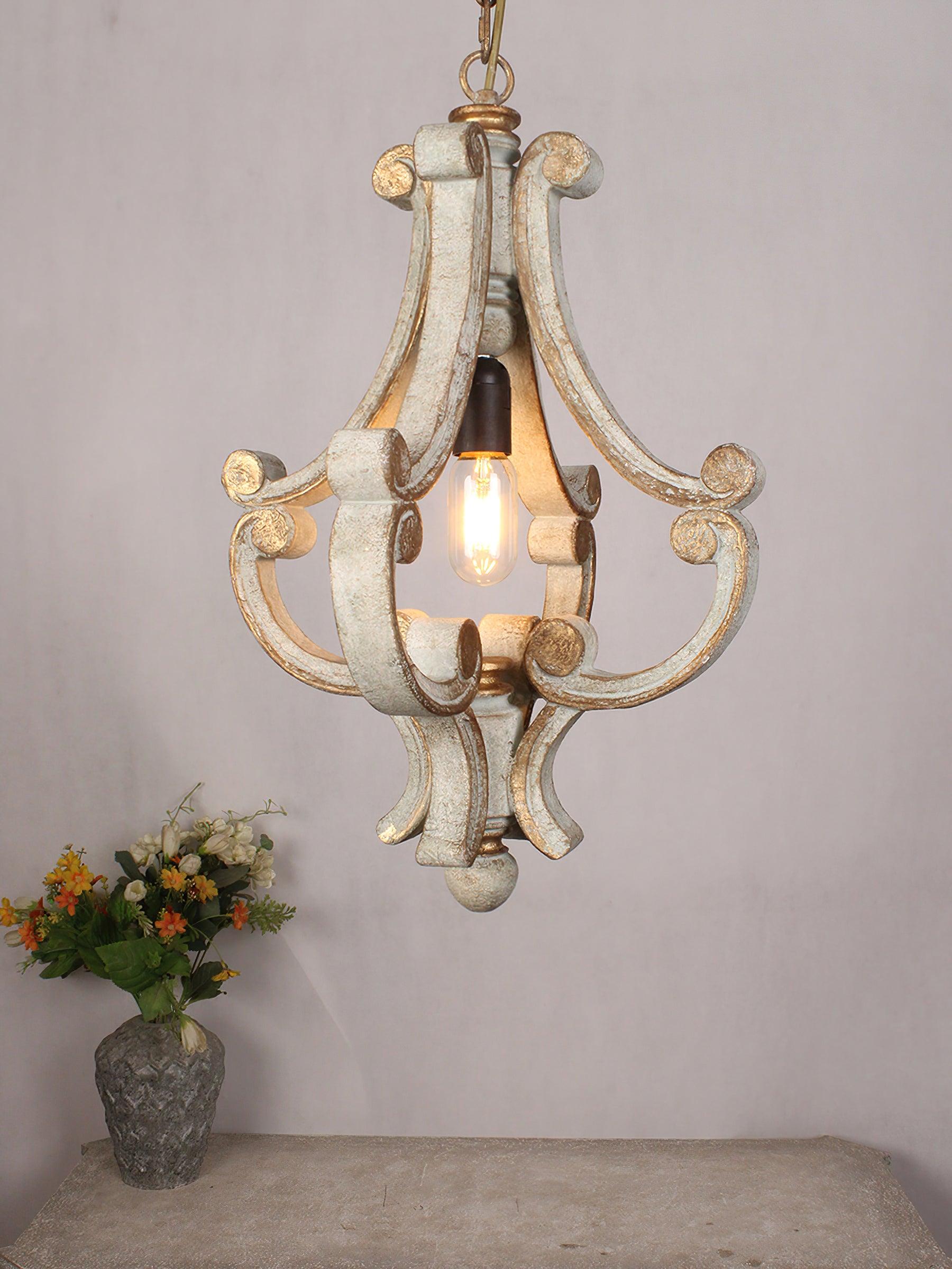 這款法國鄉村別緻的枝形吊燈既是一件藝術品,又是一件照明燈具,它提升了您家中從餐廳到入口通道的任何房間的外觀。這款引人注目的燈籠設計採用金屬和木材製成,並具有圍繞中心燈泡呈扇形展開的華麗 C 形裝飾。