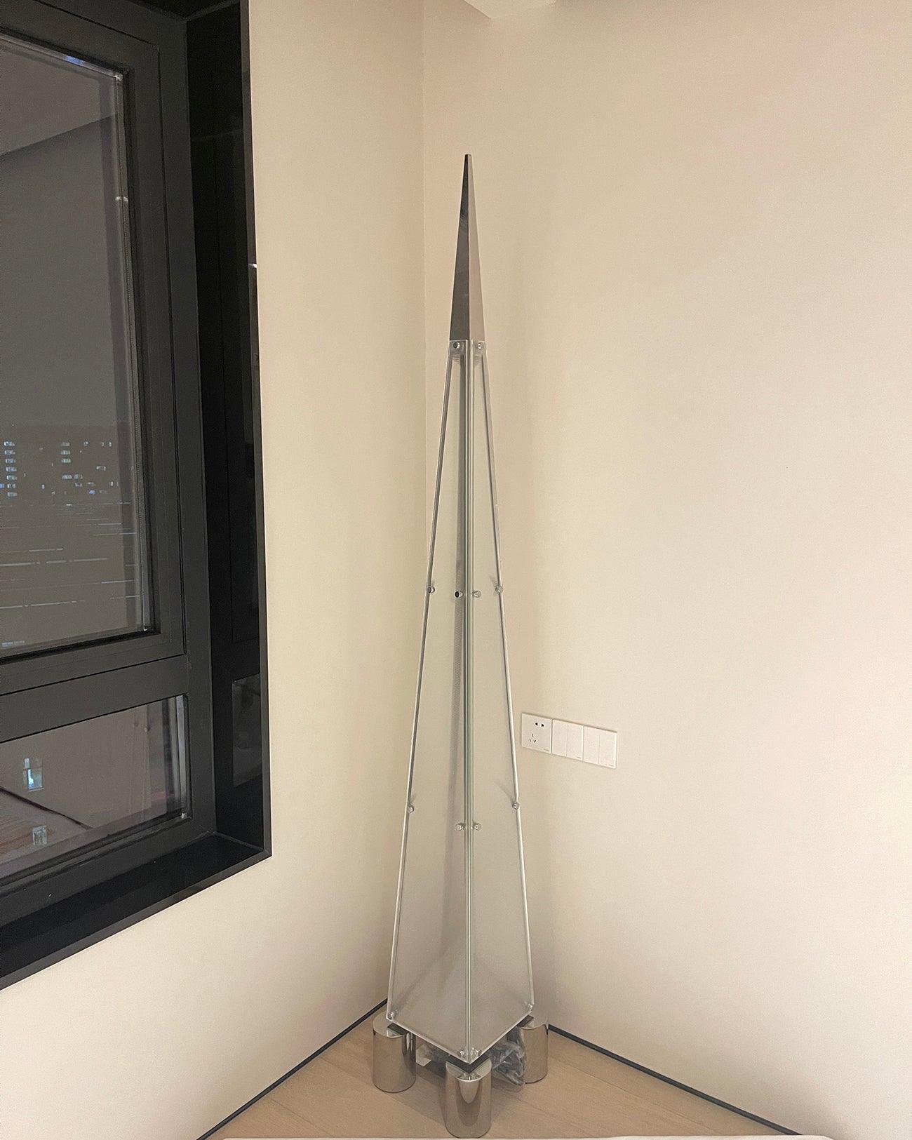 “Fragment”落地燈採用壓花玻璃,可以扭曲光線方向,創造特殊效果,靈感來自西方哥特式教堂的原型和教堂彩色窗戶營造的神秘氛圍,將建築語言轉化為他的燈飾系列'分段'。