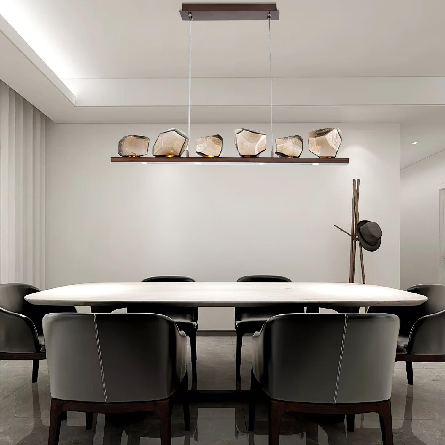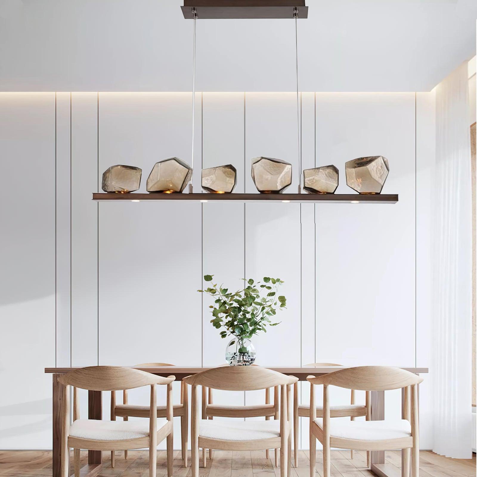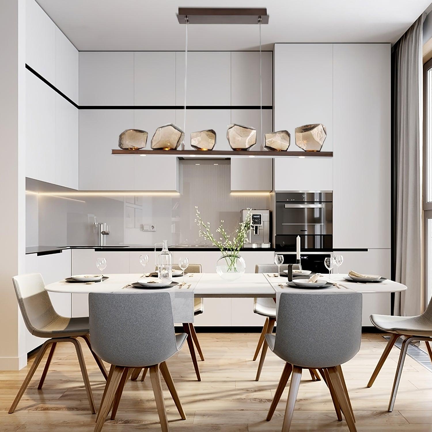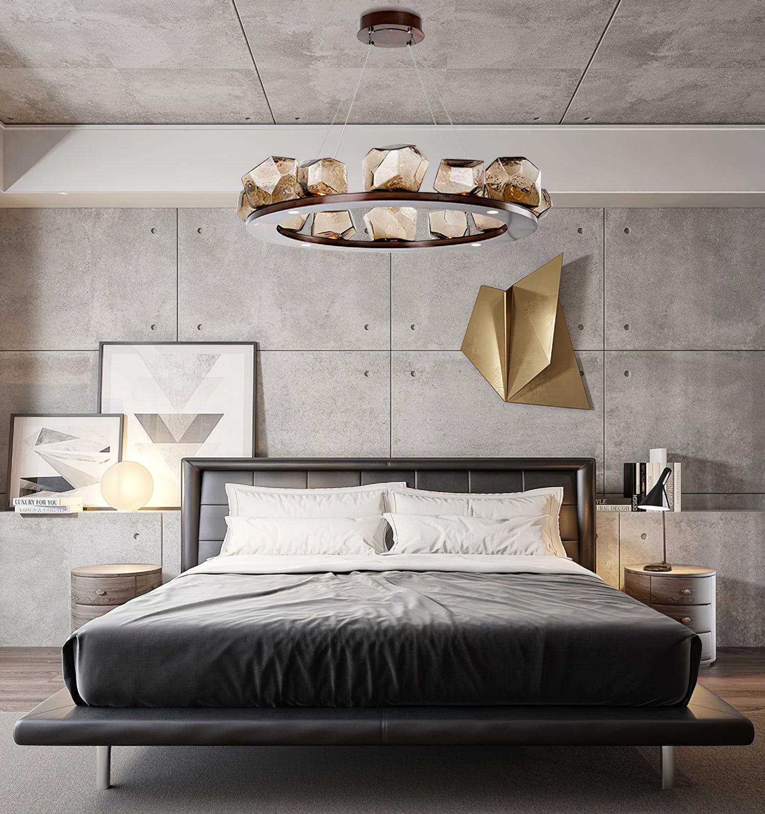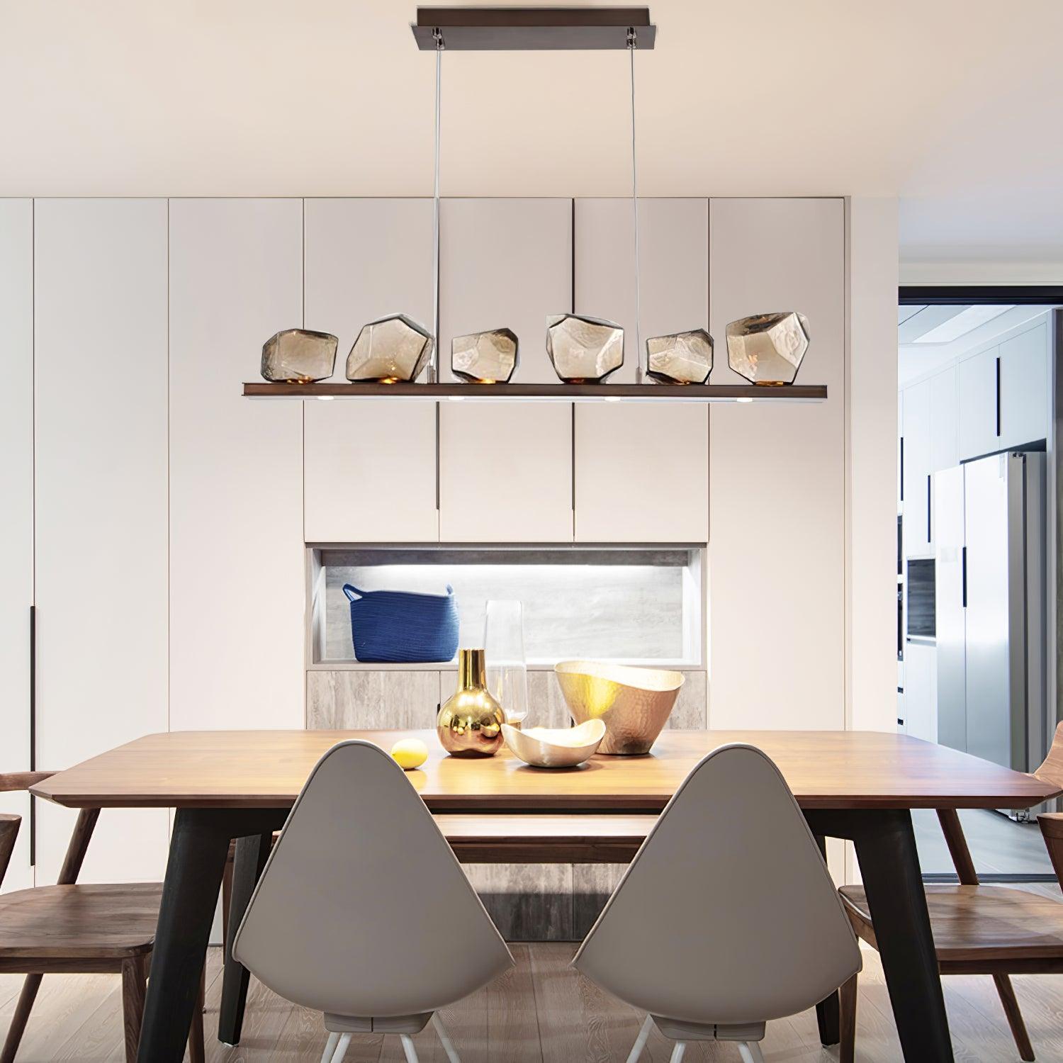 這款引人注目的兩層環形吊燈在光滑的圓形金屬底座上採用閃閃發光的 LED 燈手工吹製玻璃“寶石”。每個玻璃燈罩均由 vakkerlighting 工匠精心製作。筒燈提供額外的工作照明。