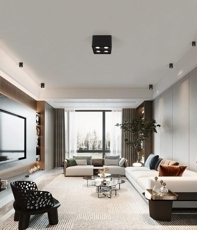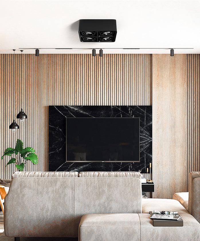 它由鋼製成的棱角分明的設計直接位於天花板上,並設置了謹慎的口音。 Giyan 明裝燈可輕鬆融入公寓的室內風格,或適用於時尚的商店照明。