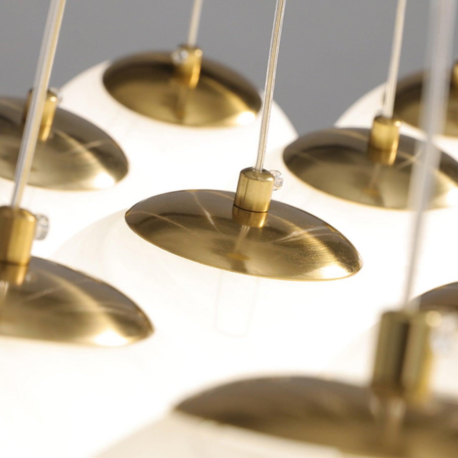 這盞精緻的枝形吊燈有一個金色的金屬燈座。它配有白色磨砂玻璃球形燈罩。可調節的吊線連接使這款燈具適合大多數天花板高度。Glass 07R 的名稱與其設計一樣簡單。直徑為 150 毫米的玻璃球提供溫暖、均勻的光芒。這種燈具的簡單性使其應用廣泛。