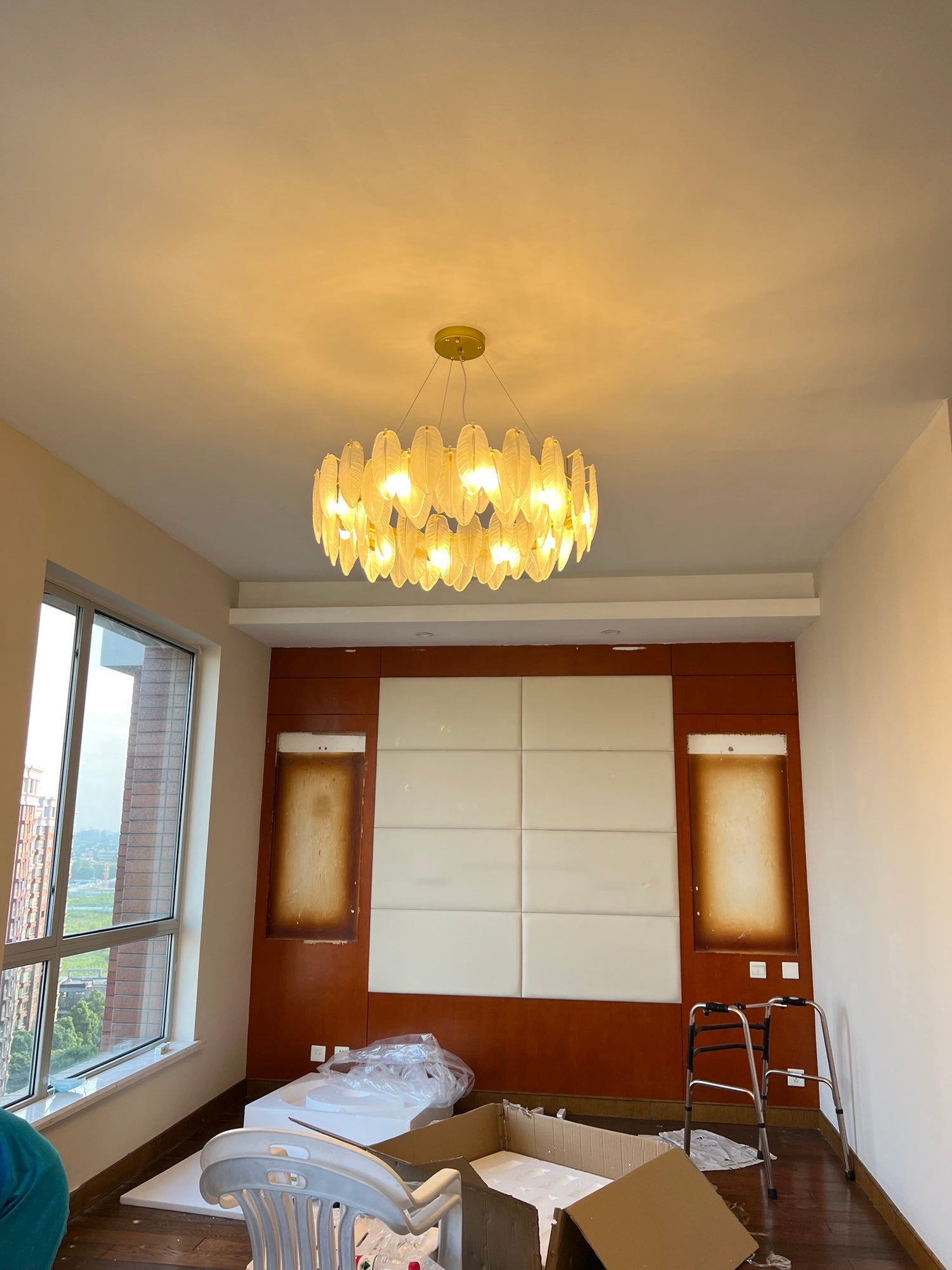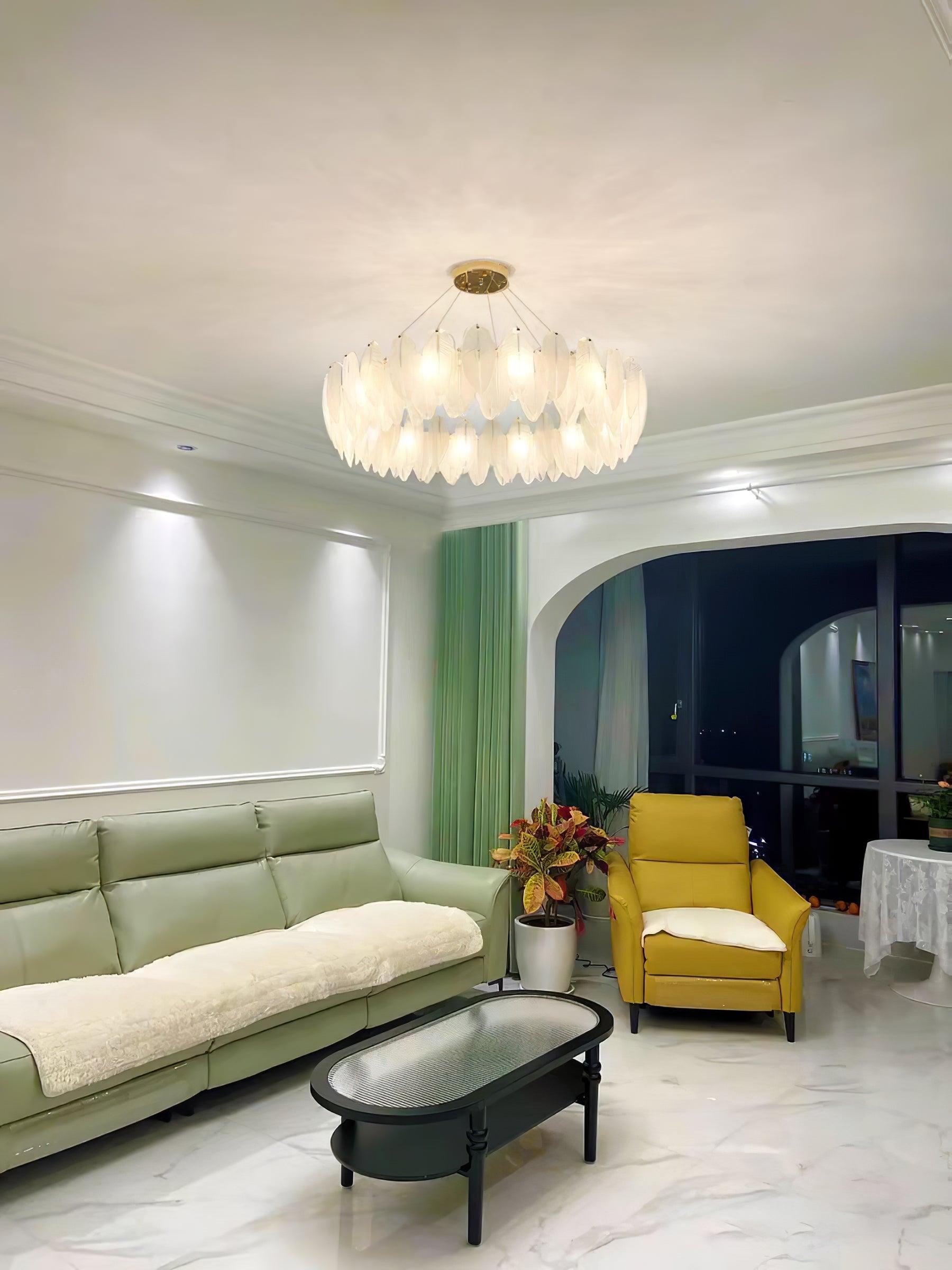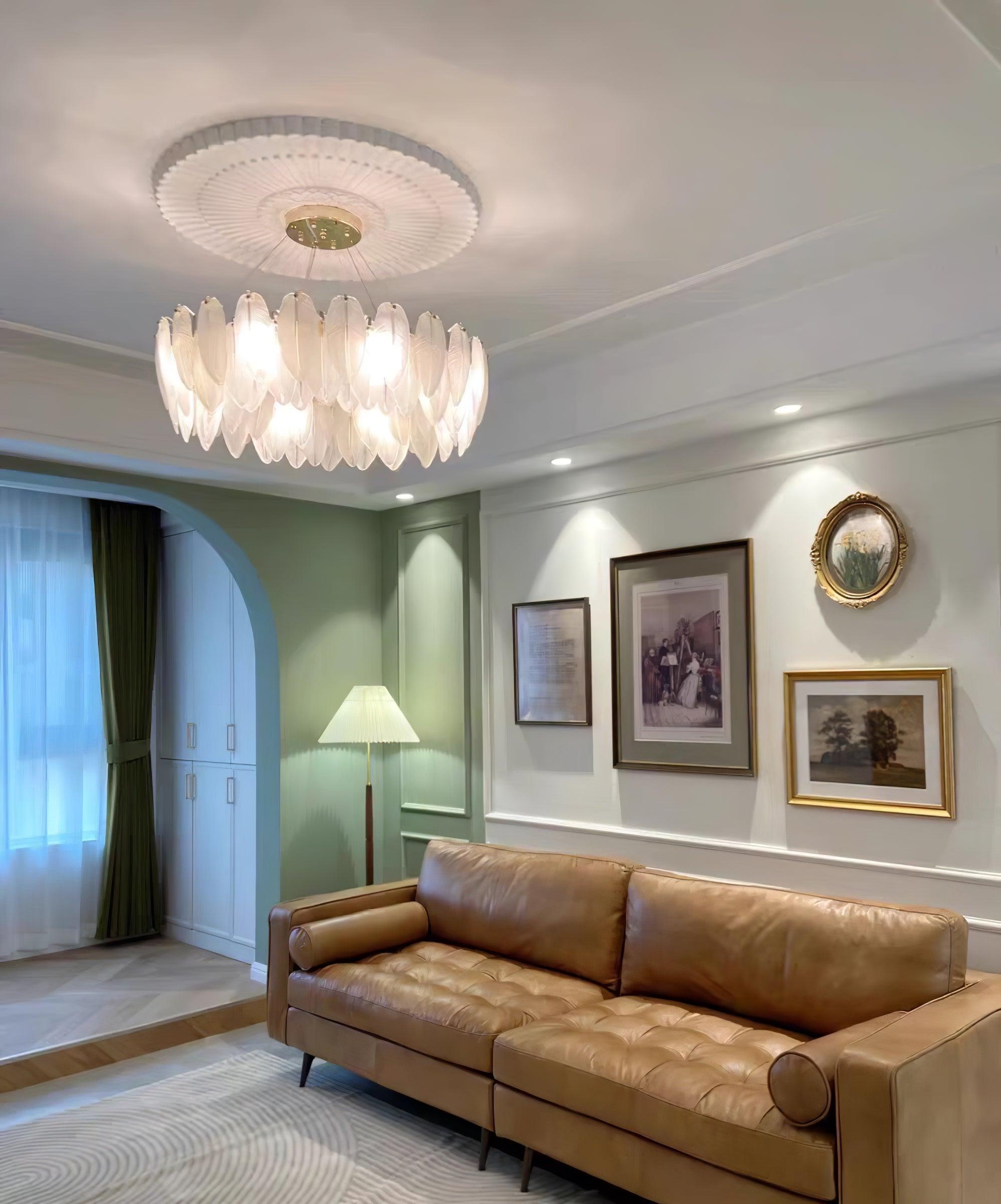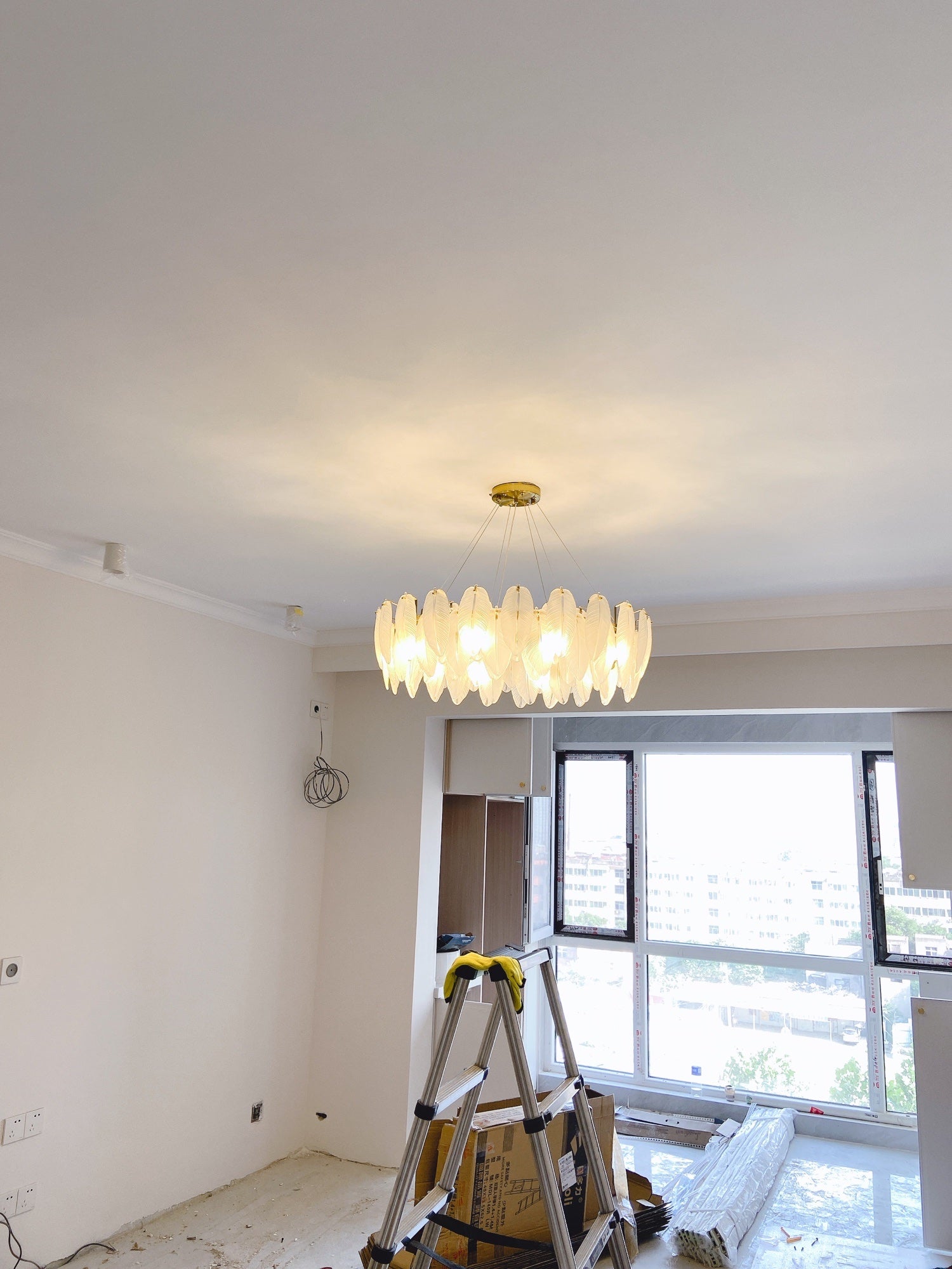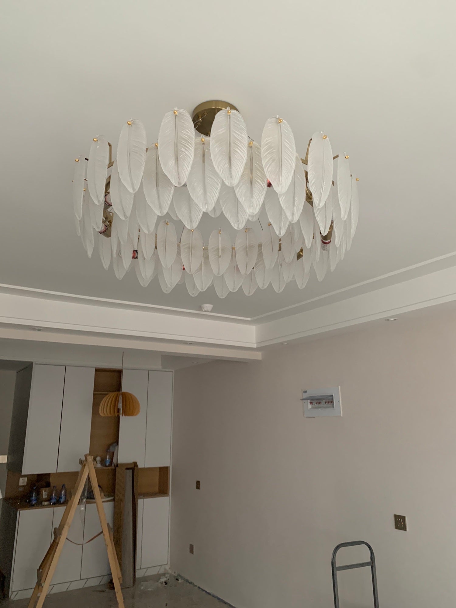 這款迷人的圓形多層磨砂玻璃羽毛吊燈成功地將實用與優雅結合在一起。而這款產品的設計讓自己整體上更具有後現代感。點亮時,燈光從圓形層疊的磨砂玻璃羽毛燈罩中散發出來,營造出浪漫的氛圍。可調節電纜使這款產品非常適合您的房子。這款吊燈就像一朵漂浮的羽毛雲,為您的房子增添了簡潔和優雅的氣息。