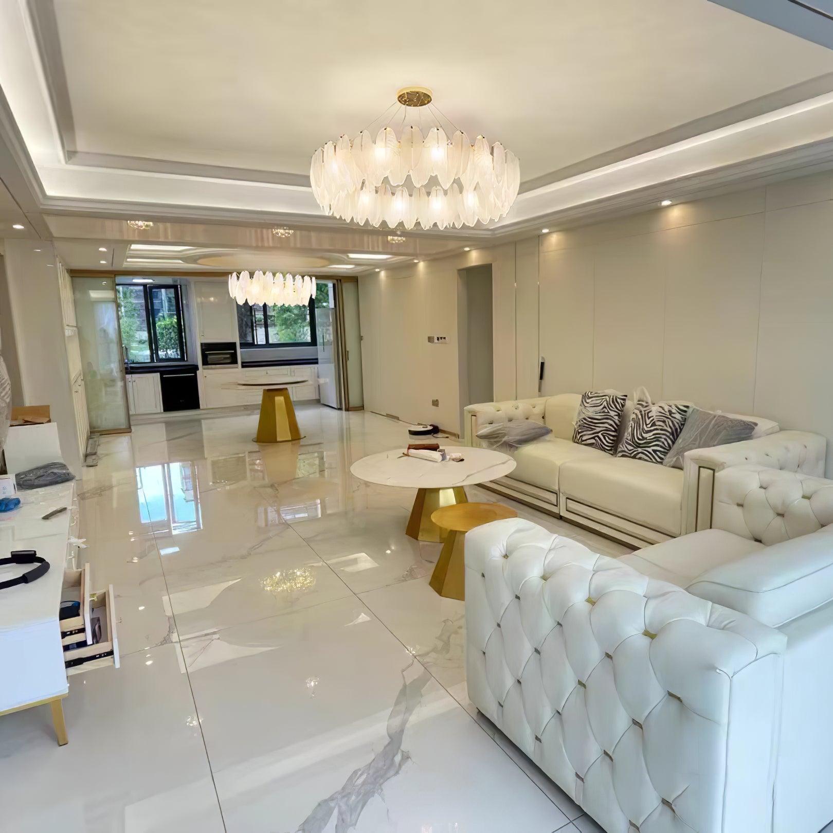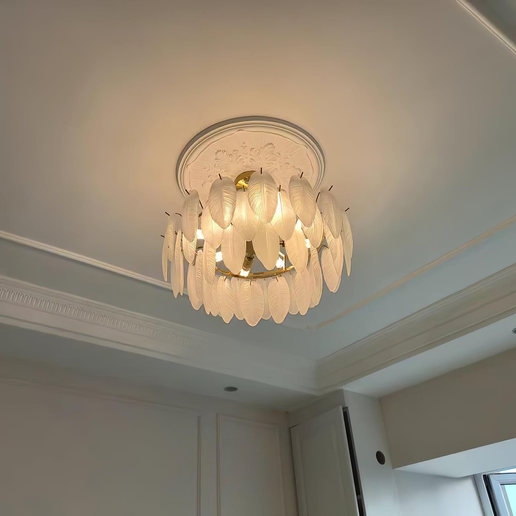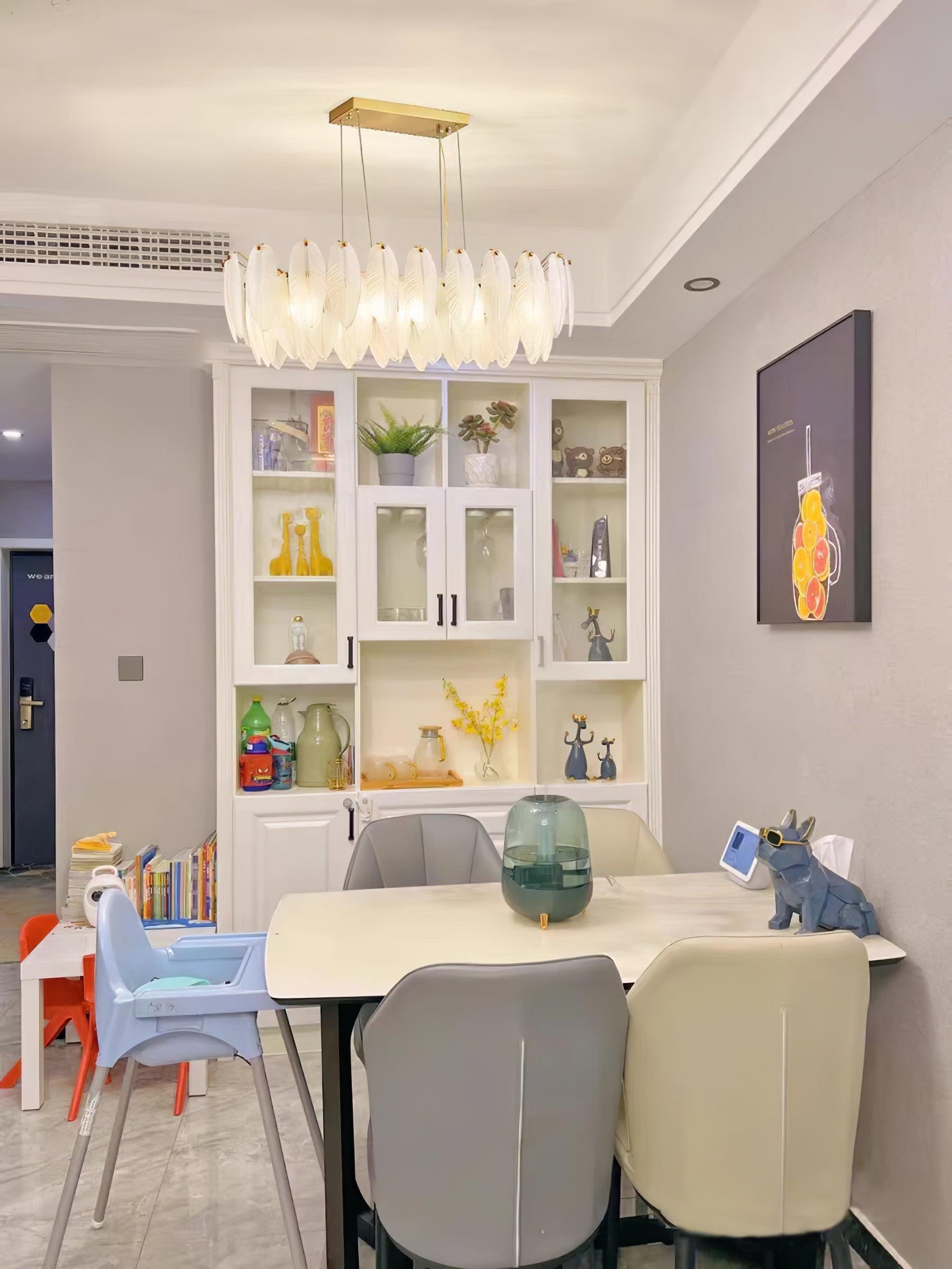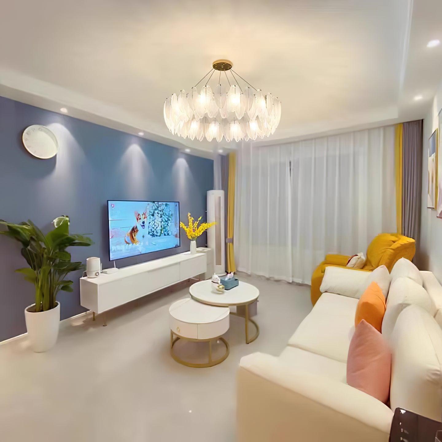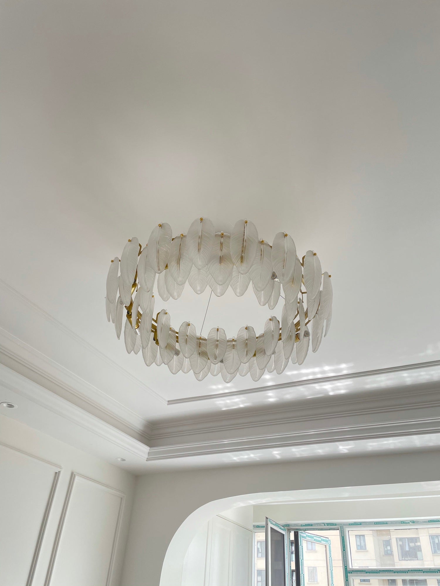 這款迷人的圓形多層磨砂玻璃羽毛吊燈成功地將實用與優雅結合在一起。而這款產品的設計讓自己整體上更具有後現代感。點亮時,燈光從圓形層疊的磨砂玻璃羽毛燈罩中散發出來,營造出浪漫的氛圍。可調節電纜使這款產品非常適合您的房子。這款吊燈就像一朵漂浮的羽毛雲,為您的房子增添了簡潔和優雅的氣息。