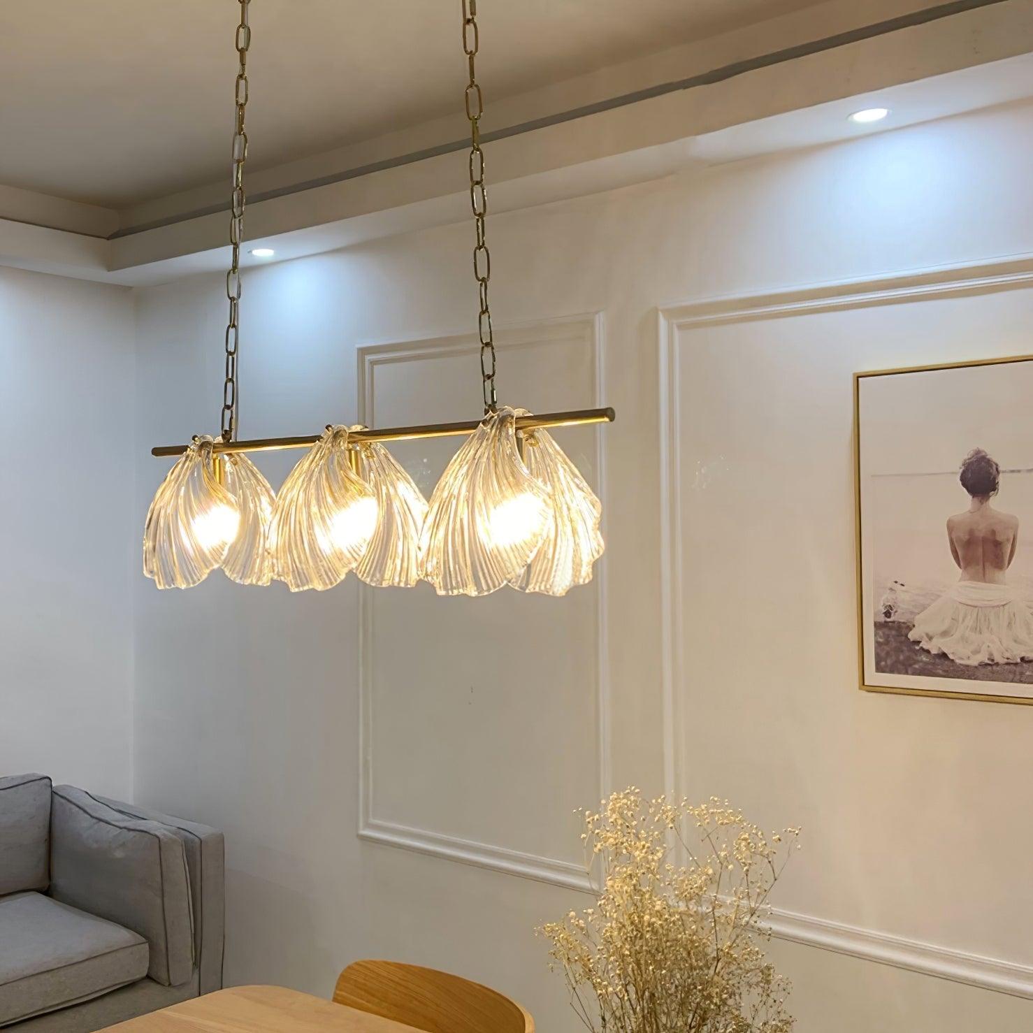 這款吊燈是一款獨特的個性中心裝飾品,即使在未點亮時也具有影響力。每個都有掛鉤,模製玻璃殼掛在掛鉤上。吊燈總共由六個玻璃殼組成。當燈透過玻璃殼發光時,吊燈會產生柔和柔和的光線。