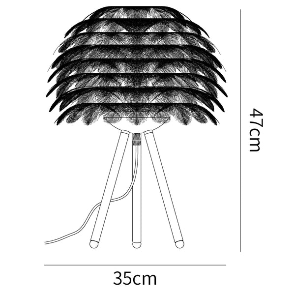 三腳架檯燈採用優質金屬材質,羽毛燈罩與燈具的暖色調完美結合,營造舒適的閱讀、工作、休息環境,不傷眼。