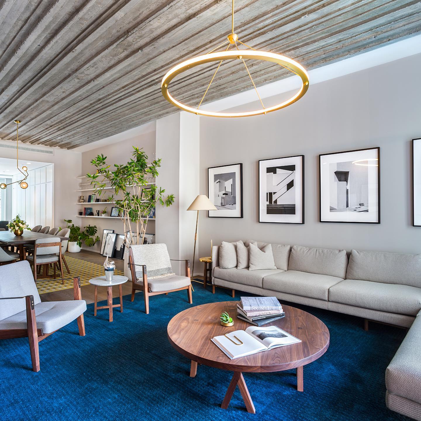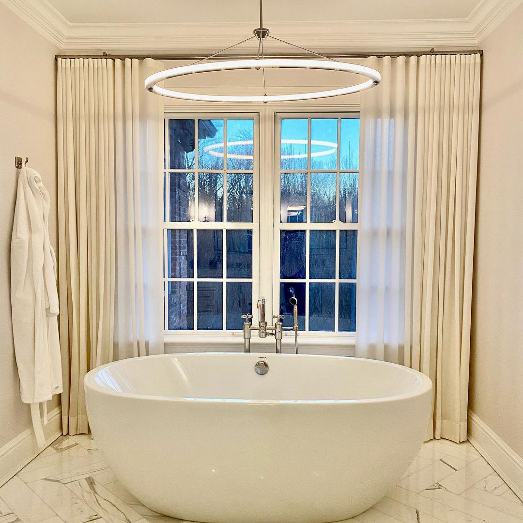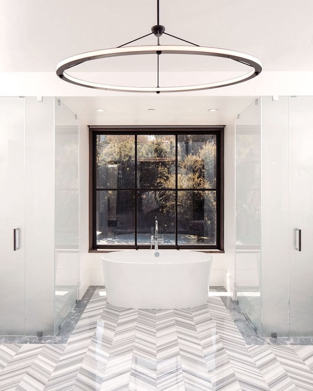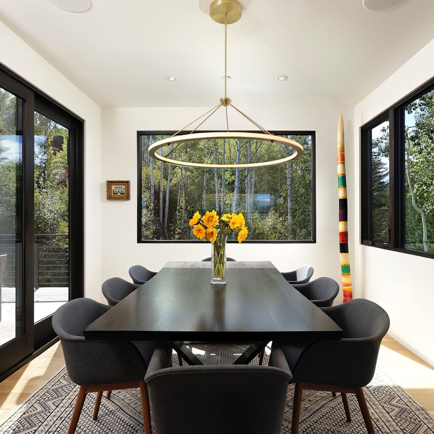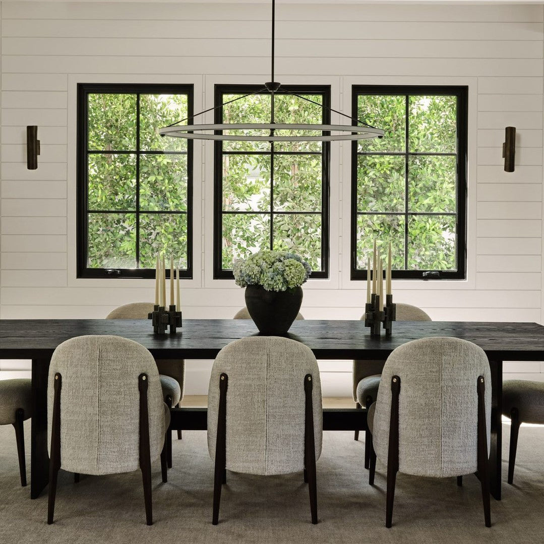 Halo 吊燈作為一種優雅的運動,採用節能 LED 技術。該系列以層疊環和光條的使用而著稱。