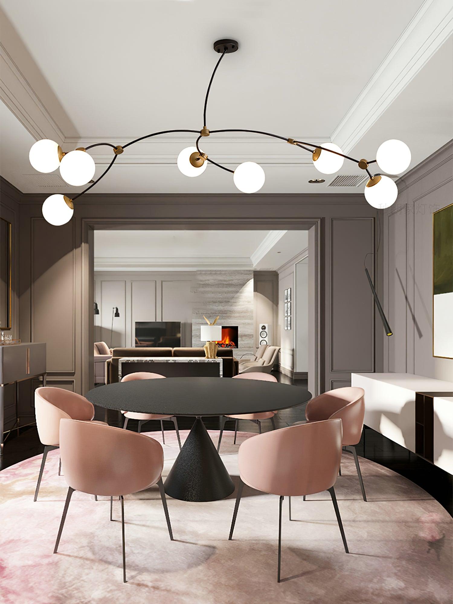 He Ivy Pendant 從倫敦市中心的綠色空間中汲取靈感,反映了新植物的自然特性,這些植物向著光線的各個方向有機生長,具有八種球形色調的雕塑框架,並以金屬細節為特色,打造別緻的整體外觀。提供白色或透明色調。