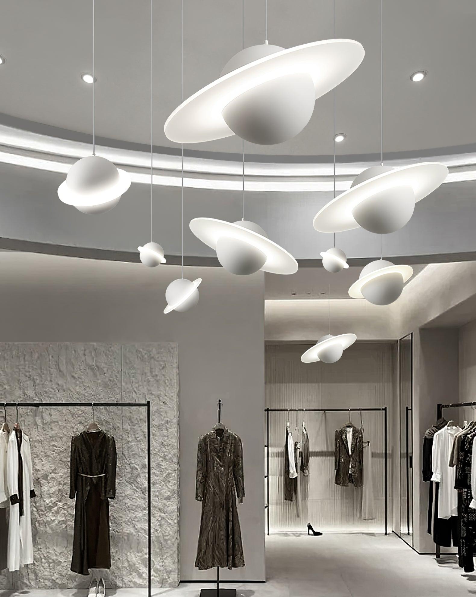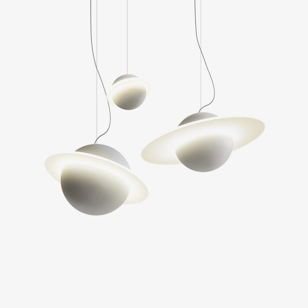 Jupiter Ring 在透明 PVC 環的中央有一個光滑的鐵色燈罩。這件作品充滿活力和大膽,一定會為您的現代空間增添恰到好處的現代氣息和態度。